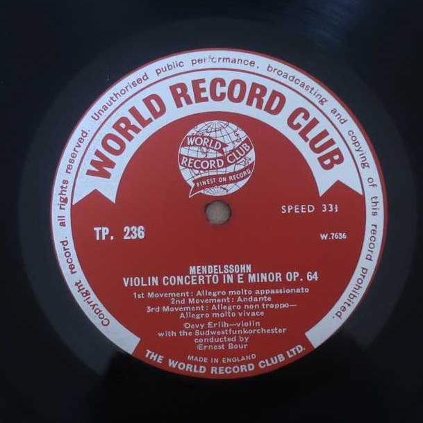 Vn:ドゥヴィ・エルリ―、指揮:エルンスト・ブール、バーデンバーデン南西ドイツ放送SO (Vn: D.Erlih, Cond: E.Bour, Baden-Baden Southwest German RSO)