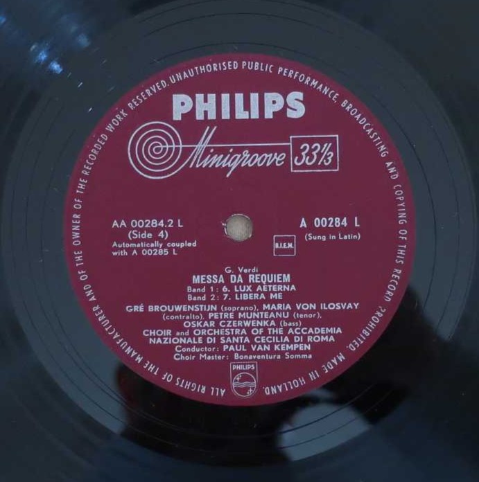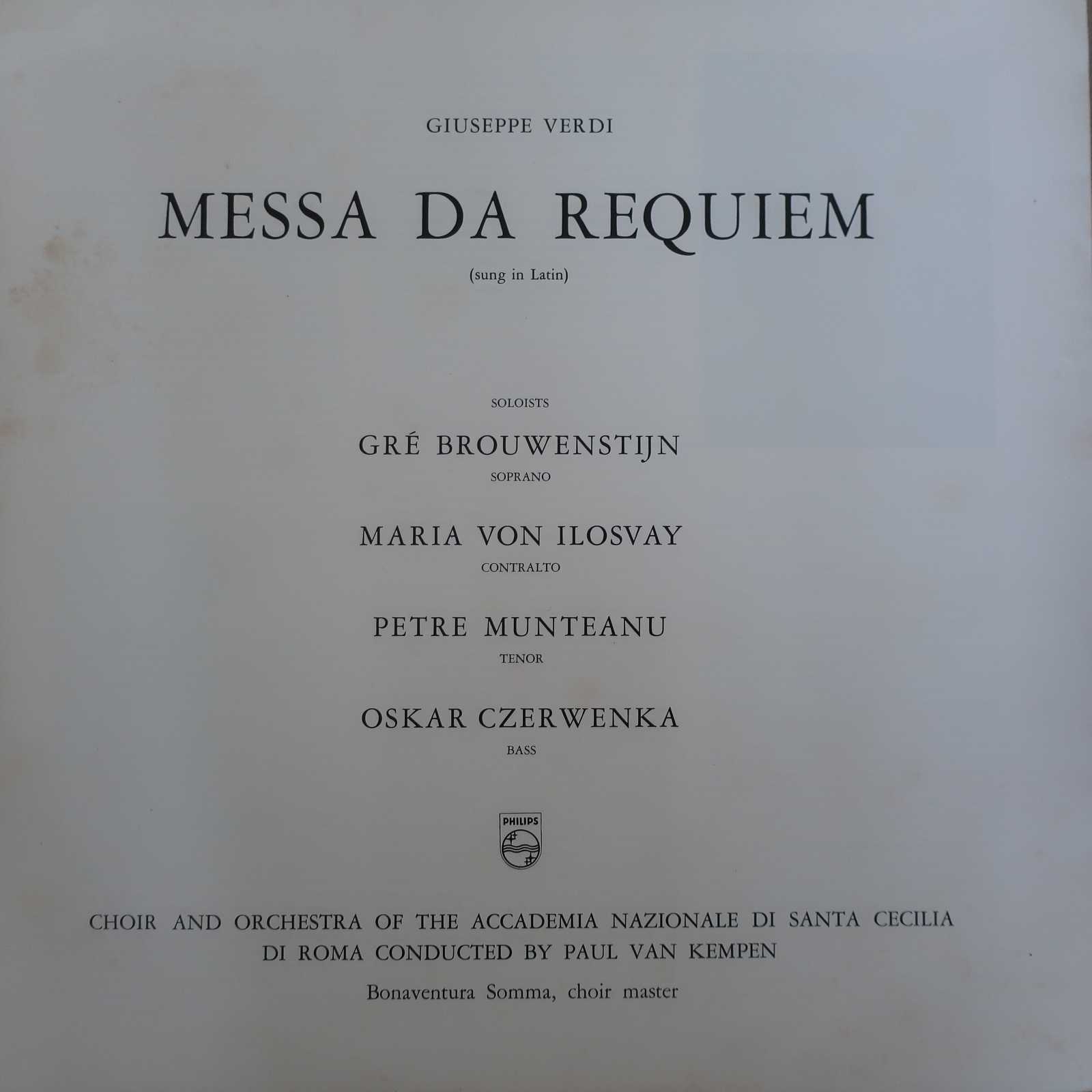 指揮:パウル・ファン・ケンペン、聖チェチーリア音楽院O、Cho、S:グレ・ブラウウェンステイン、A:マリア・フォン・イロスヴァイ、T:ペトル・ムンテアヌー、Br:オスカー・チェルヴェンカ (Cond: P.v.Kempen, Santa Cecilia Accademia O, Cho, S: G.Brouwenstein, A: M.v.Ilosvay, T: P.Munteanu, Br: O.Czerwenka)