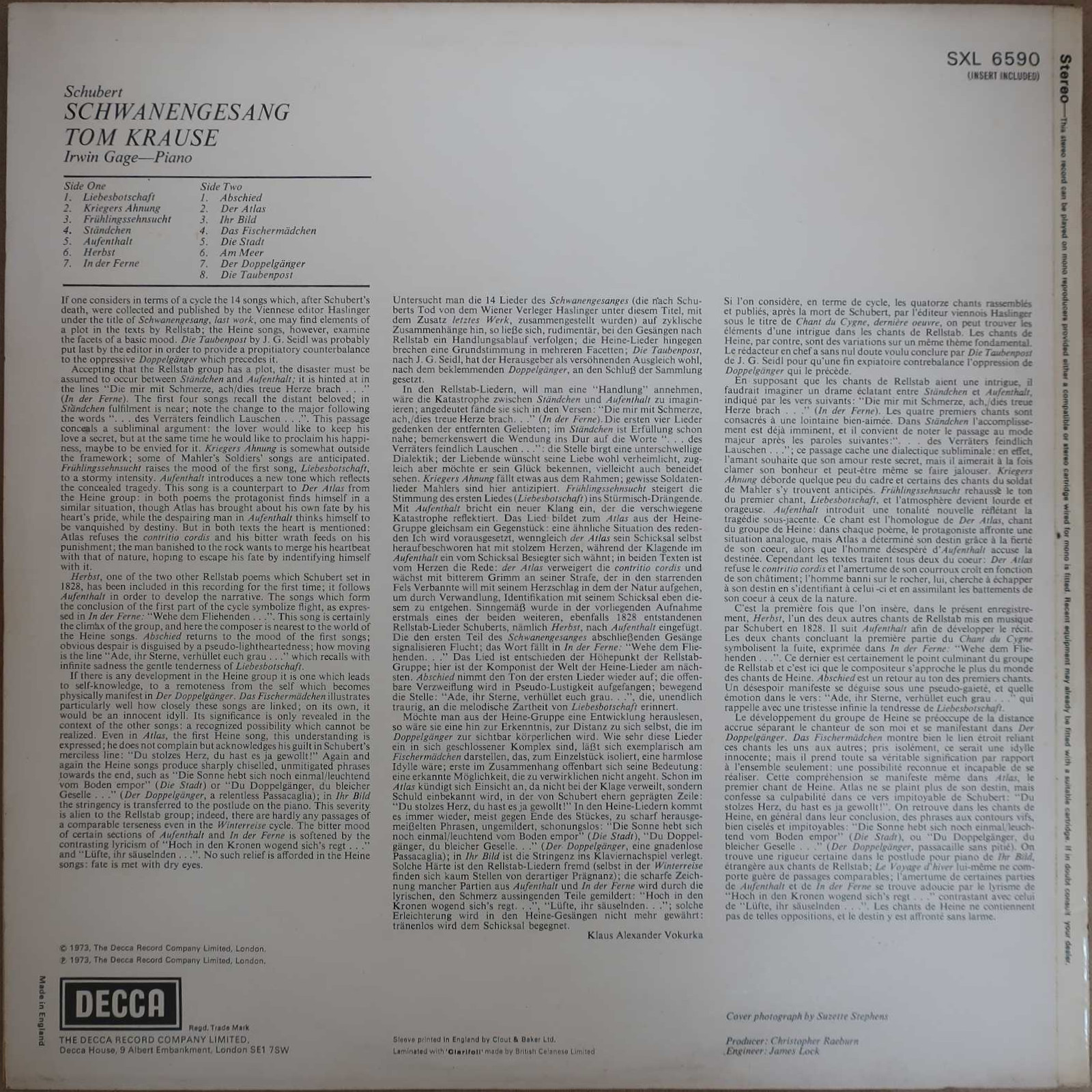 クラウセの声は実に堂々としていて力強い。表情はのめり込みすぎず客観性を持ちながらも音楽として鋭く切り込んでいく表現の幅が凄い。安定感もありはっきりした声で素晴らしい演奏だと思う。ゲイジのピアノも急に表情が濃くなったり、端的になったりとうまい伴奏を聴かせてくれる。