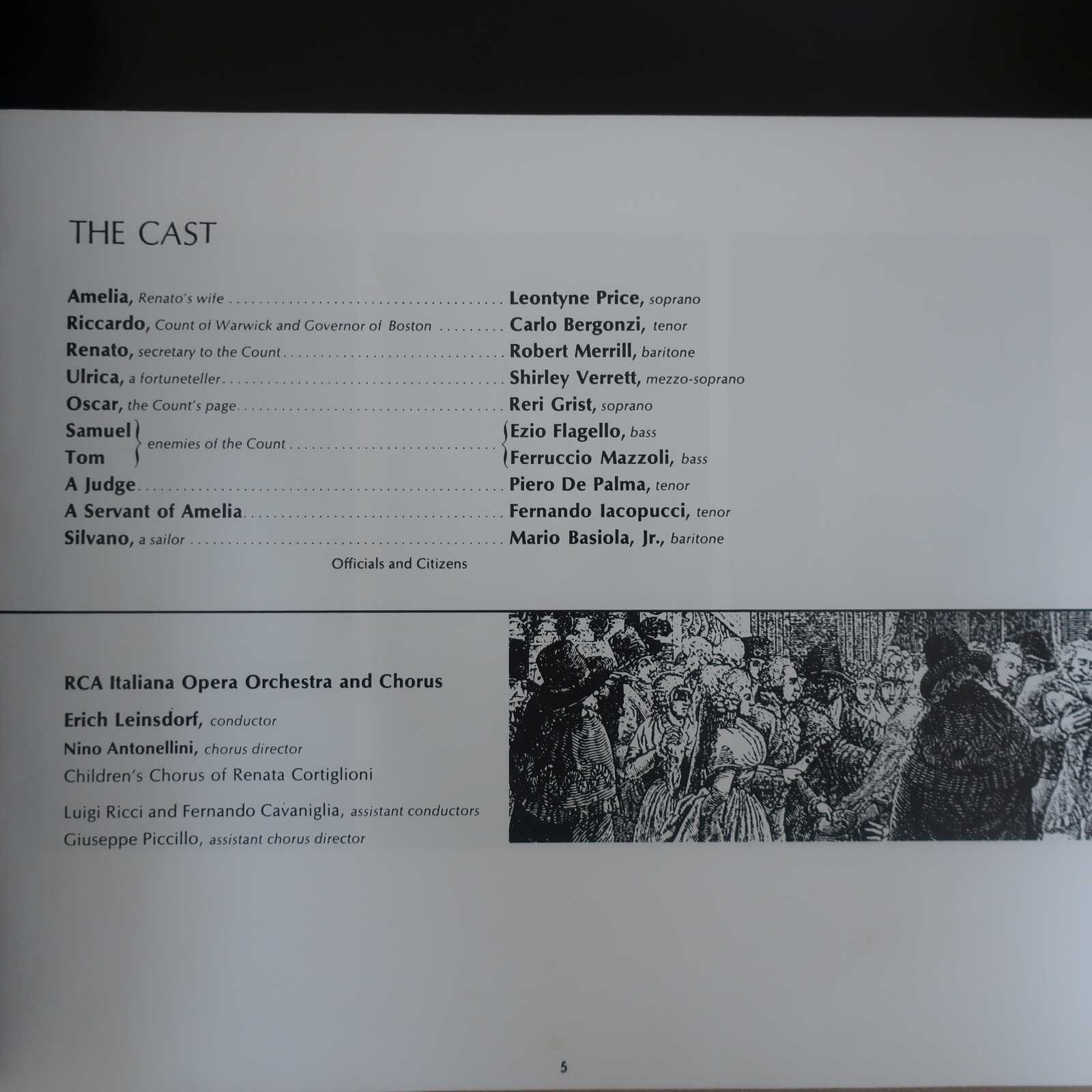 指揮:エーリヒ・ラインスドルフ、RCAイタリア・オペラO、Cho、S:レオンティン・プライス、T:カルロ・ベルゴンツィ、Br:ロバート・メリル、Ms:シェリー・ヴァーレット、S:レリ・グリスト (Cond: E.Leinsdorf, RCA Italia Opera O, Cho, S: L.Price, T: C.Bergonzi, Br: R.Merrill, Ms: S.Verrett, S: R.Grist)