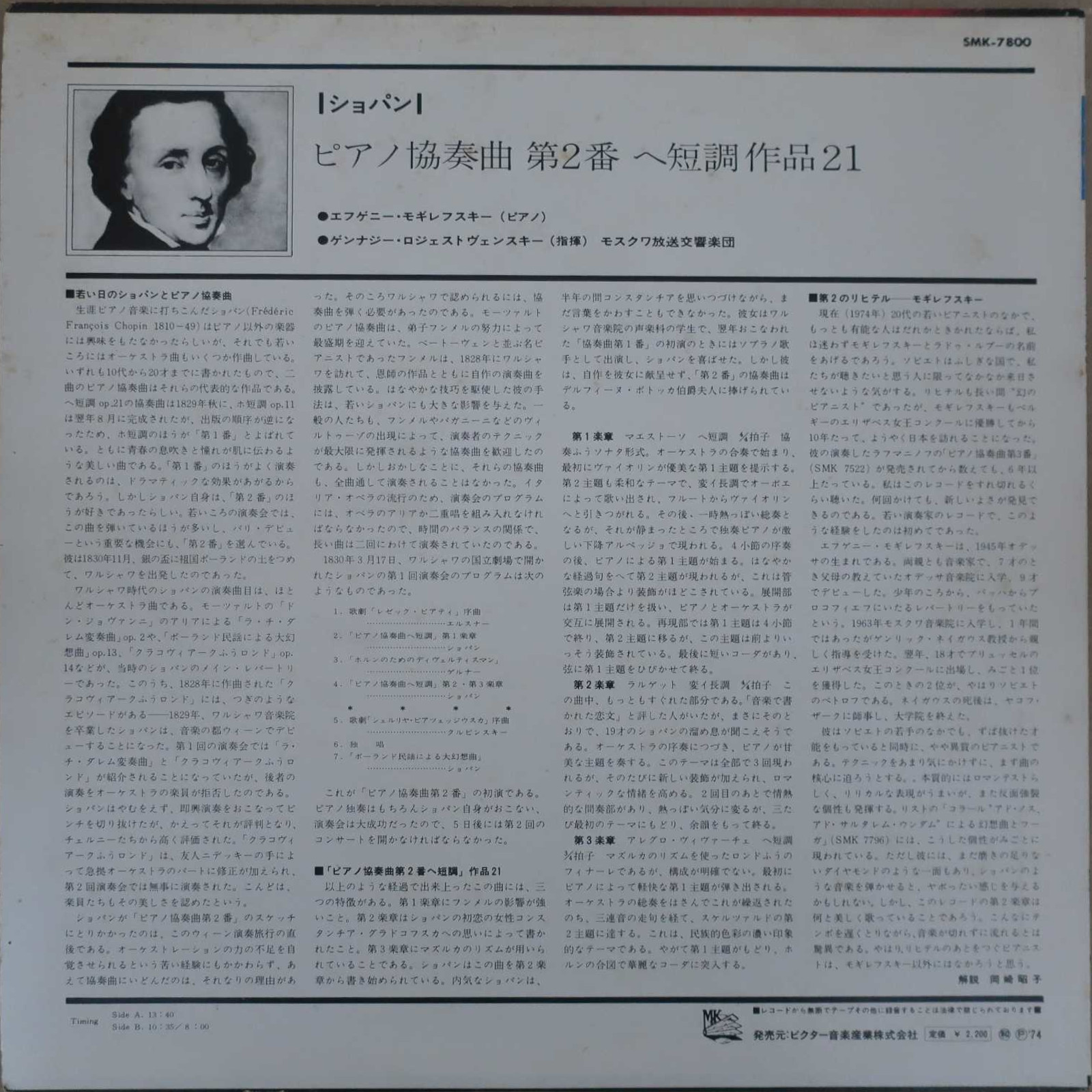 P:エフゲニー・モギレフスキー、指揮:ゲンナジー・ロジェストヴェンスキー、モスクワ放送SO (P: E.Mogilevsky, Cond: G.Rozhdestvensky, Moscow Radio SO)