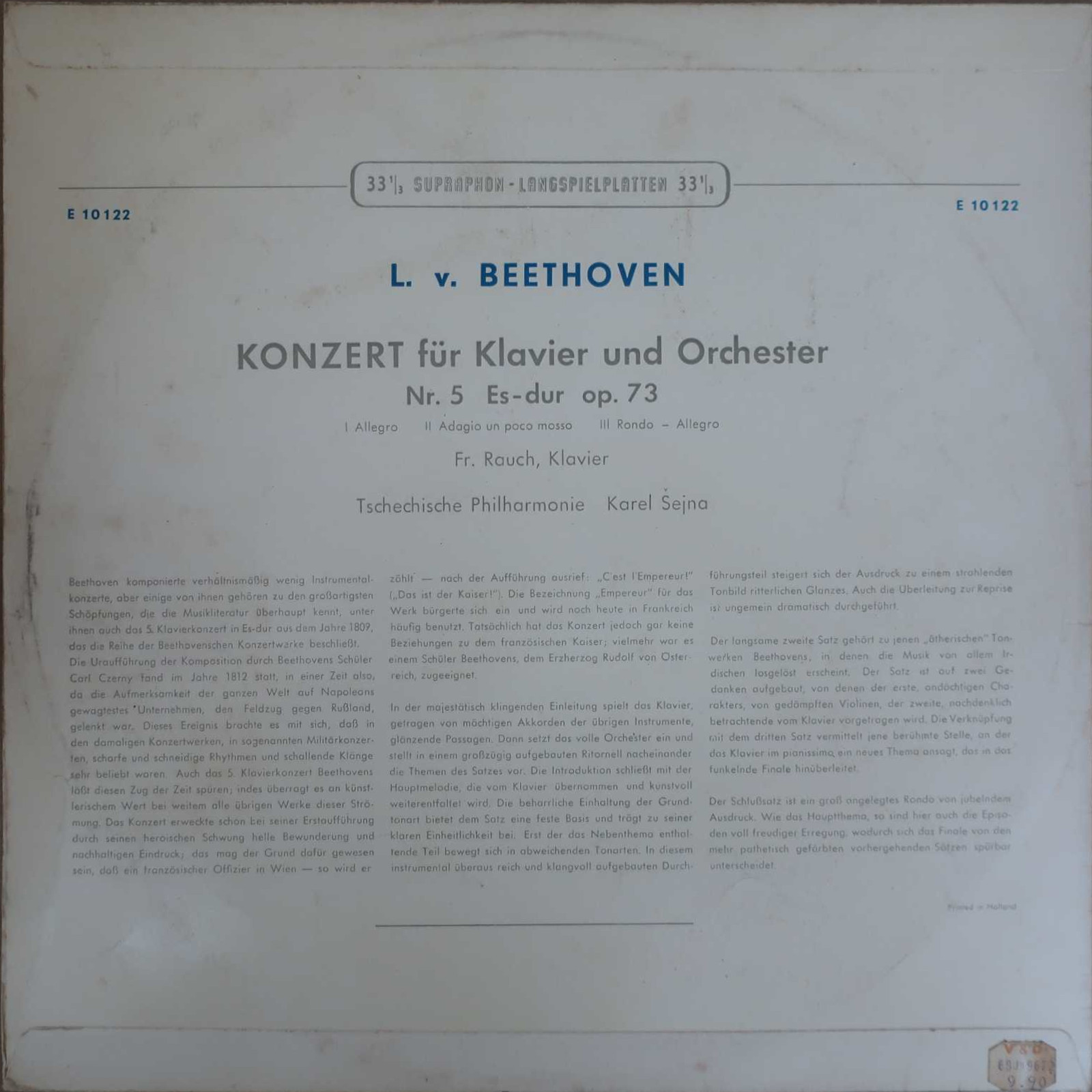 出だしのラウフのソロが何ともチャーミング。ソロだけになった後の下降音型の軽いタッチは何だろうか。シェイナも終始軽い。音が古いせいもあるとは思うが、それだけではないと思う。ベートーヴェンらしくない演奏。むしろモーツァルトを演奏するような軽やかさ。皇帝という題名がかすんでしまう珍演だが個人的には楽しい演奏である。