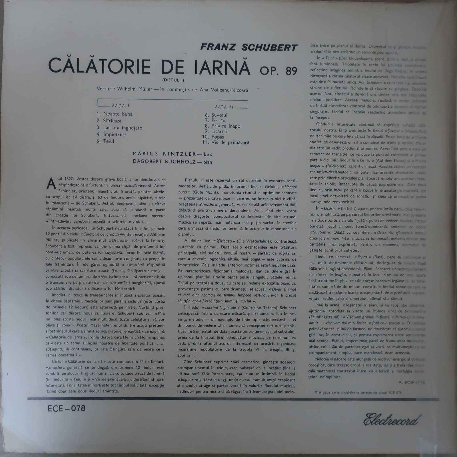 おやすみでは、かなり遅めのテンポでじっくりじっくり感情を込めて歌っているのが印象的。言語の違いは私にはそれほど違和感なく聴ける。その後の曲も概して遅めで基本的に声を張り上げることなく深い声で内省的に表現していく。難点はブッフホルツのピアノが伴奏の域をでないことだろうか。この曲の場合、ピアノがただの伴奏ではなく両者ともに対等なレベルでの演奏が期待されるが、その点ではブッフホルツのピアノは控えめでまじめすぎかも。ただ、このリンツラーのテンポ感が独特でつけるのも大変そうで何とか付けた、という所もあるだろうと思う。いずれにしても素晴らしい歌唱を聴かせてくれているリンツラーはジョルジェスク、ハイティンク、ラインスドルフ(ライヴ)などの第九にも起用されているが、録音自体は少ない。安定した声の持ち主でもっと録音を残してほしかった歌手ではないだろうか。
