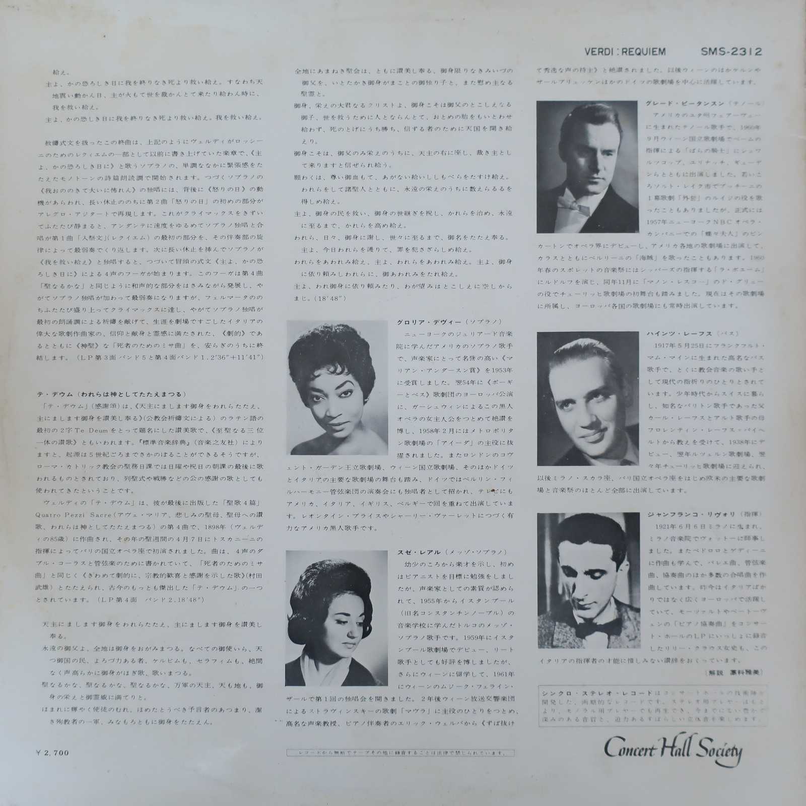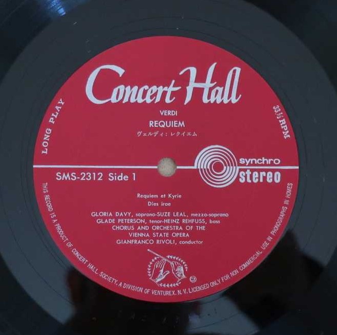 指揮:ジャンフランコ・リヴォリ、ウィーン国立歌劇場O、Cho、S:グロリア・デイヴィ、A:スザンネ・レアル、T:グレイド・ピーターソン、Br:ハインツ・レーフス (Cond: J.Rivoli, Vienna State Opera O, Cho, S: G.Davy, A: S.Leal, T: G.Peterson, Br: H.Rehfus)