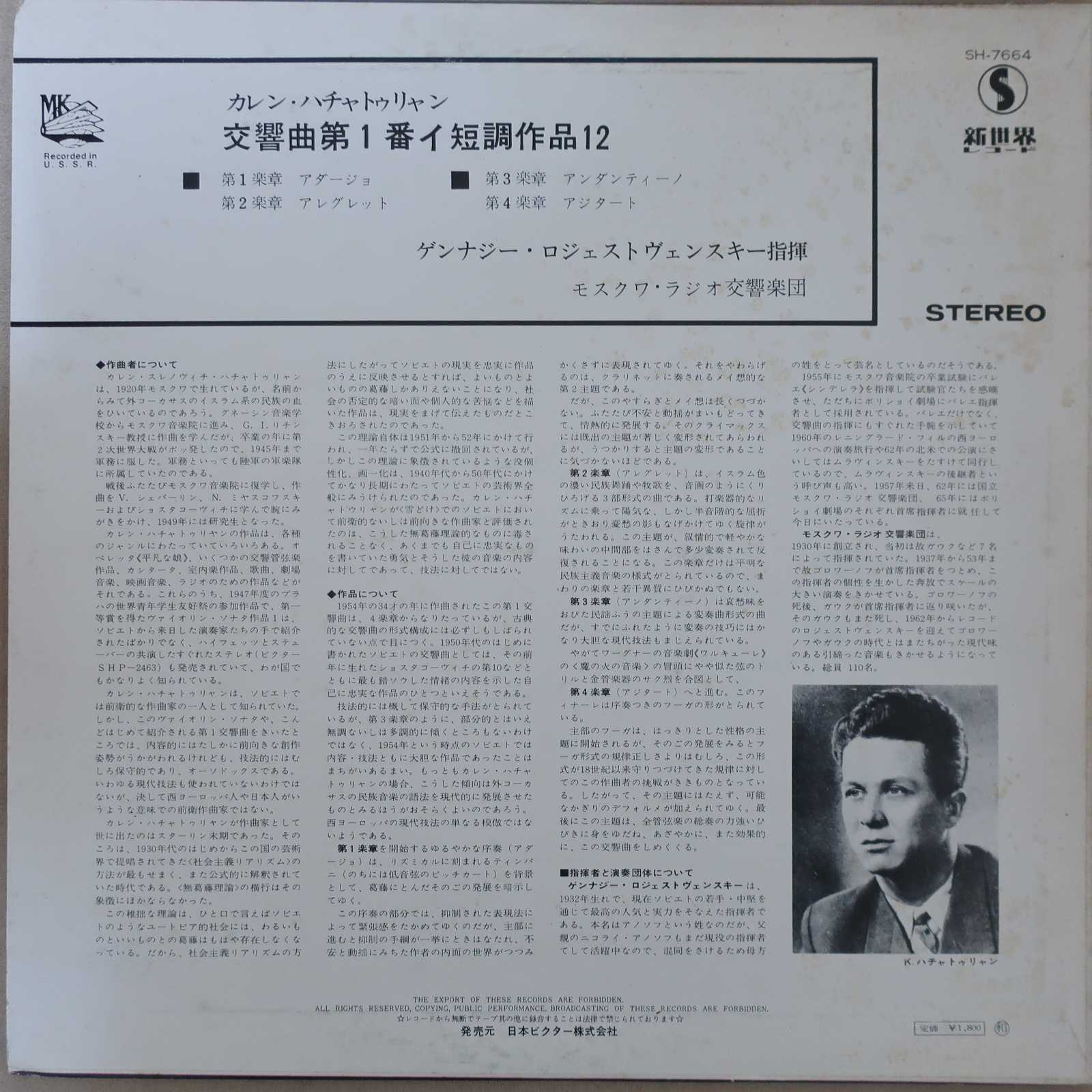 ロジェストヴェンスキーの壮大なスケール感でカレン・ハチャトゥリアンの交響曲を聴けること貴重である。曲としてもめったに演奏されることがない上に、ロジェストヴェンスキーの才能あふれる極上の演奏となっている。叔父アラムに通じる楽しい曲でもっと知られても良い曲だと思う。