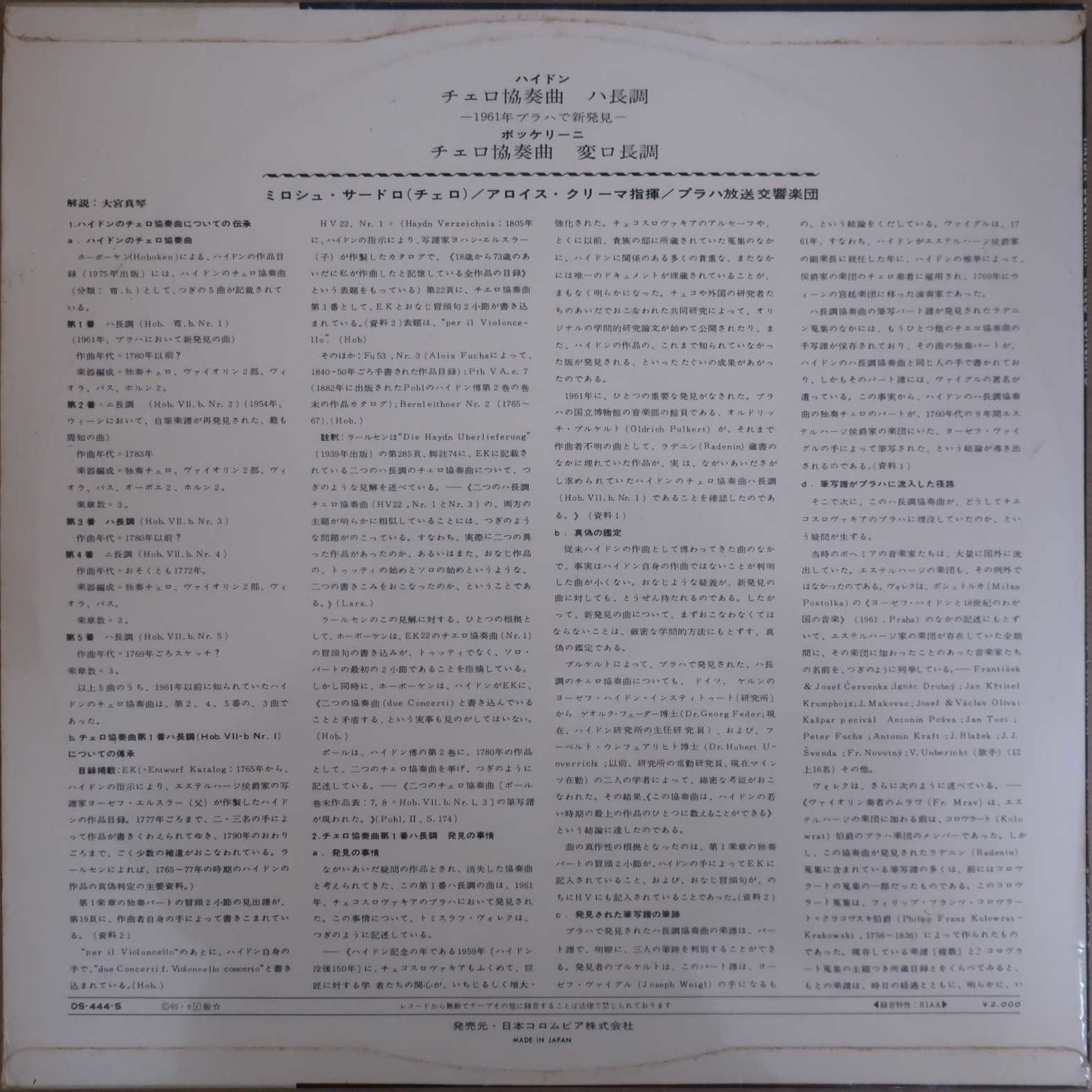 Vc:ミロシュ・サードロ、指揮:アロイス・クリマ、プラハ放送SO (Vc: M.Sadlo, Cond: A.Klima, Prague Radio SO)