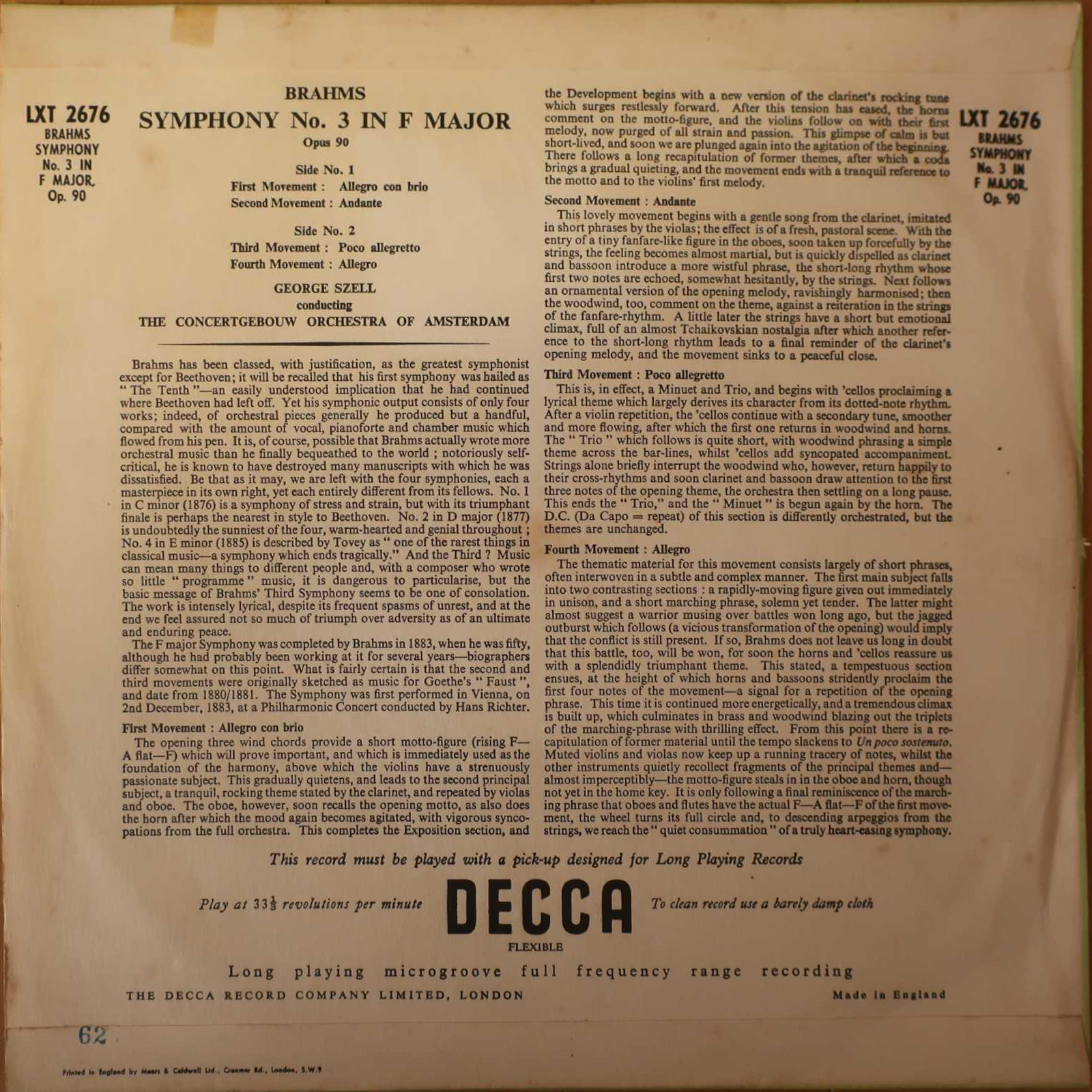 セルはアムステルダム・コンセルトヘボウと比較的多くの共演をしてきていたが、録音もライヴ録音を含めるとそれなりにあることから両者は良好関係にあったのだろうと思う。このブラームス3番でもしっかり統制が聴いた演奏となっているあたりに相性の良さも垣間見ることができる。テンポは比較的ゆったりしていて細部にもこだわりを見せつつ丁寧なつくりとなっている。惜しむらくは録音が少々詰まり気味なところであろうか。それでもクリーヴランドとは違ったオーケストラの反応や音色、バランスなどが味わえるのは貴重。