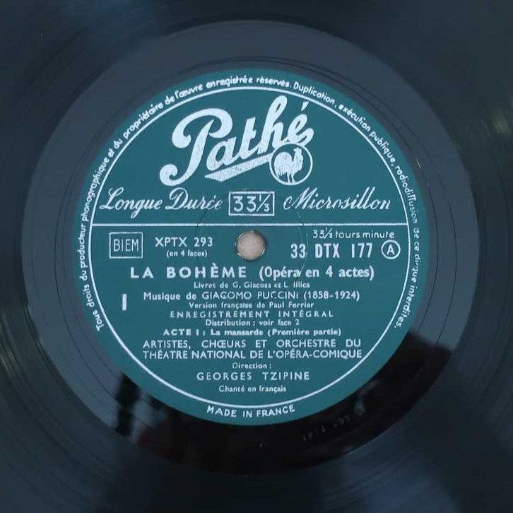 指揮:ジョルジュ・ツィピーヌ、パリ・オペラ・コミーク座O、Cho、S:マルタ・アンジェリーチ、T:ロジェ・ガルデ、Br:ミシェル・ルー、A:クリスティーネ・カステリ (Cond: G.Tzipine, Paris Opera Comique Theatre O, Cho, S: M.Angelici, T: R.Gardez, Br: M.Roux, A: C.Castelli)