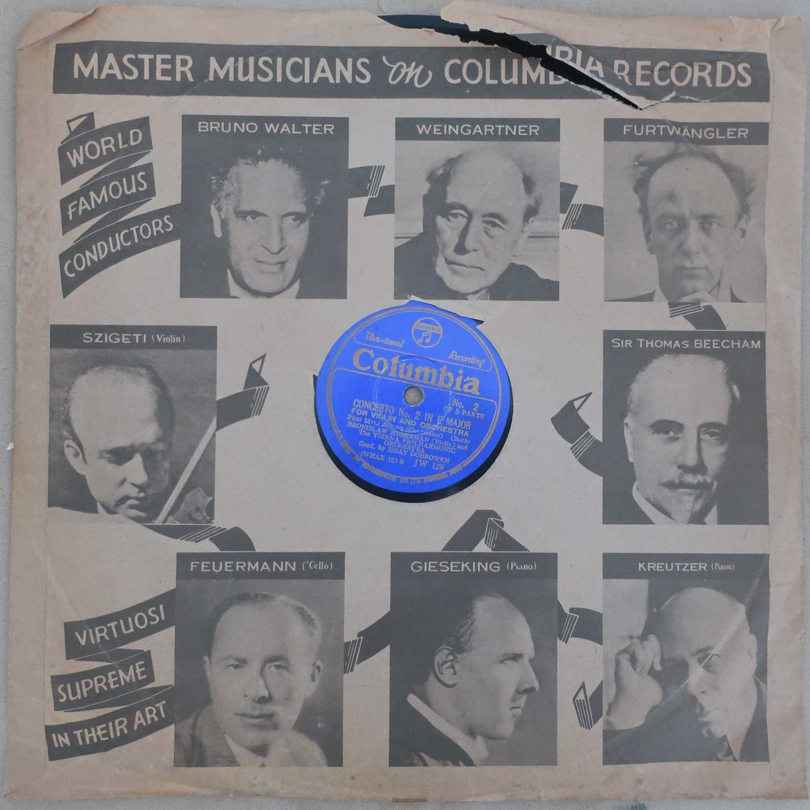Vn:ブロニスラフ・フーベルマン、指揮:イザイ・ドブローウェン、ウィーンPO