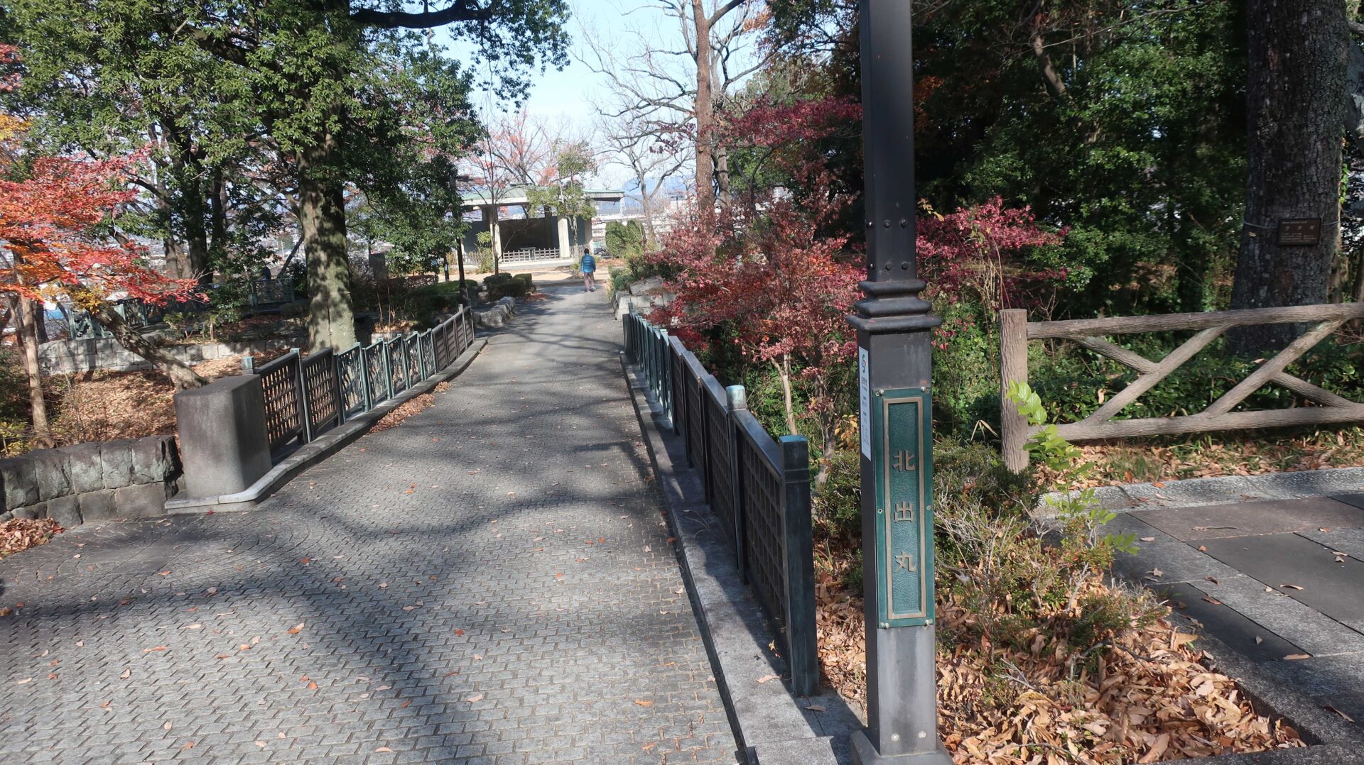 さらに奥に進んでいく。すると二つ目の堀の奥に北出丸が見えてくる