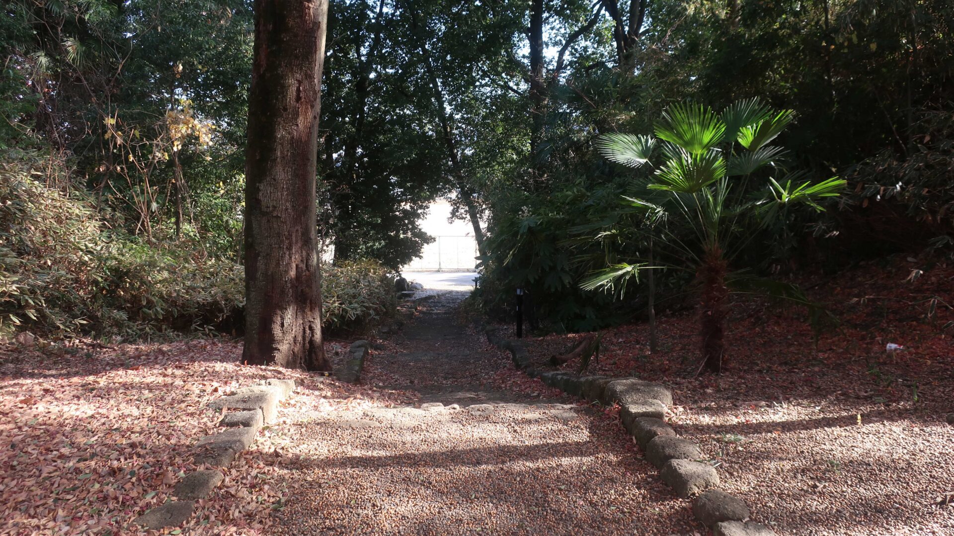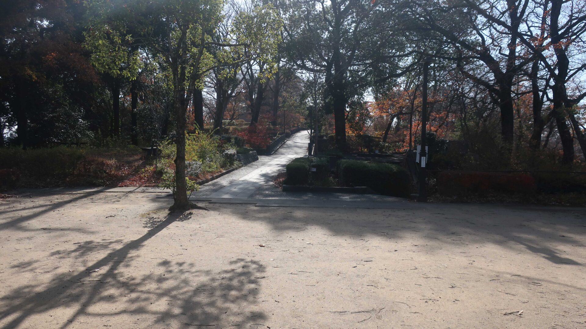 登ると公園。一見城らしくないがちょっと進むと一つ目の堀が見えてくる。