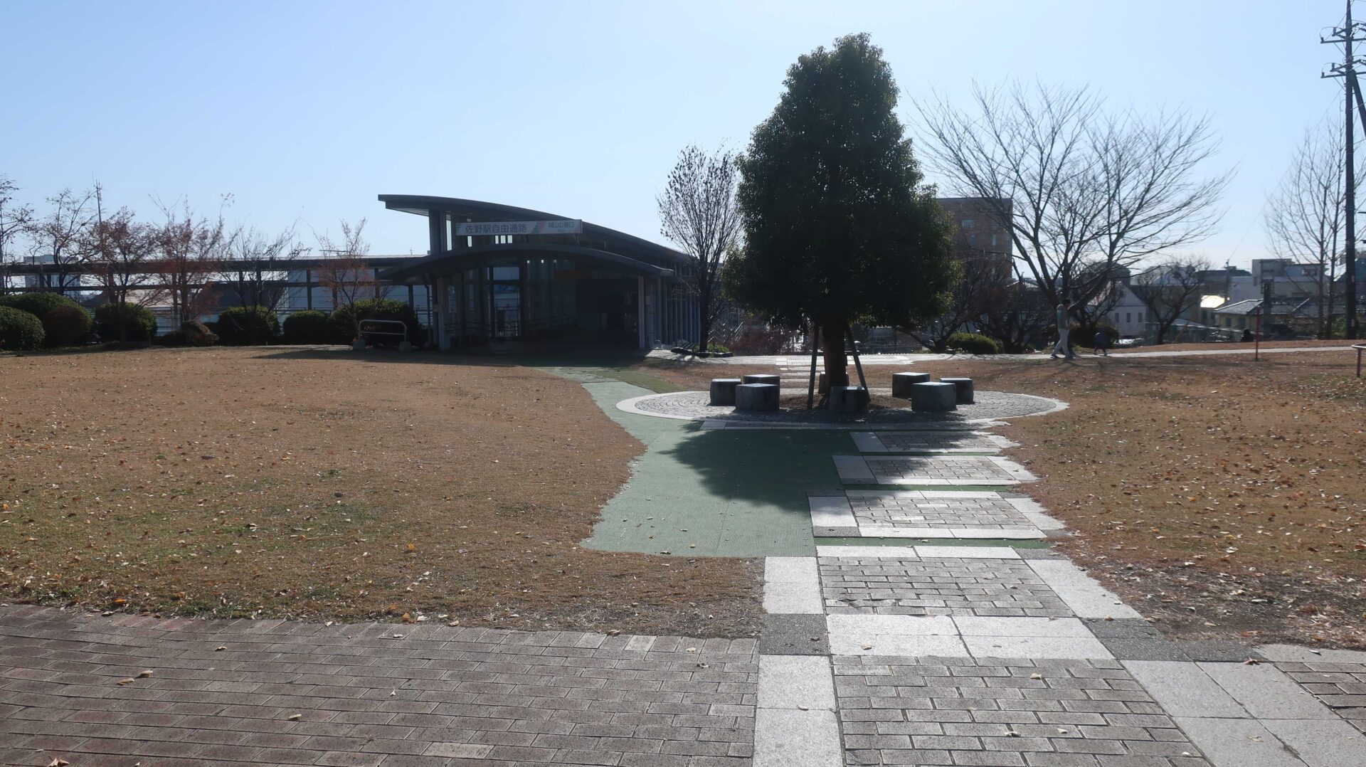 駅の広場に屋根付きベンチ。これも城関係のものだろうか?調査不足だが、いずれにしても佐野市民が気軽に散歩できる城、という具合になっている。敷地内に小さいながら展示施設もある。ただ御城印は売られていなかった。