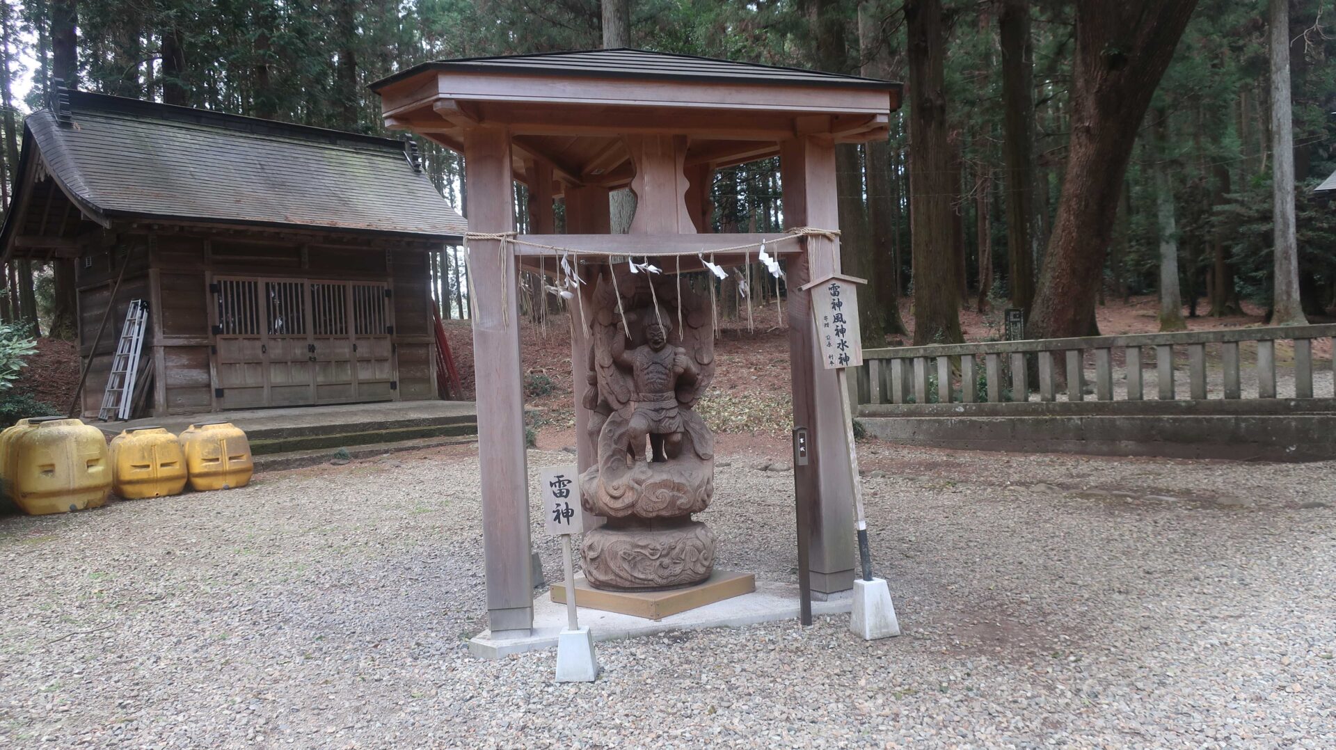 途中にある雷神。本殿と奥から見た風景