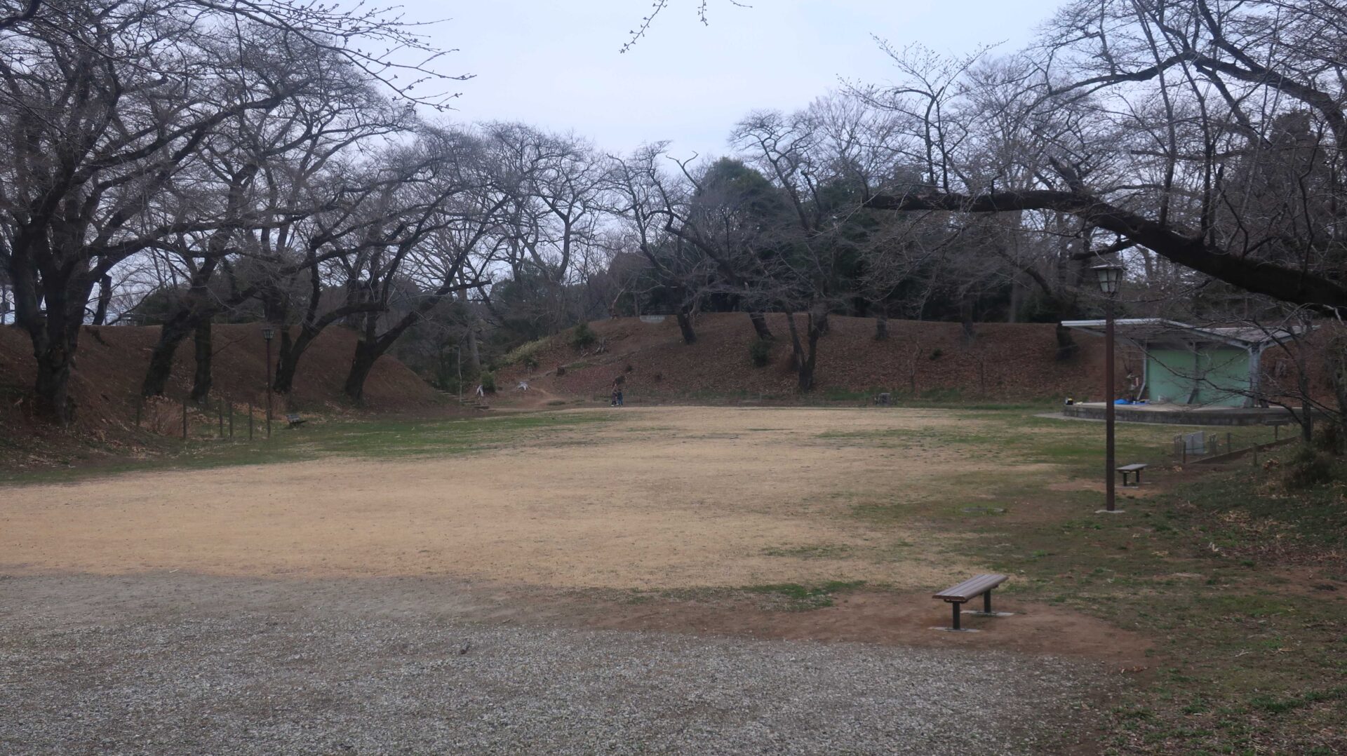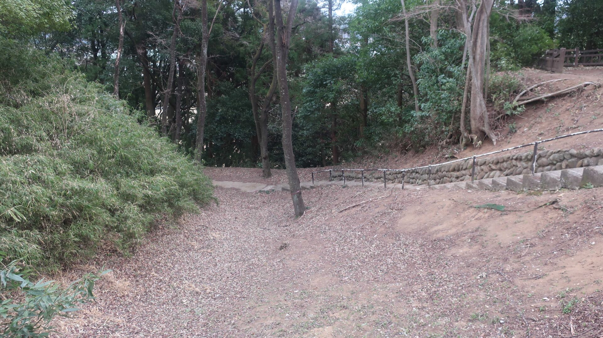 堀の底というより土塁の下というか崖というか。逆側には川なので堀ではないか・・・。進むと広場が見えてきて最初に上ったところに出る
