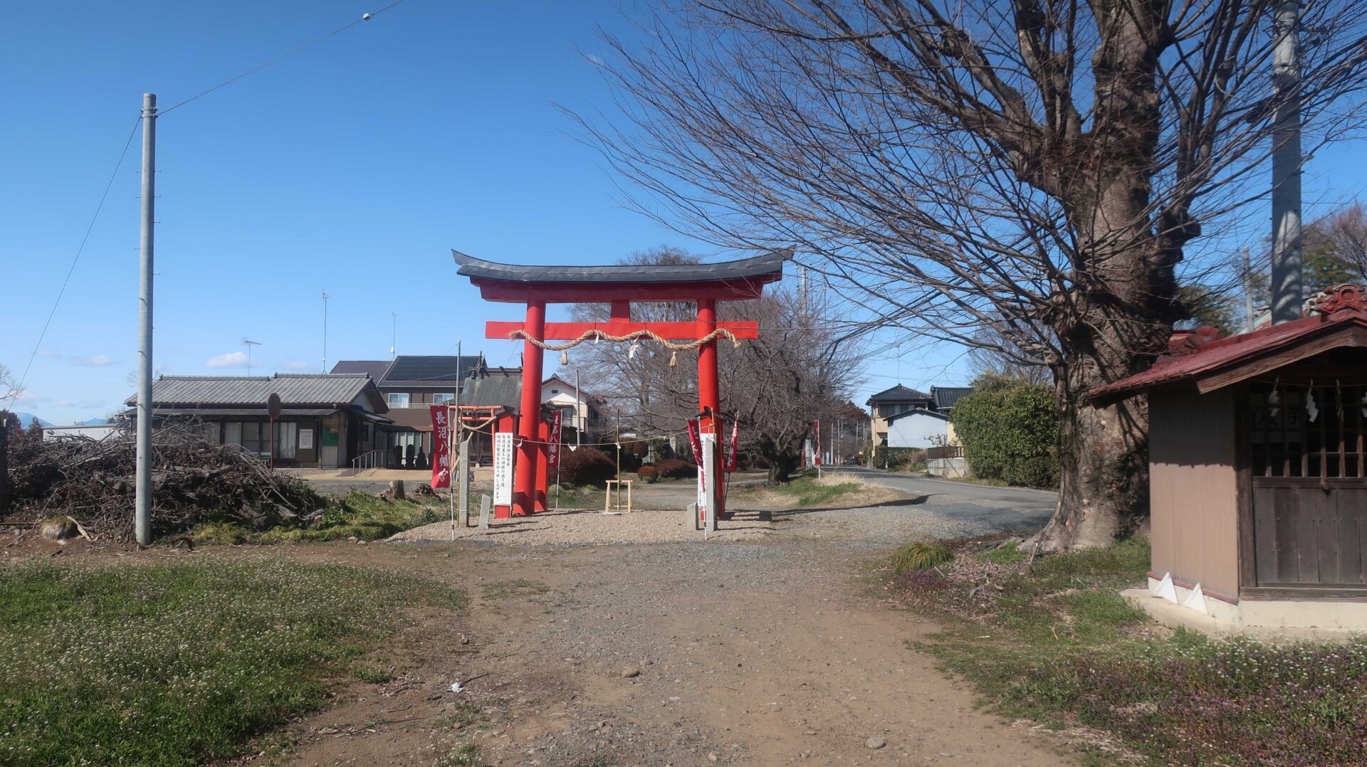 脇に神社もある