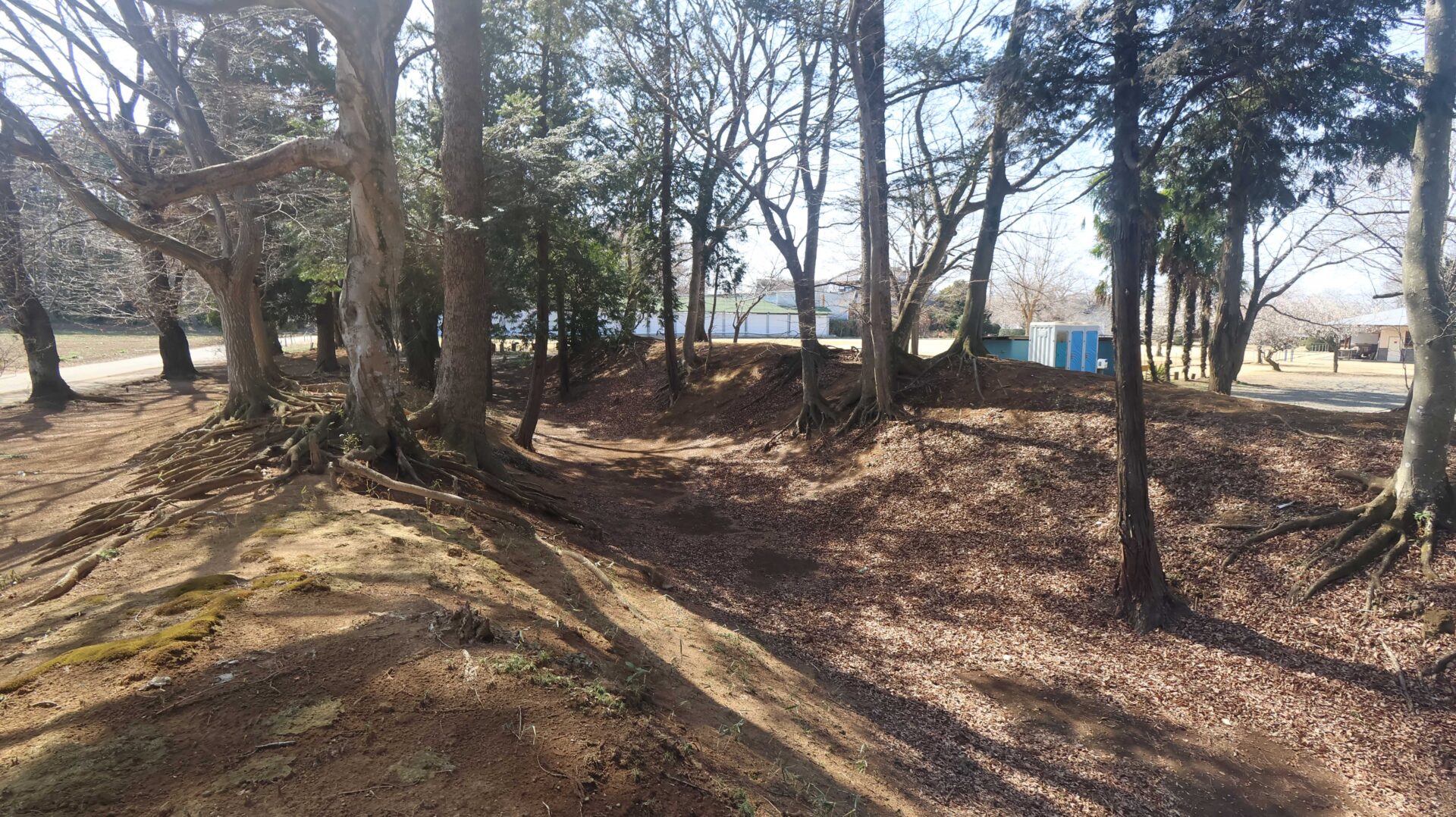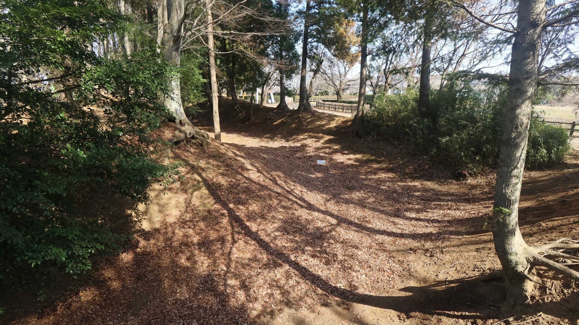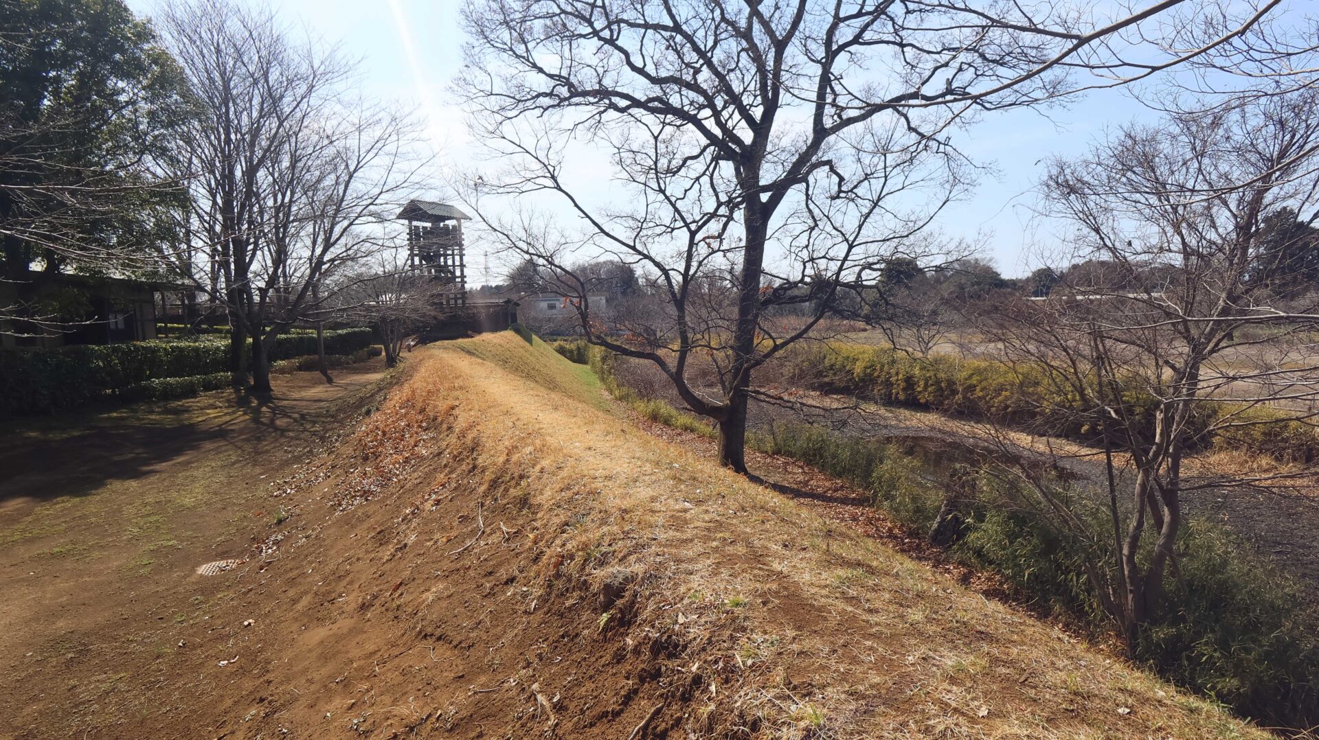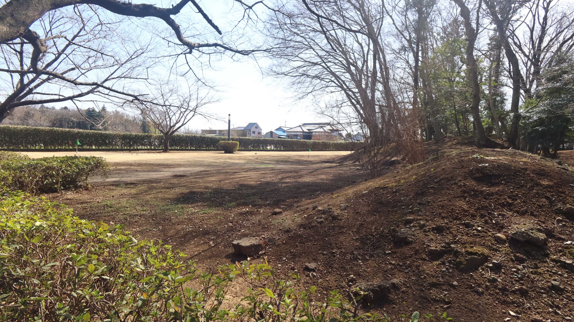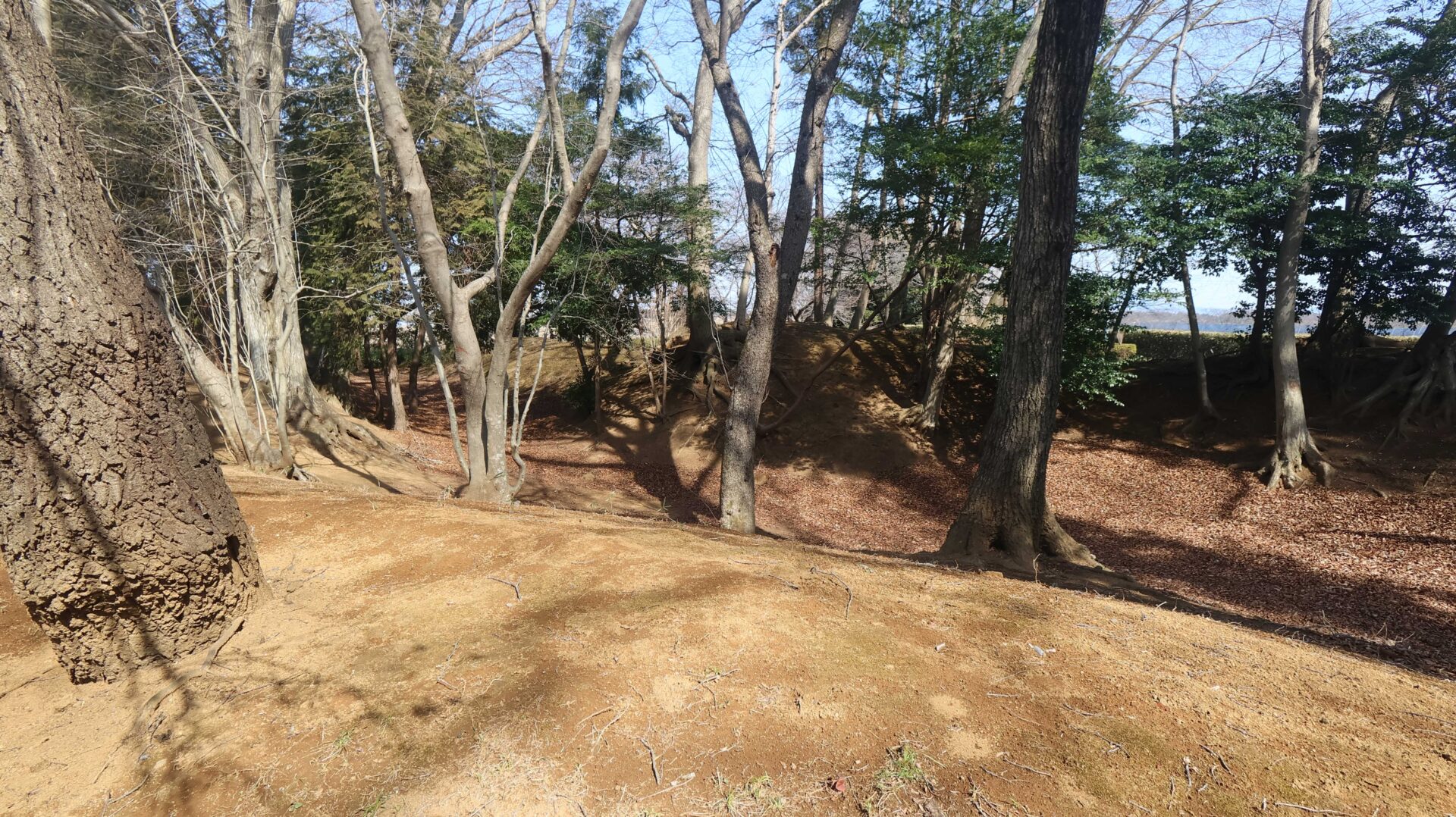 広い公園の縁をまわり、先ほどの鐘堀池付近の土塁に戻る