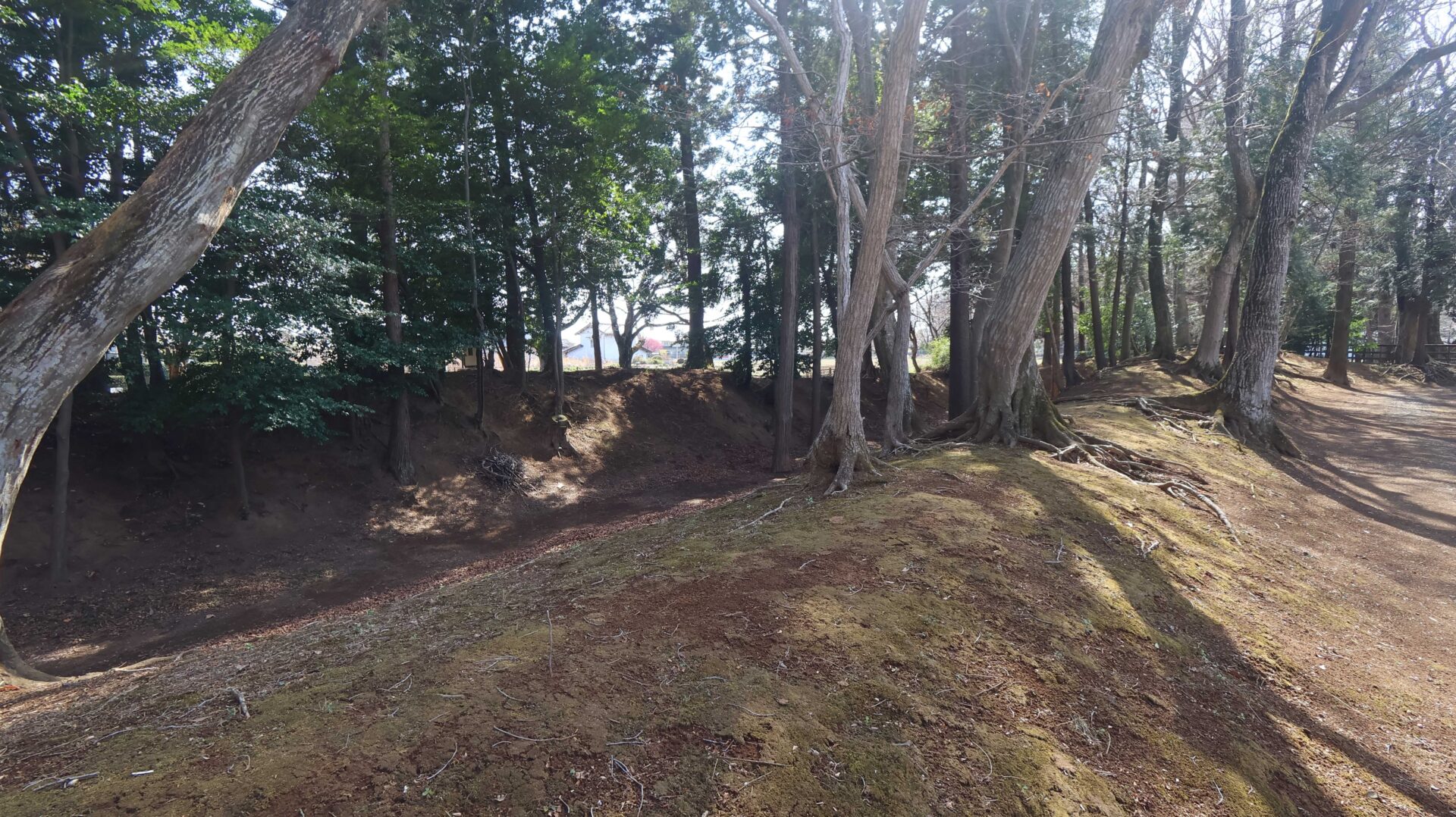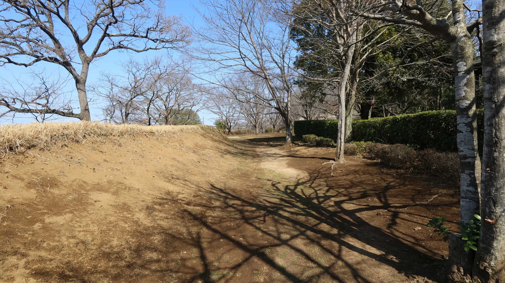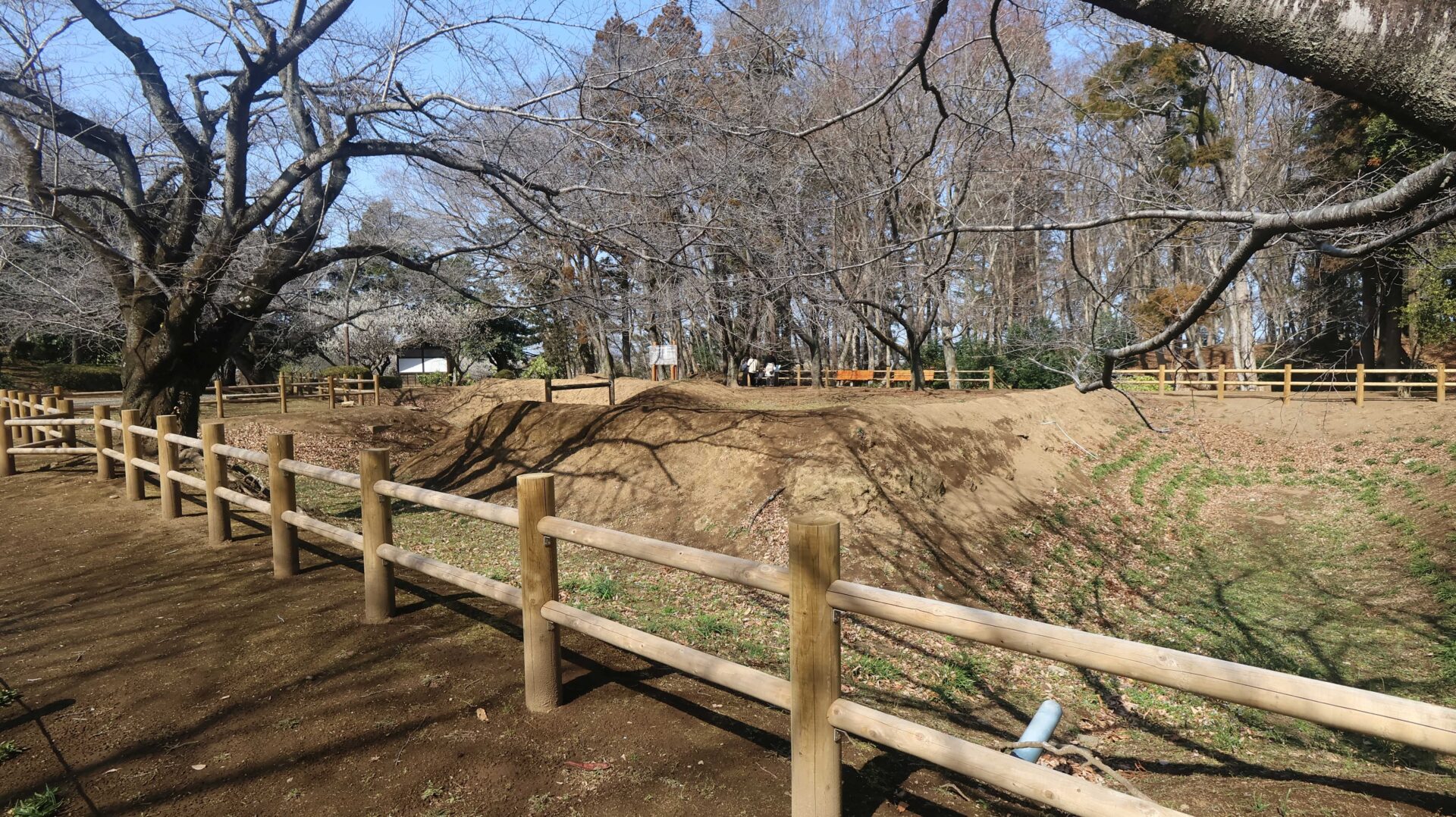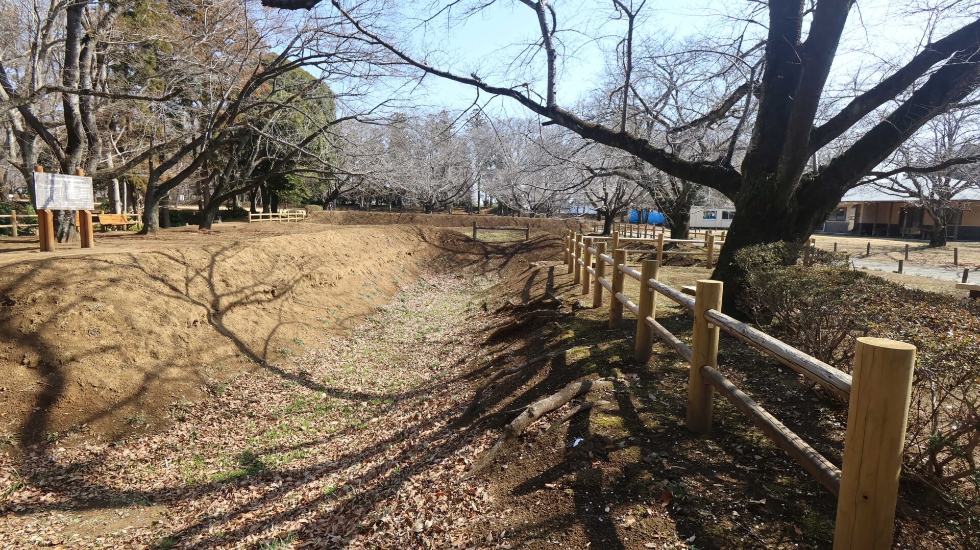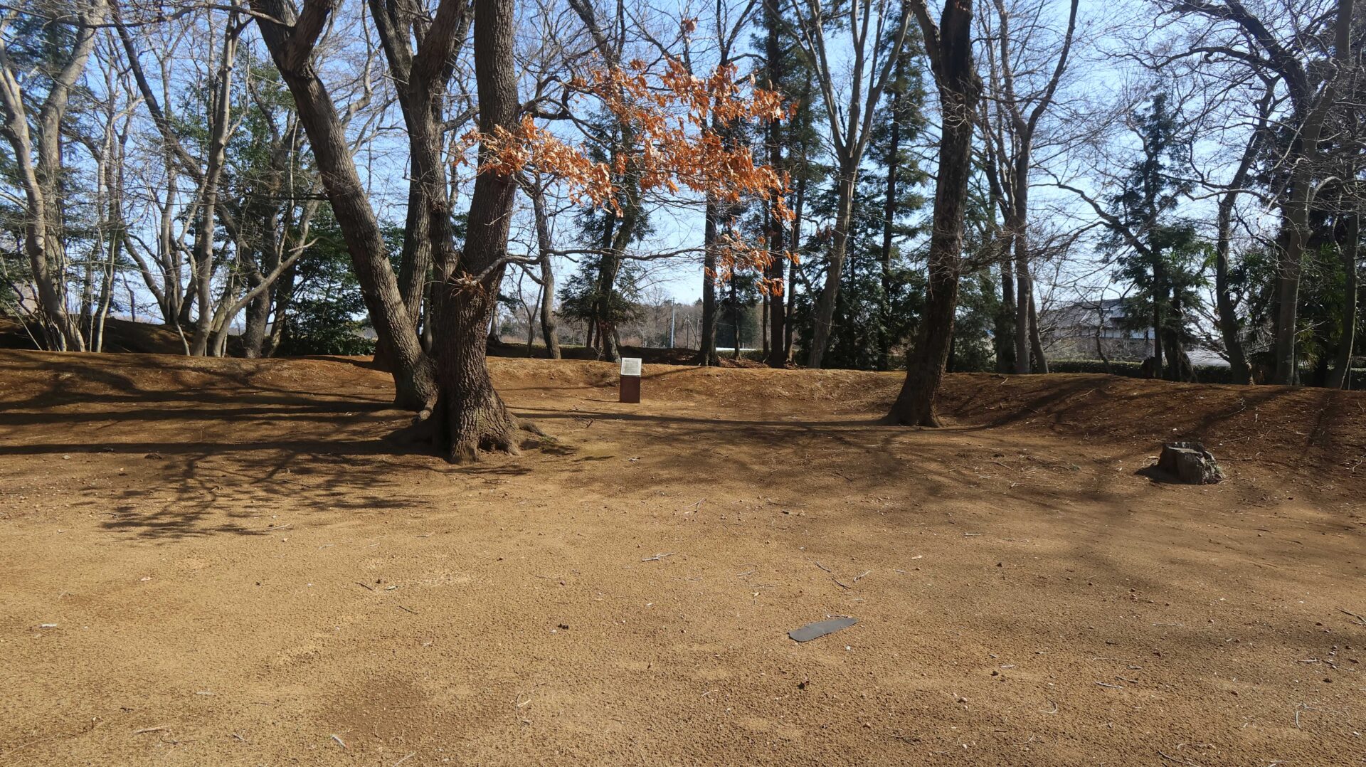 広い公園の縁をまわり、先ほどの鐘堀池付近の土塁に戻る
