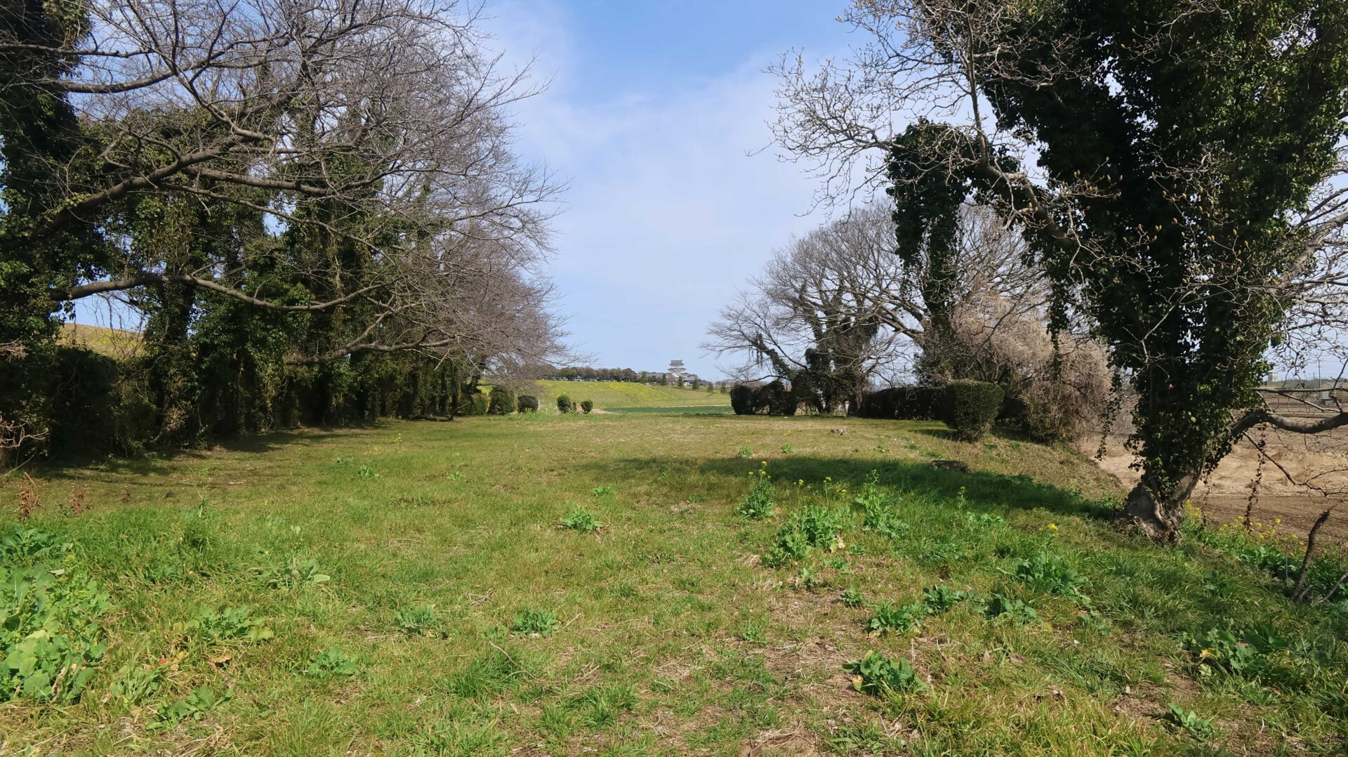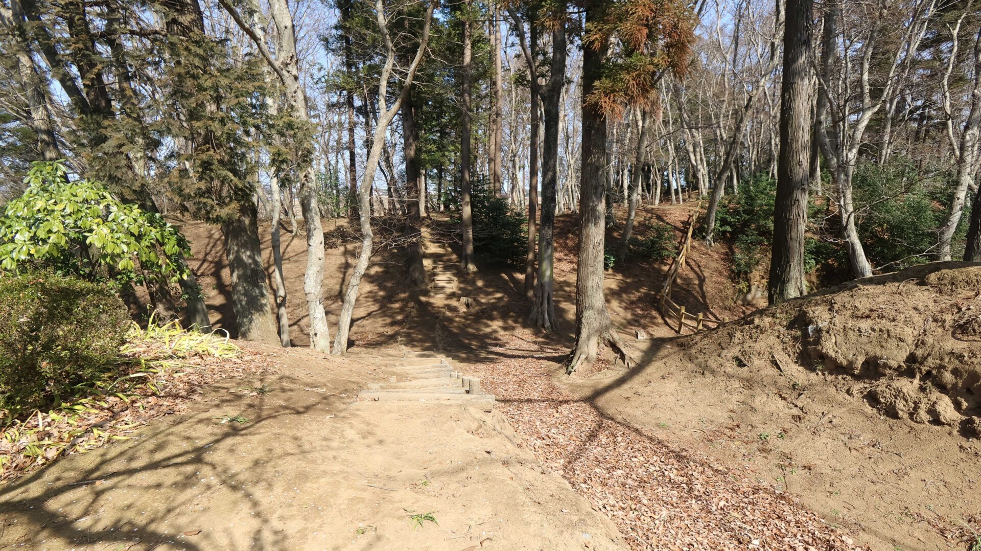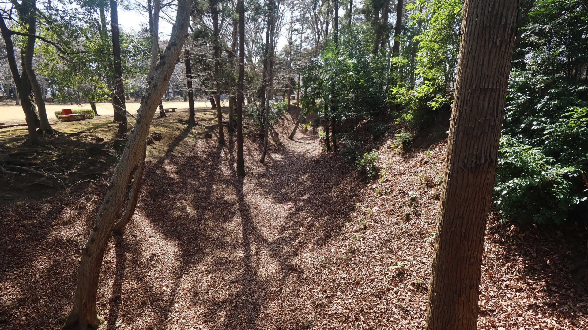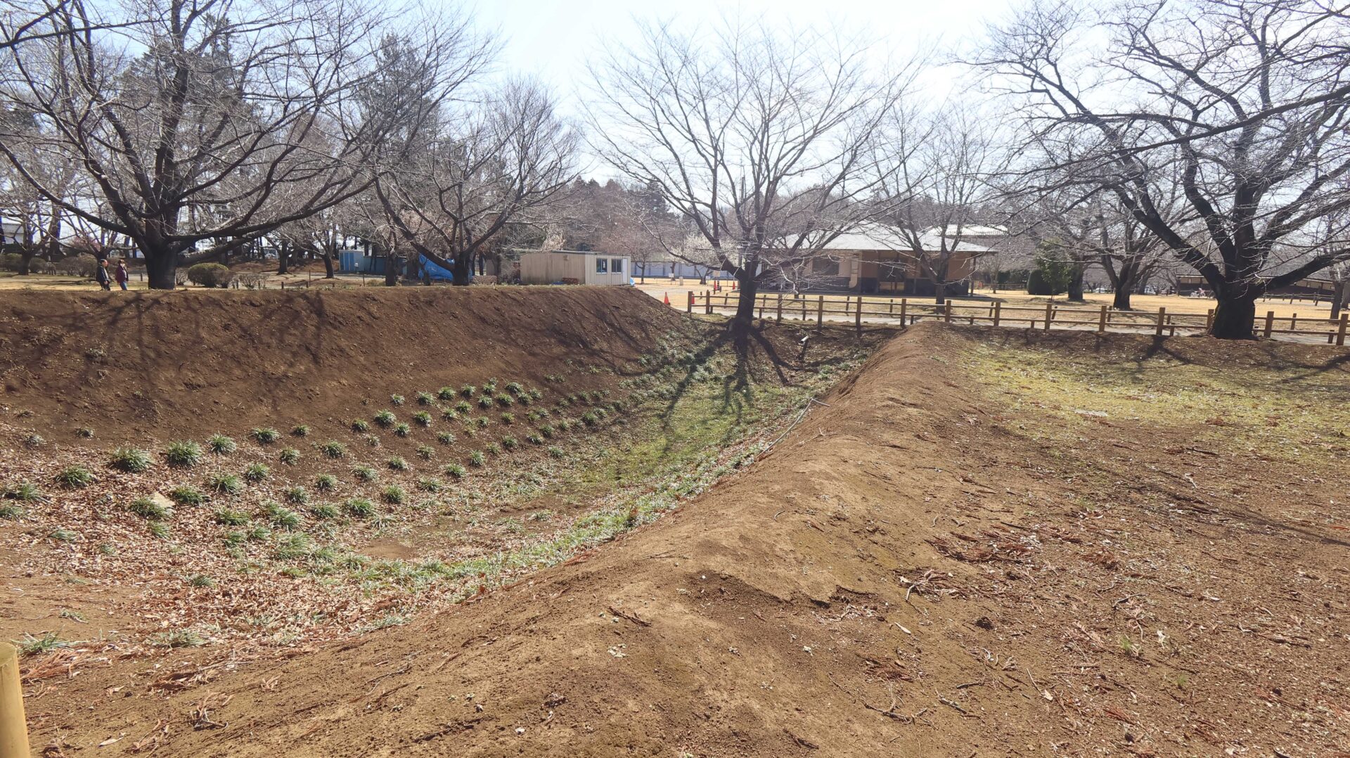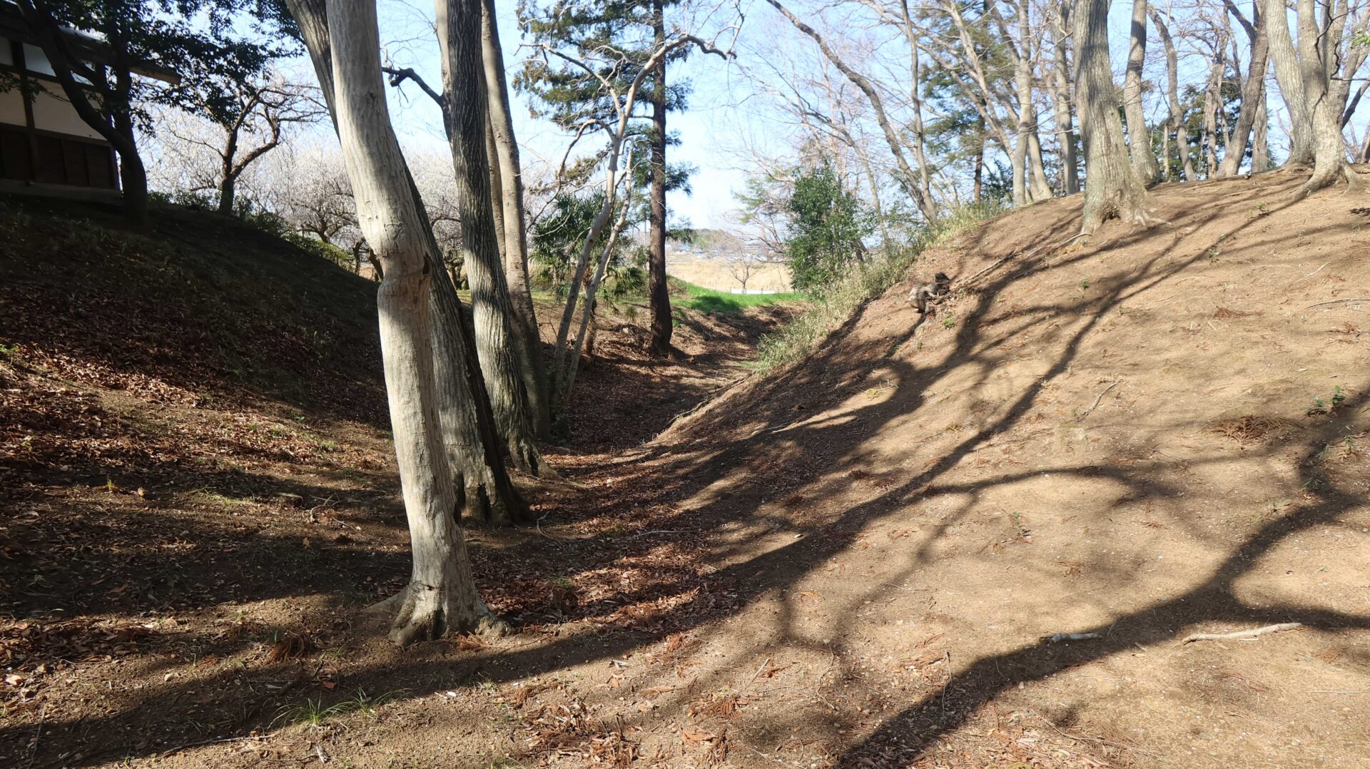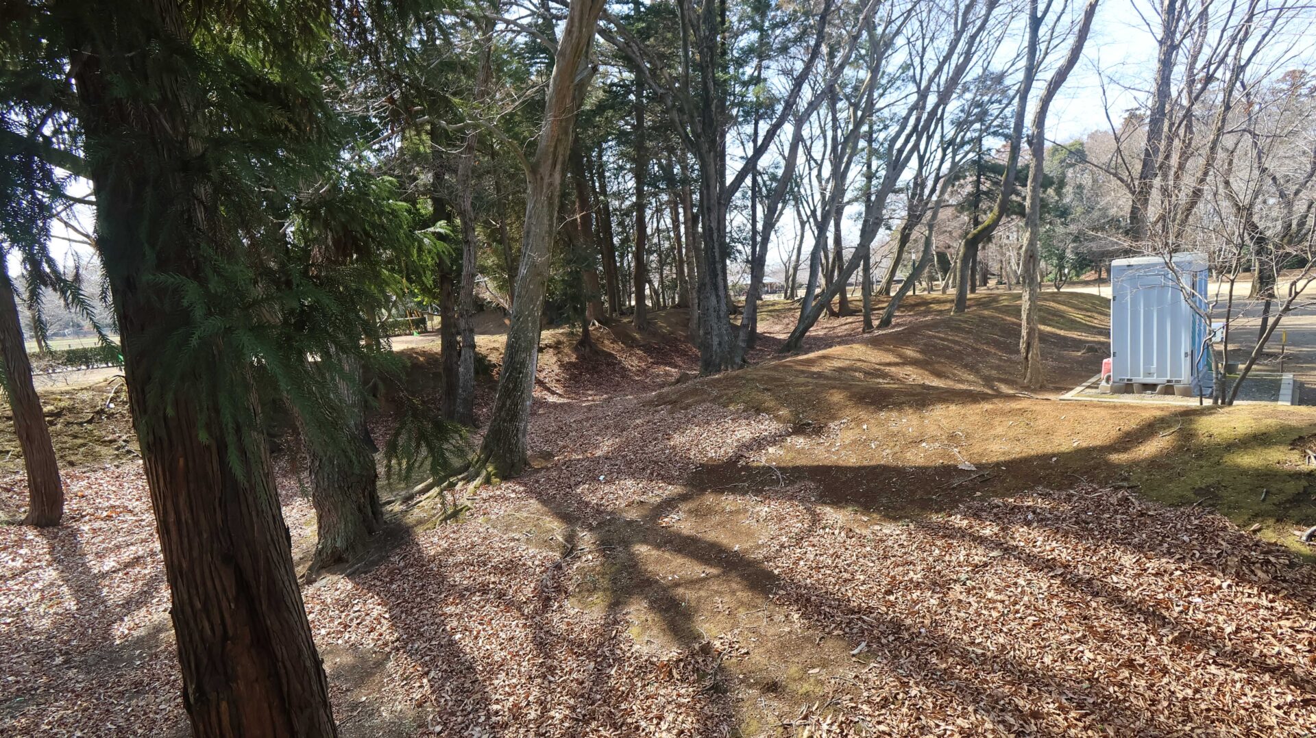 広い公園の縁をまわり、先ほどの鐘堀池付近の土塁に戻る