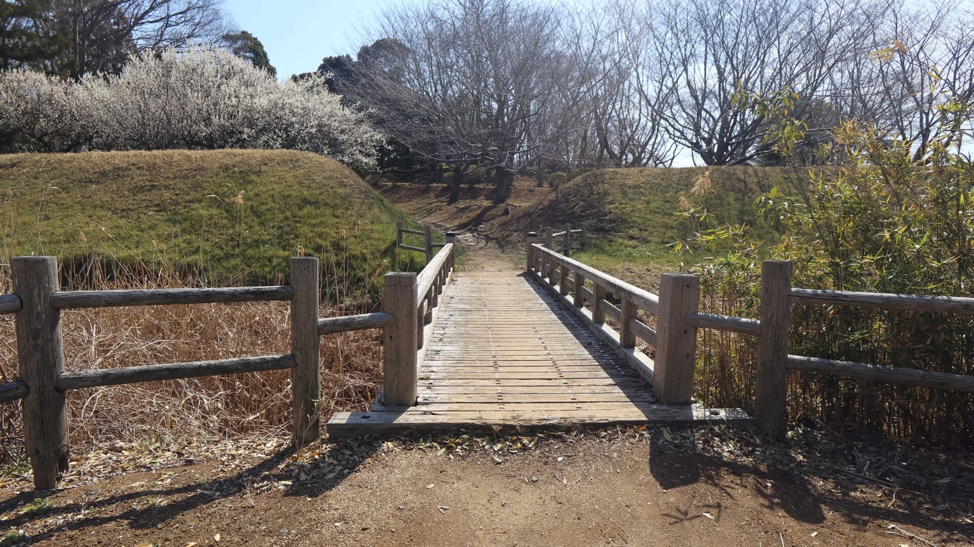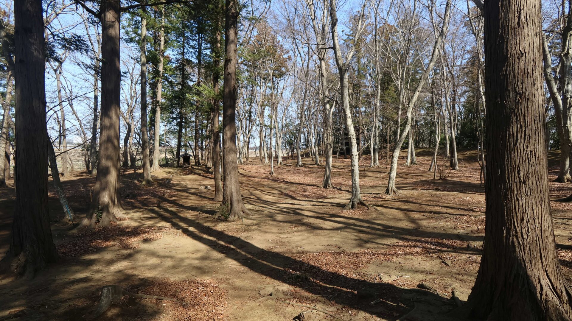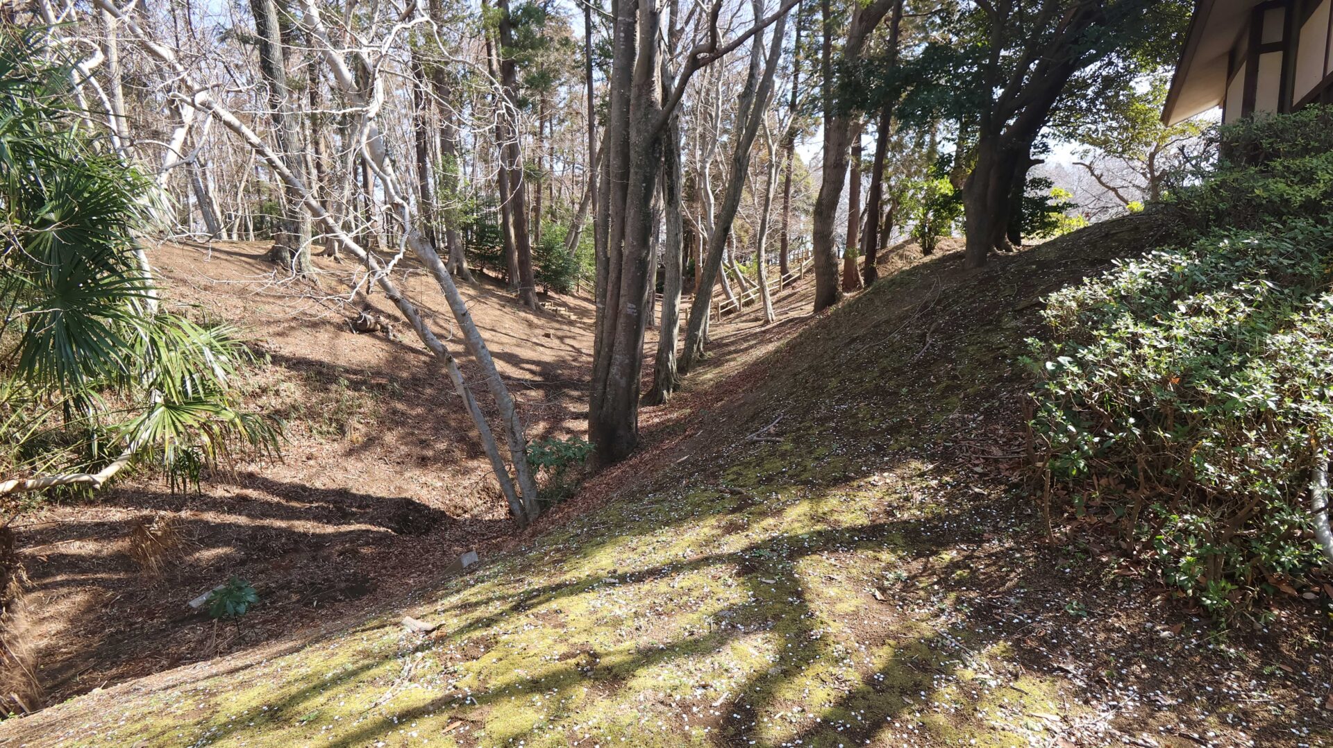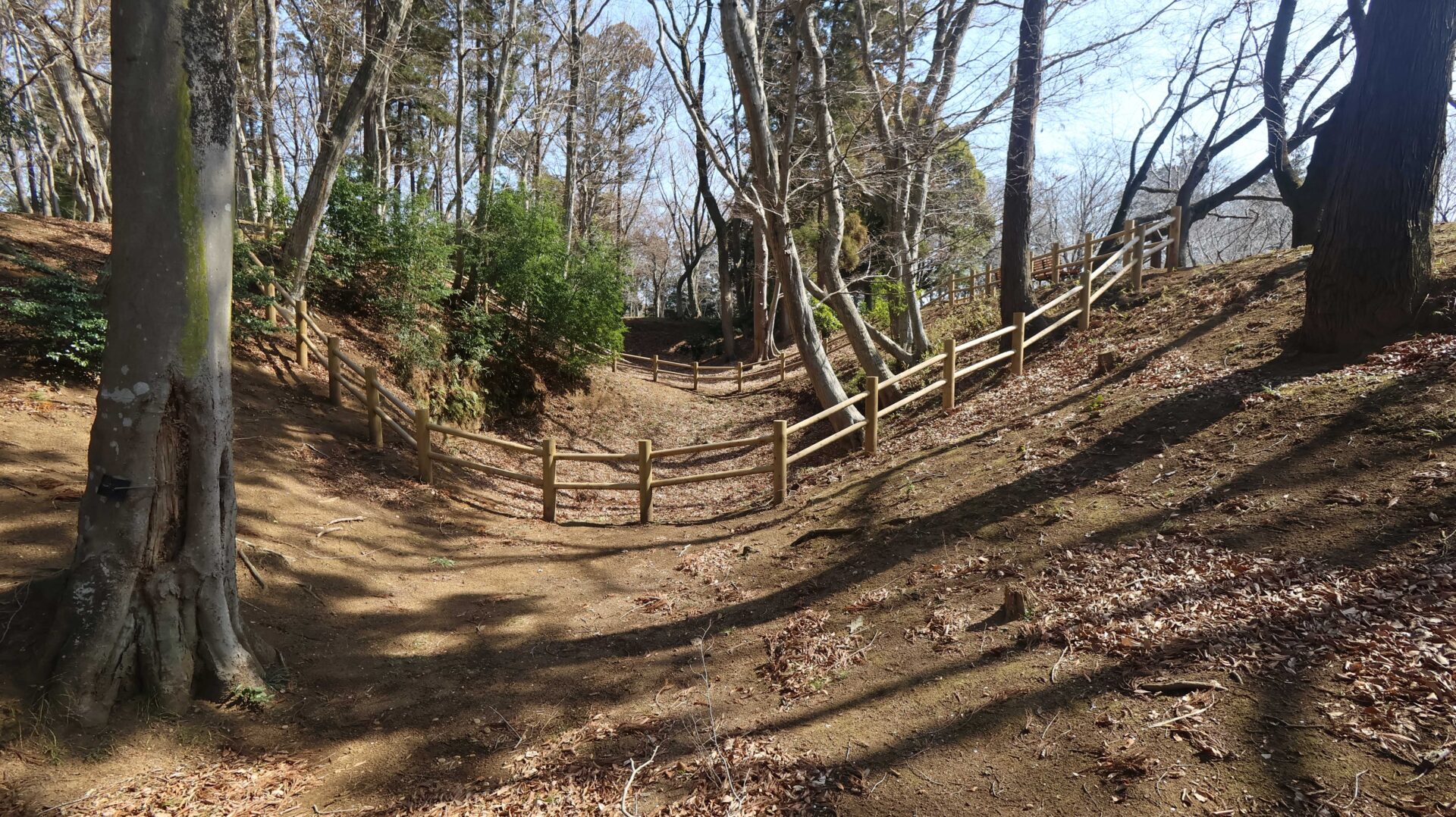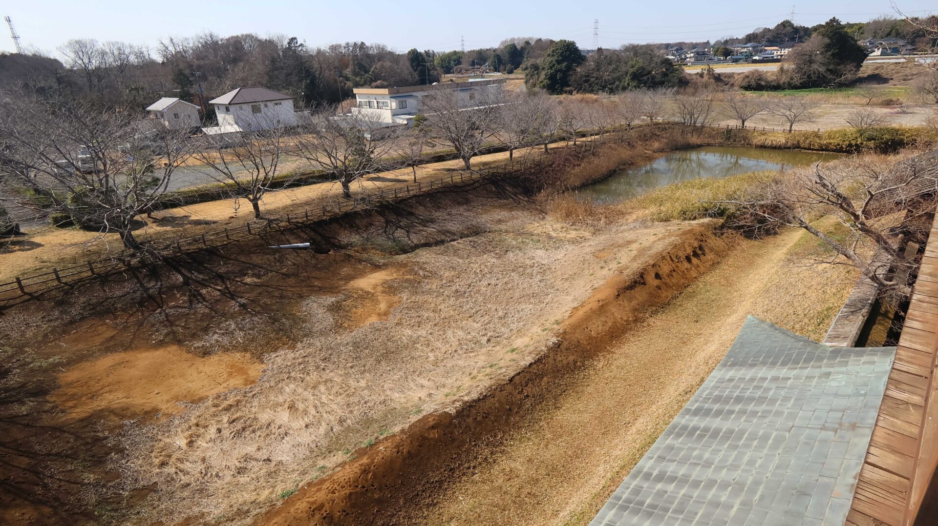 広い公園の縁をまわり、先ほどの鐘堀池付近の土塁に戻る