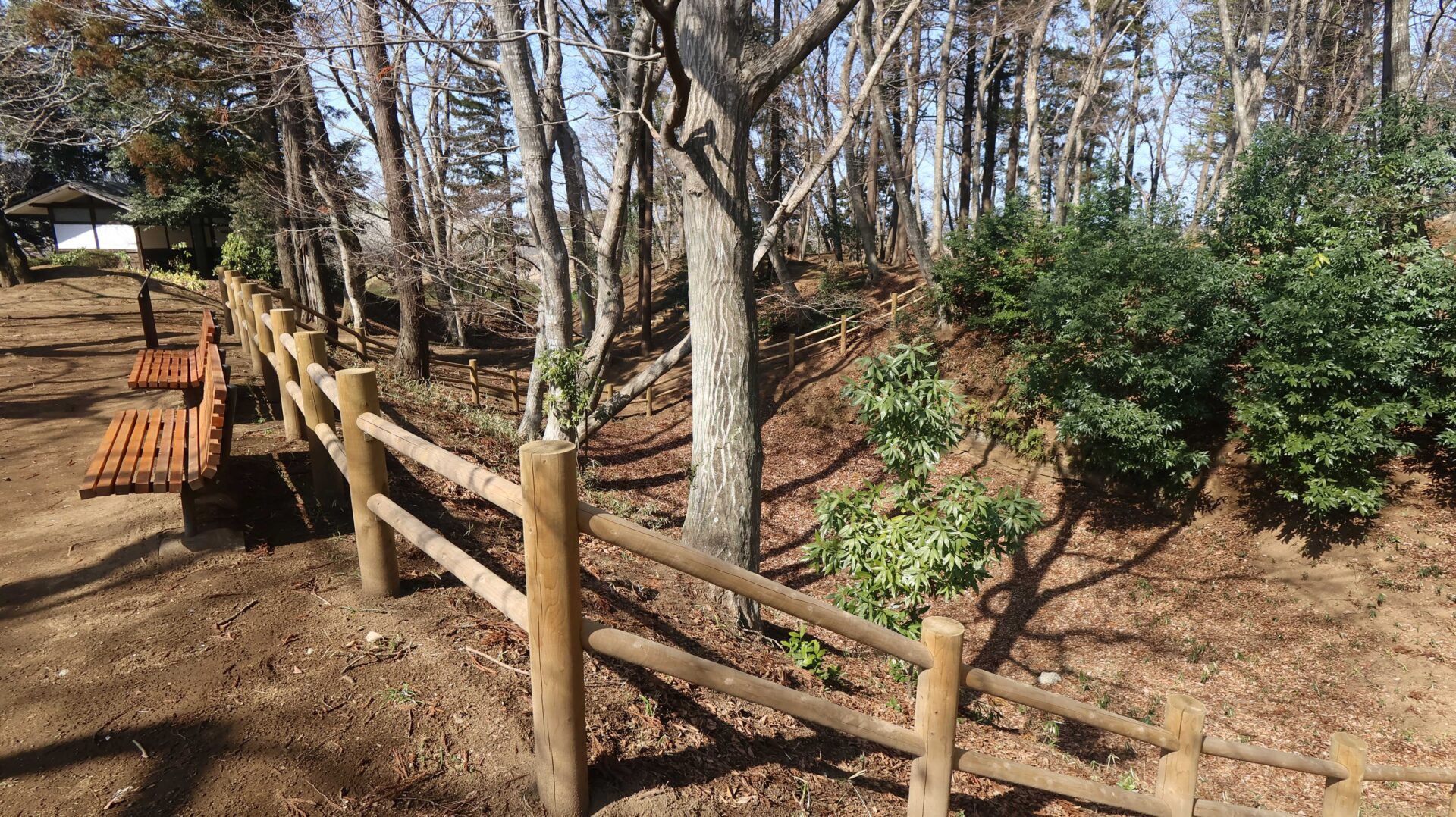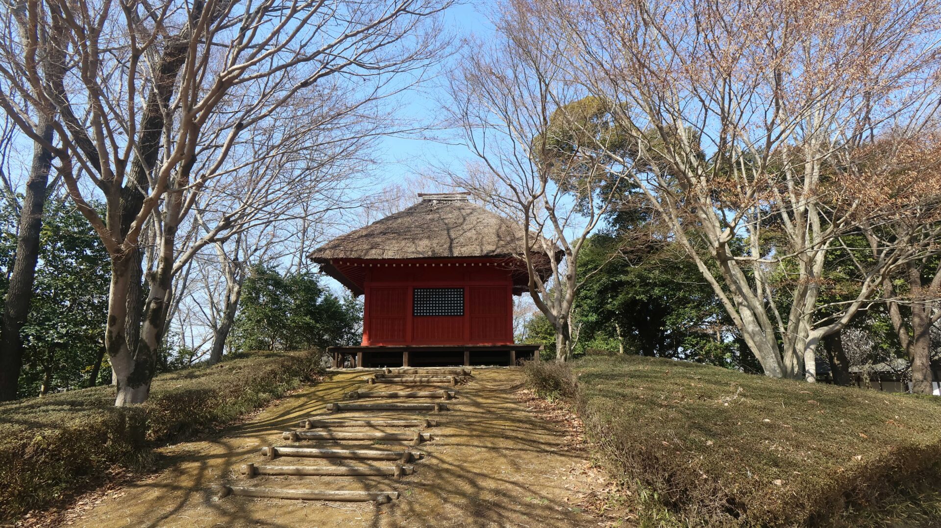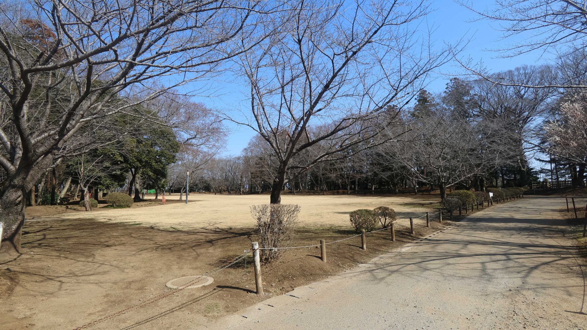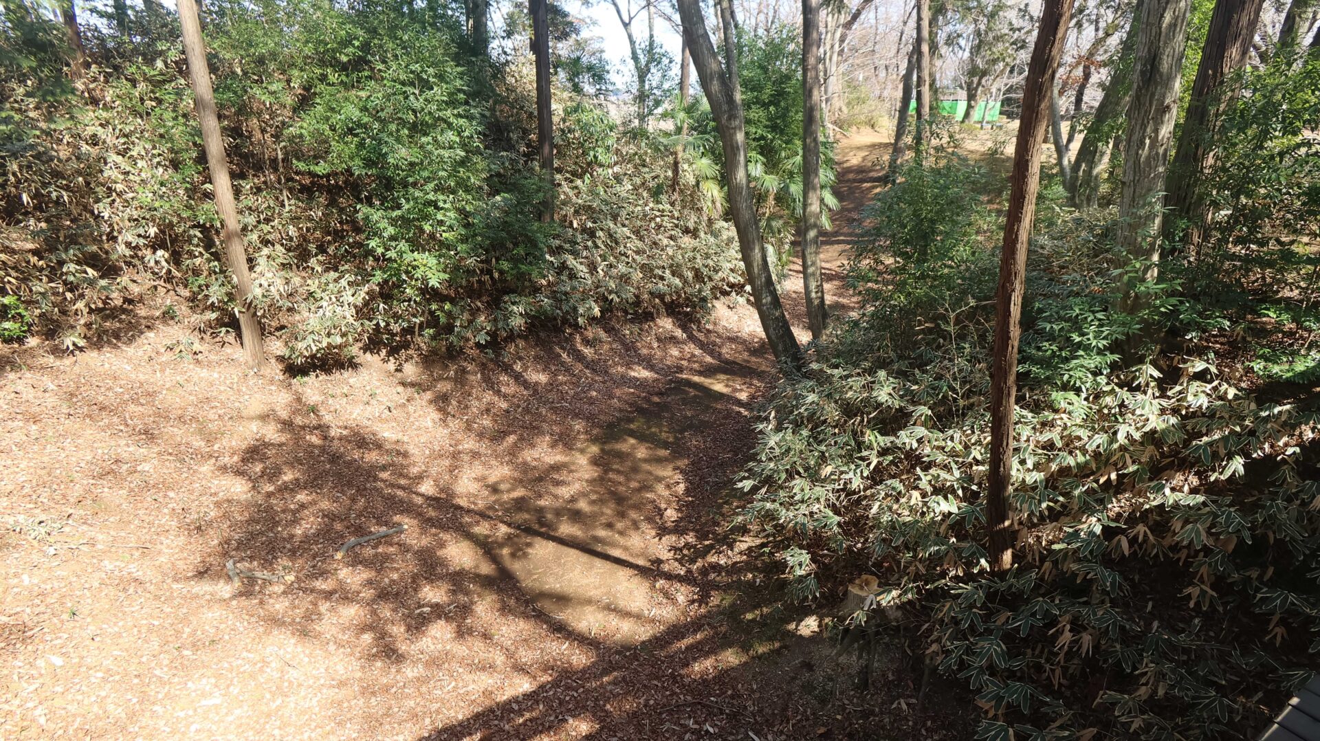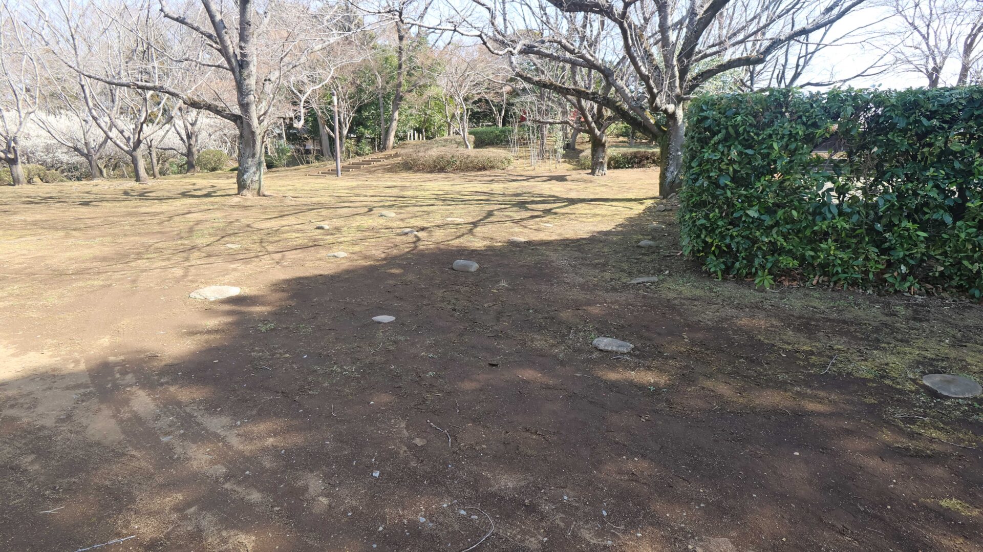 広い公園の縁をまわり、先ほどの鐘堀池付近の土塁に戻る