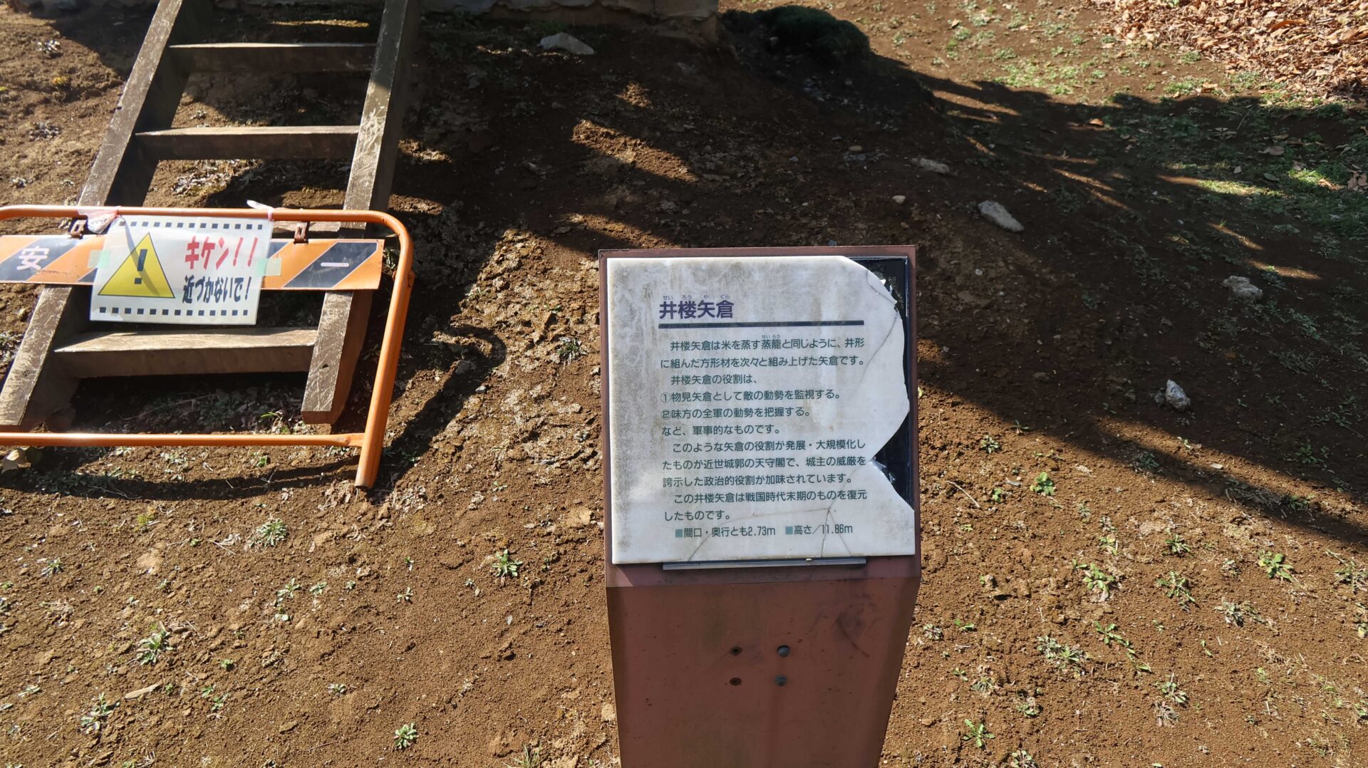 敷石だろうか。さきほどの矢倉。いったん外に出るとこんな感じに。入り口跡だろうか