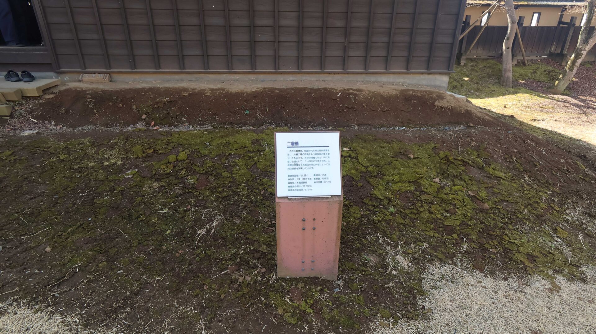 生楼矢倉。登れなくなっている。あたりを見ると土塁が残っている。