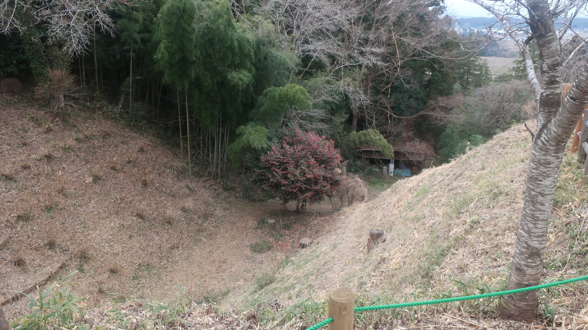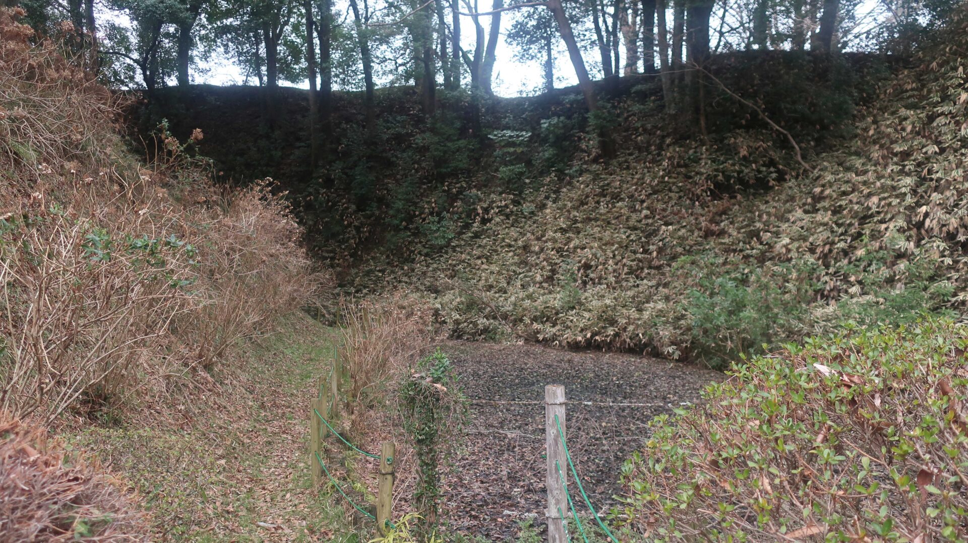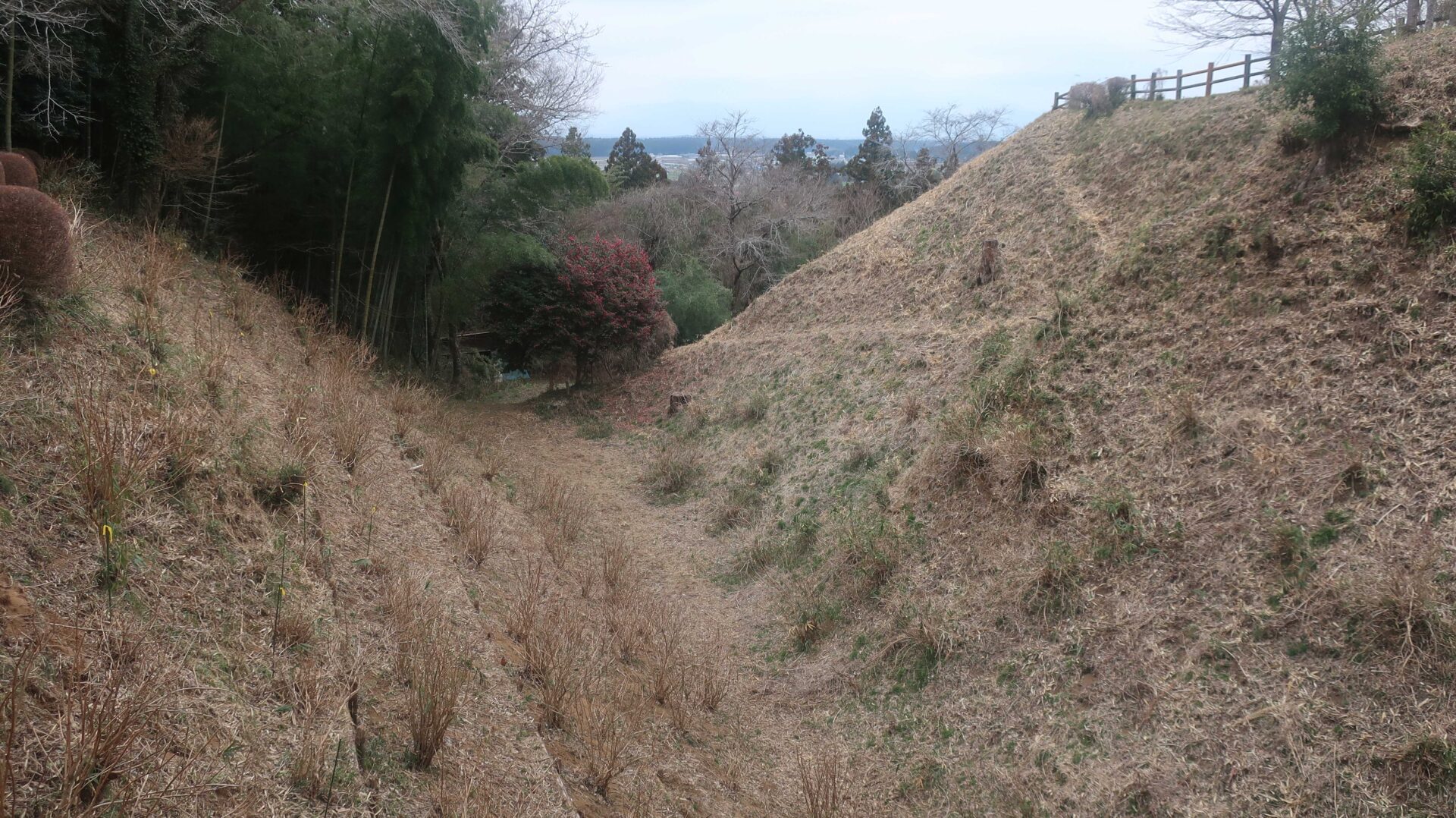 お、期待させる景色。前に進むと、ドーンと空堀。これも凄い。喜連川もそうだったが、規模がそれほどでもない城でこの空堀は攻めるのが嫌になりそうな感じでもある。何も苦労して落とさなくてもってなってしまいそう(内応とかで何とかするかと)