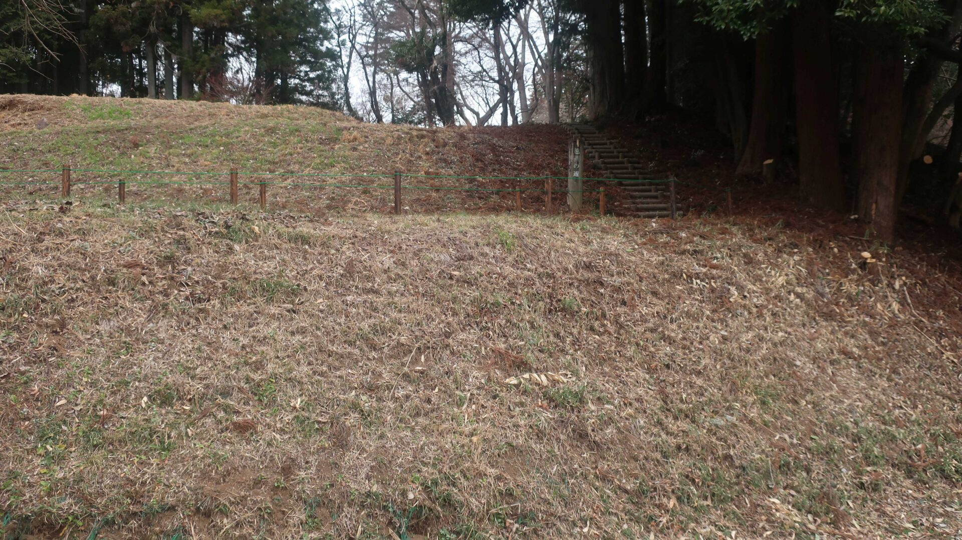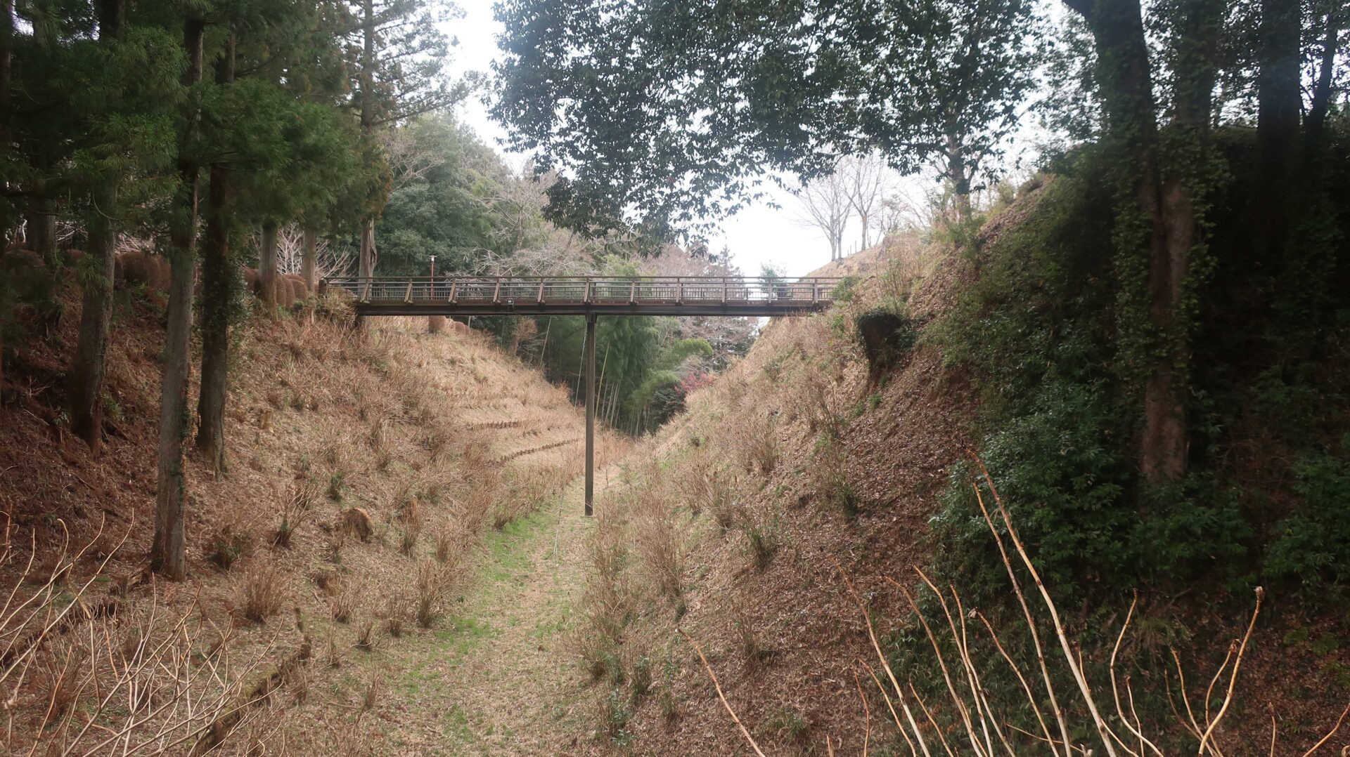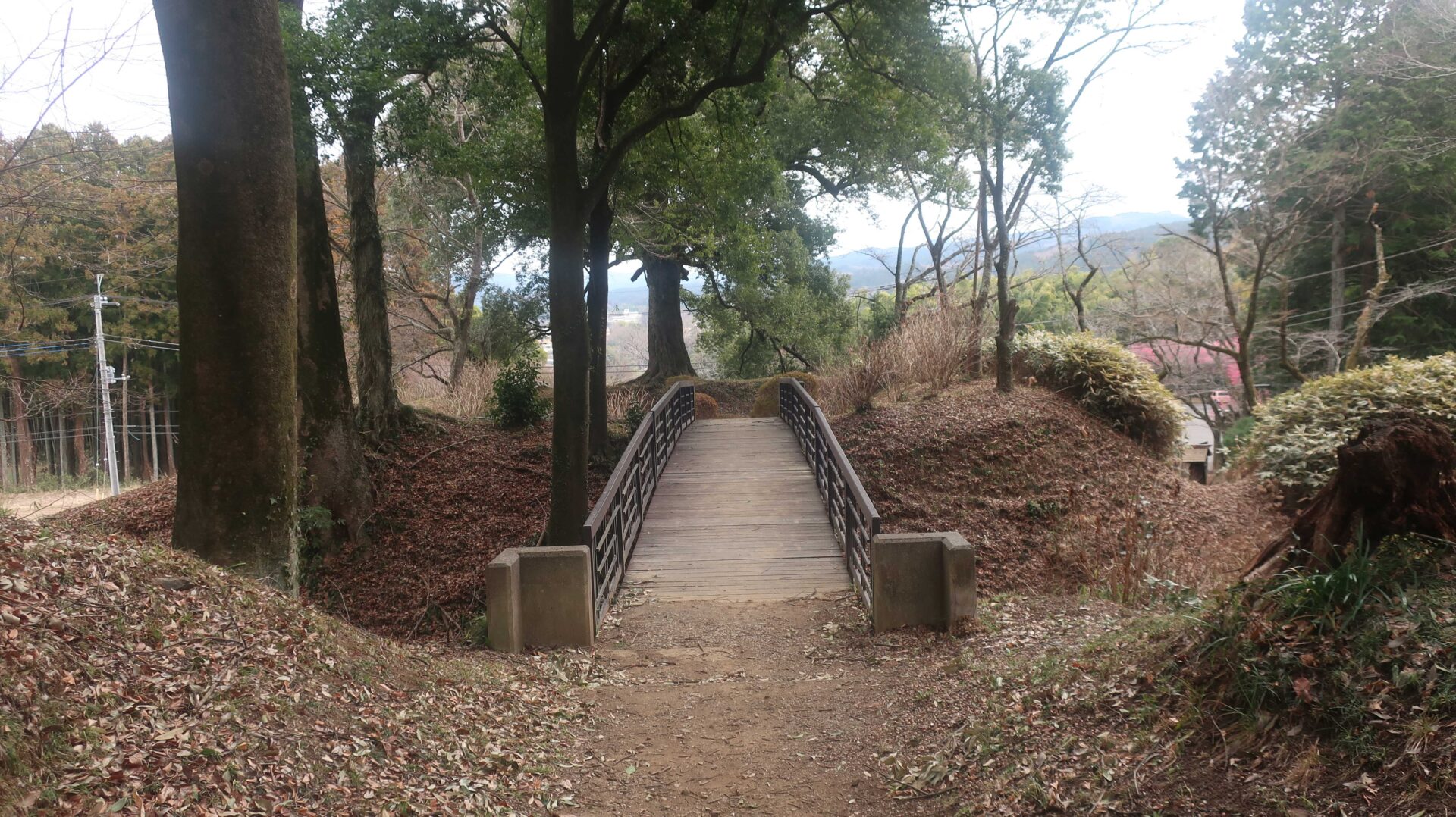 お、期待させる景色。前に進むと、ドーンと空堀。これも凄い。喜連川もそうだったが、規模がそれほどでもない城でこの空堀は攻めるのが嫌になりそうな感じでもある。何も苦労して落とさなくてもってなってしまいそう(内応とかで何とかするかと)