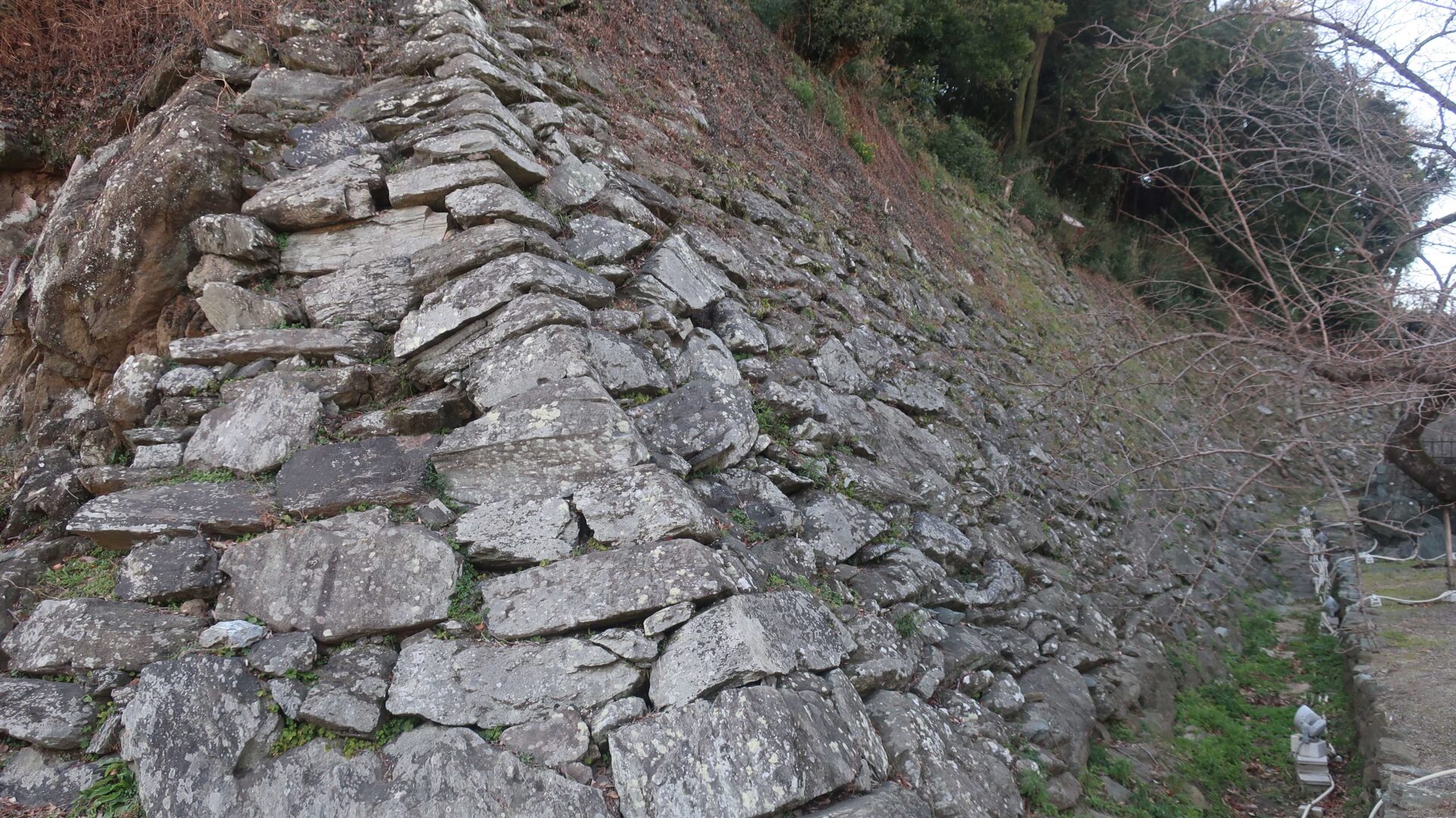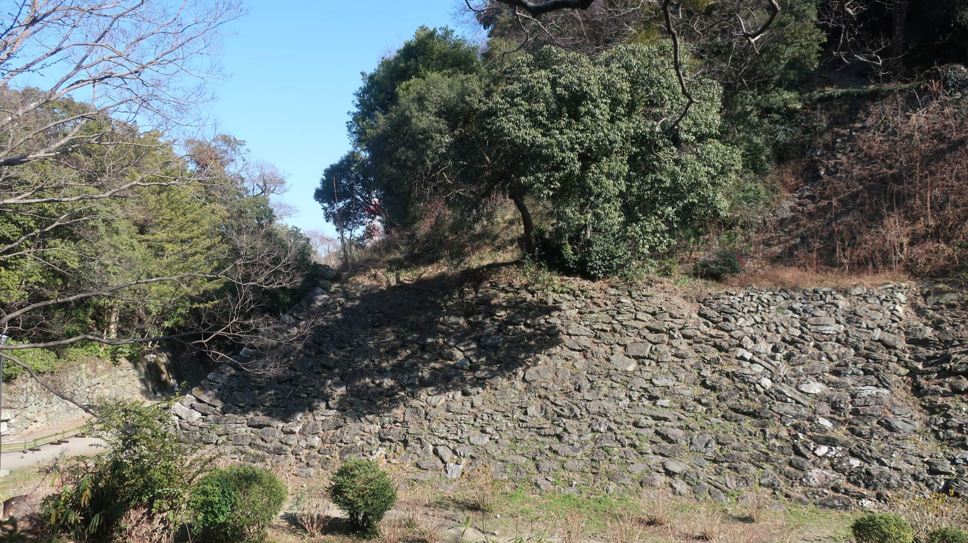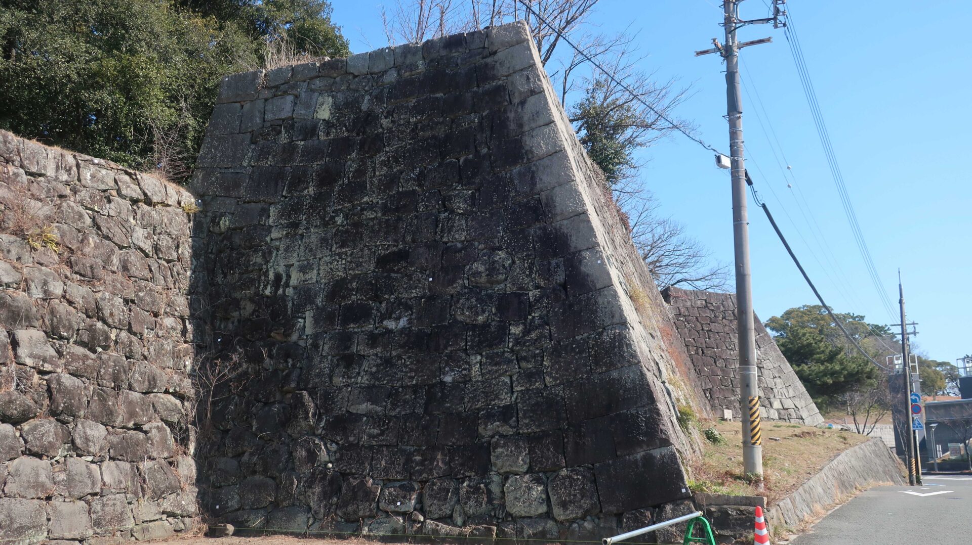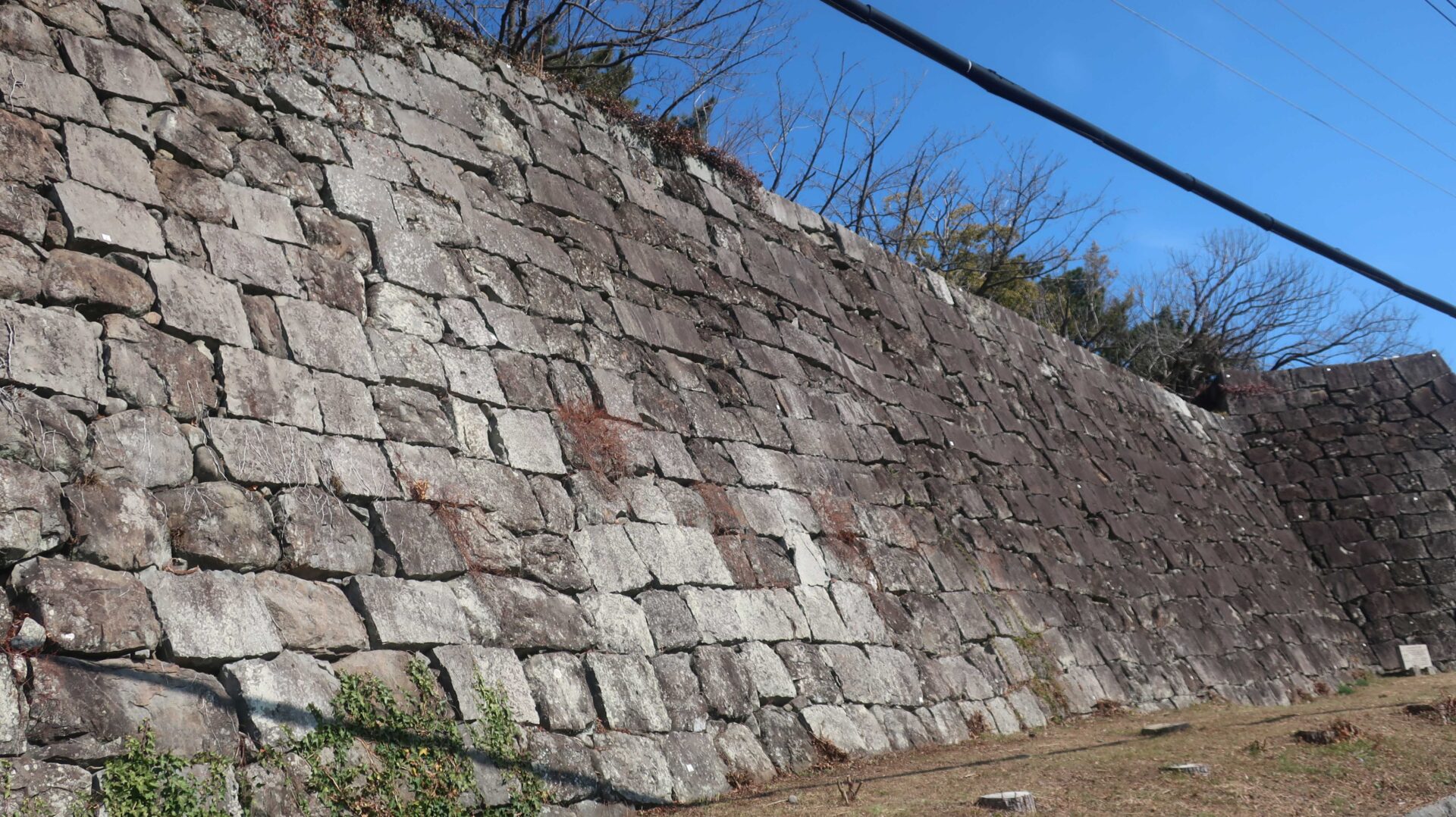 石垣は立派。権力の証。遠くに説明が書かれているが登れないし見えないよ