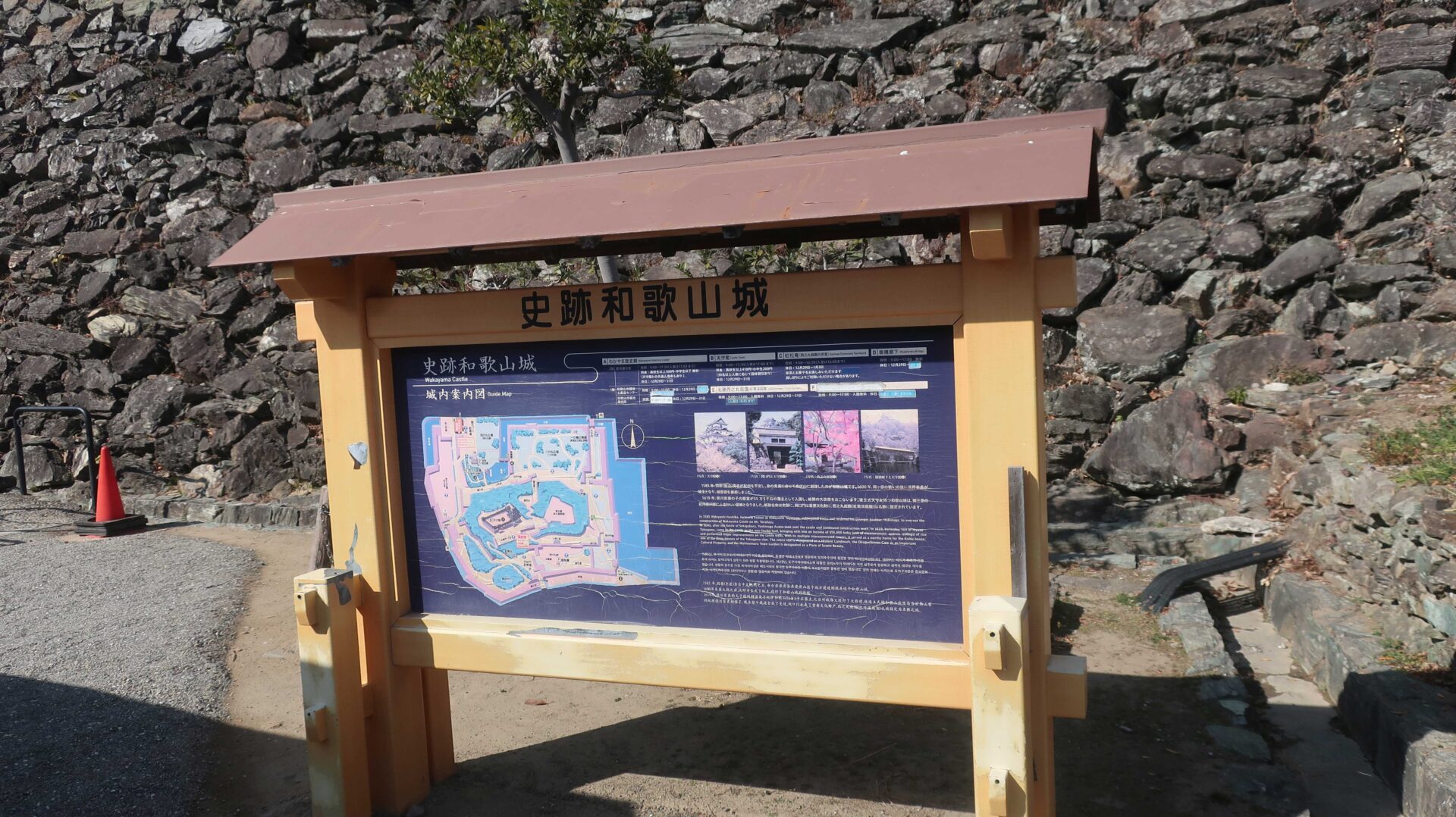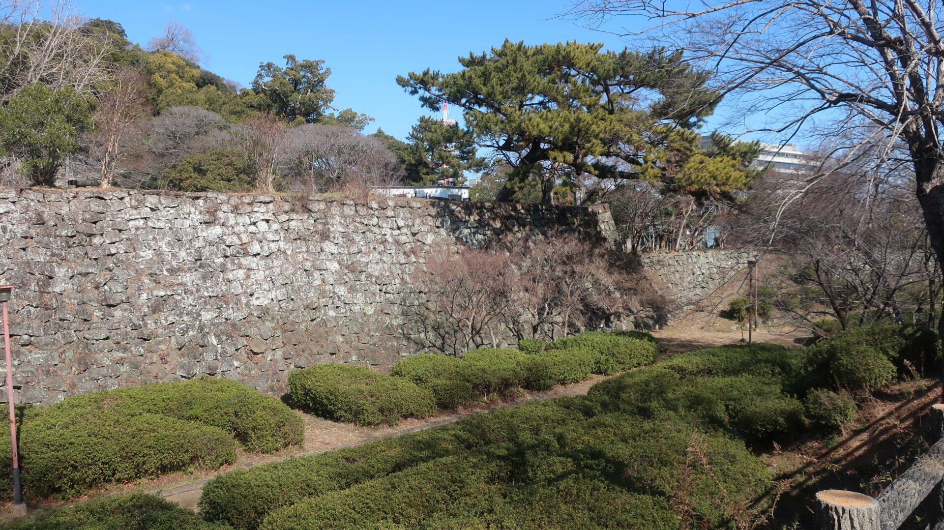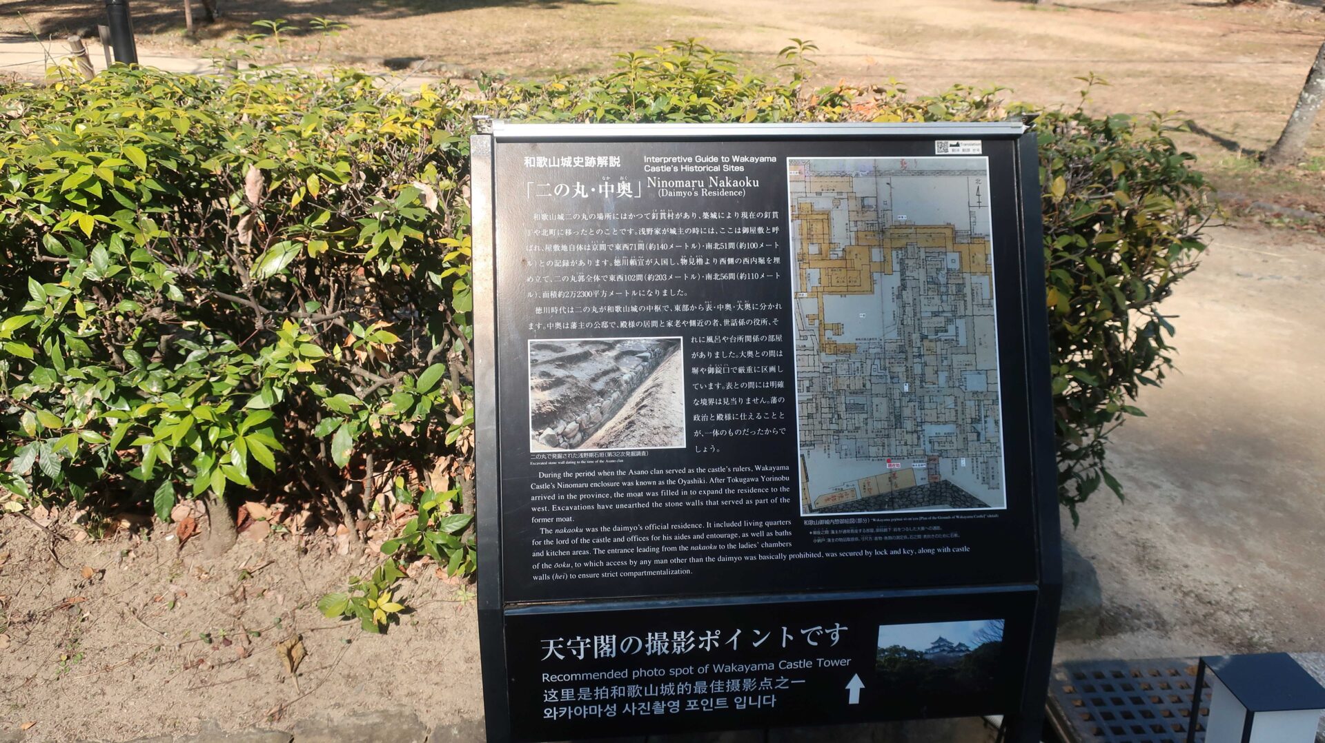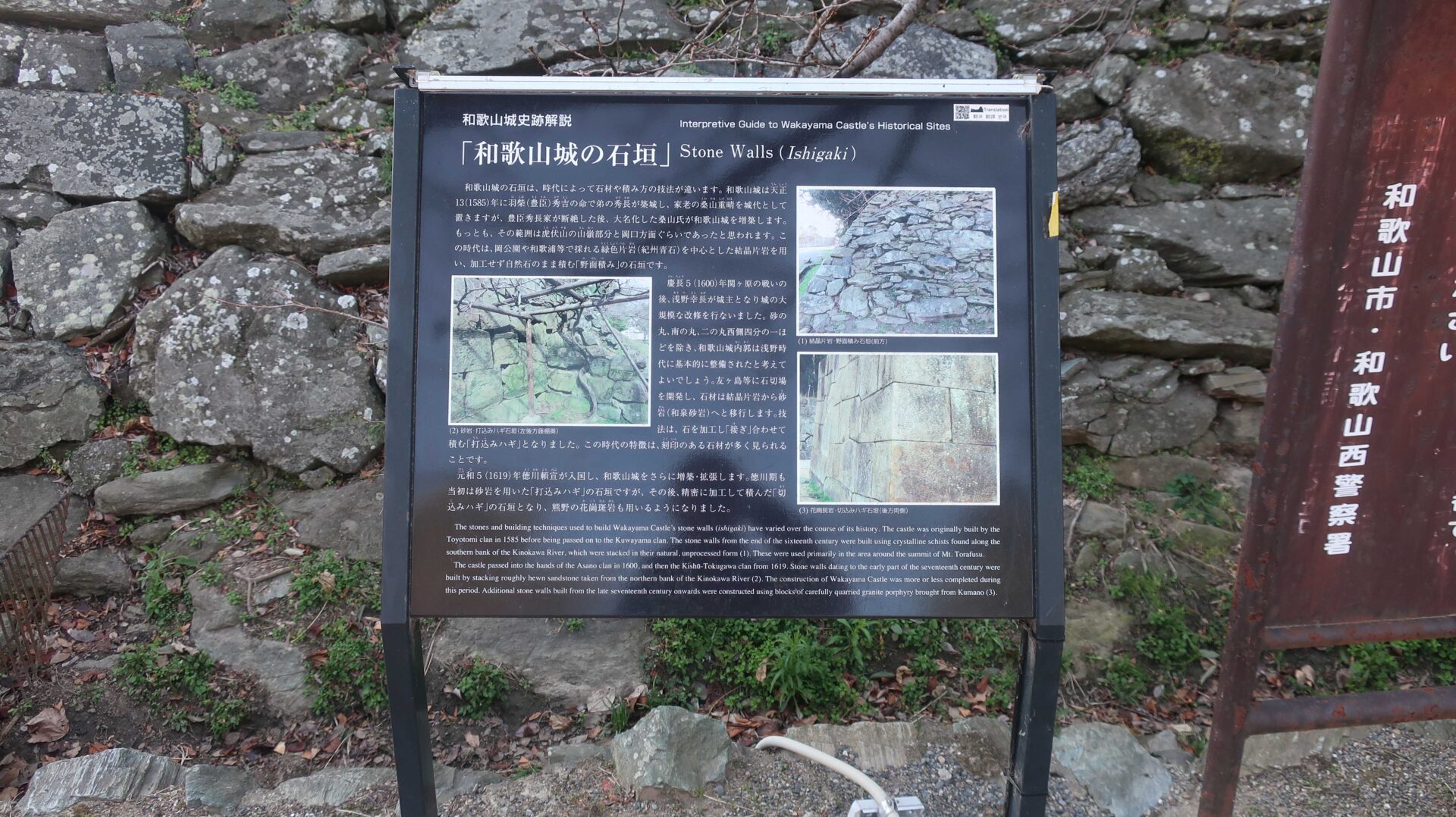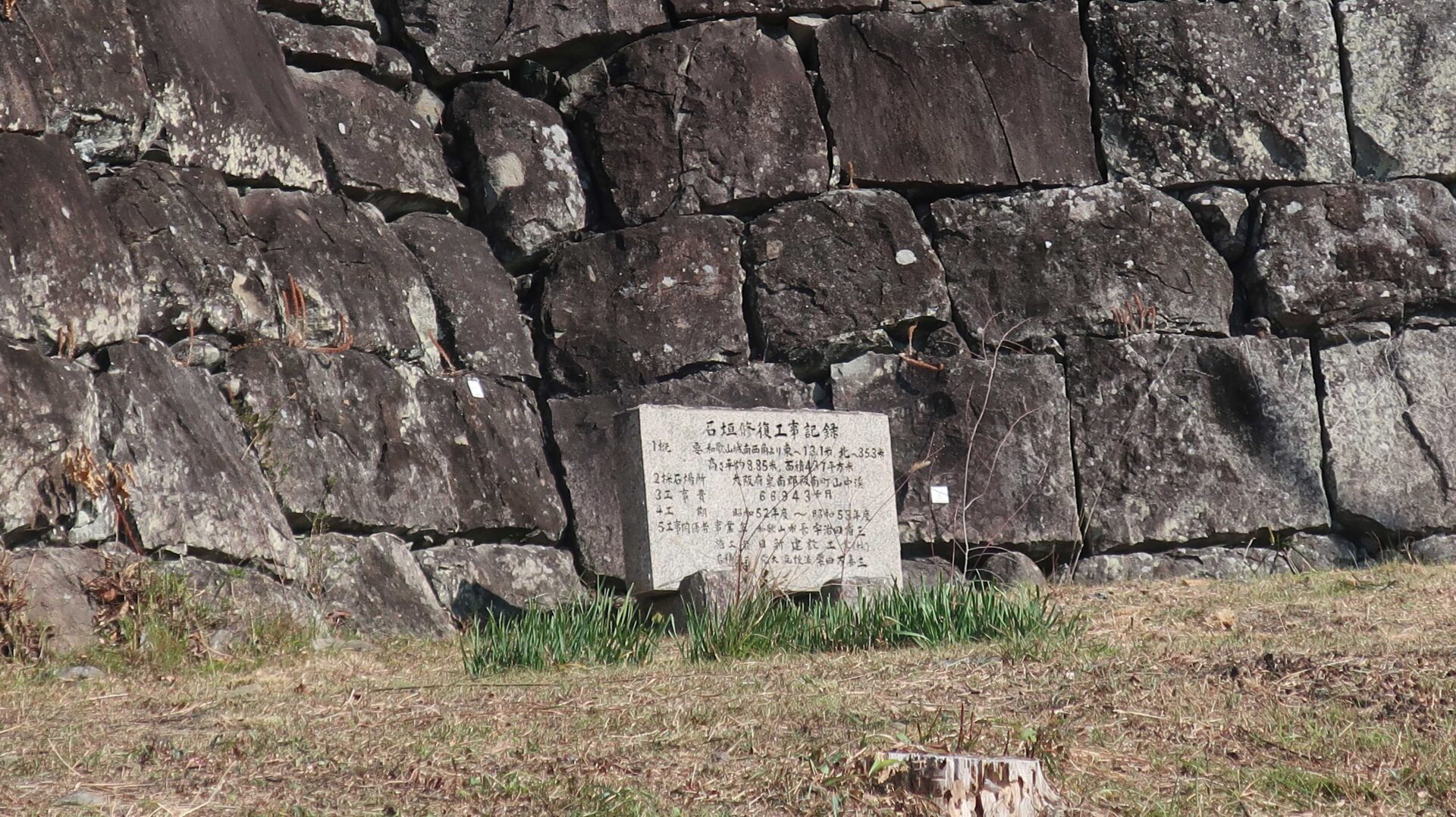 石垣は立派。権力の証。遠くに説明が書かれているが登れないし見えないよ