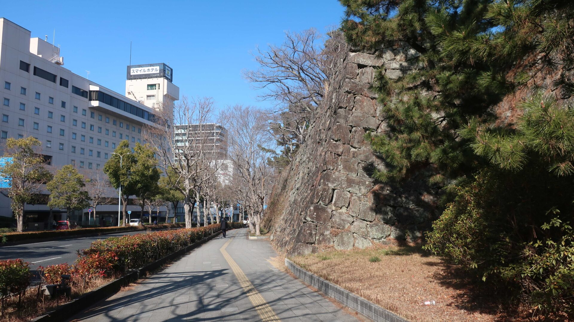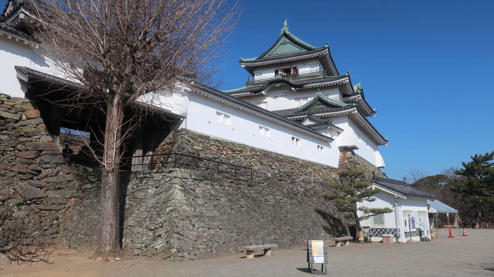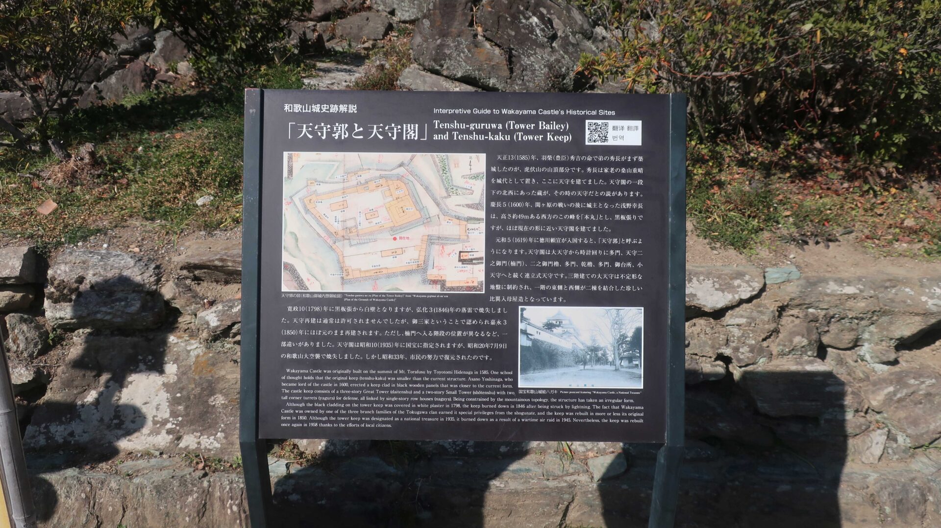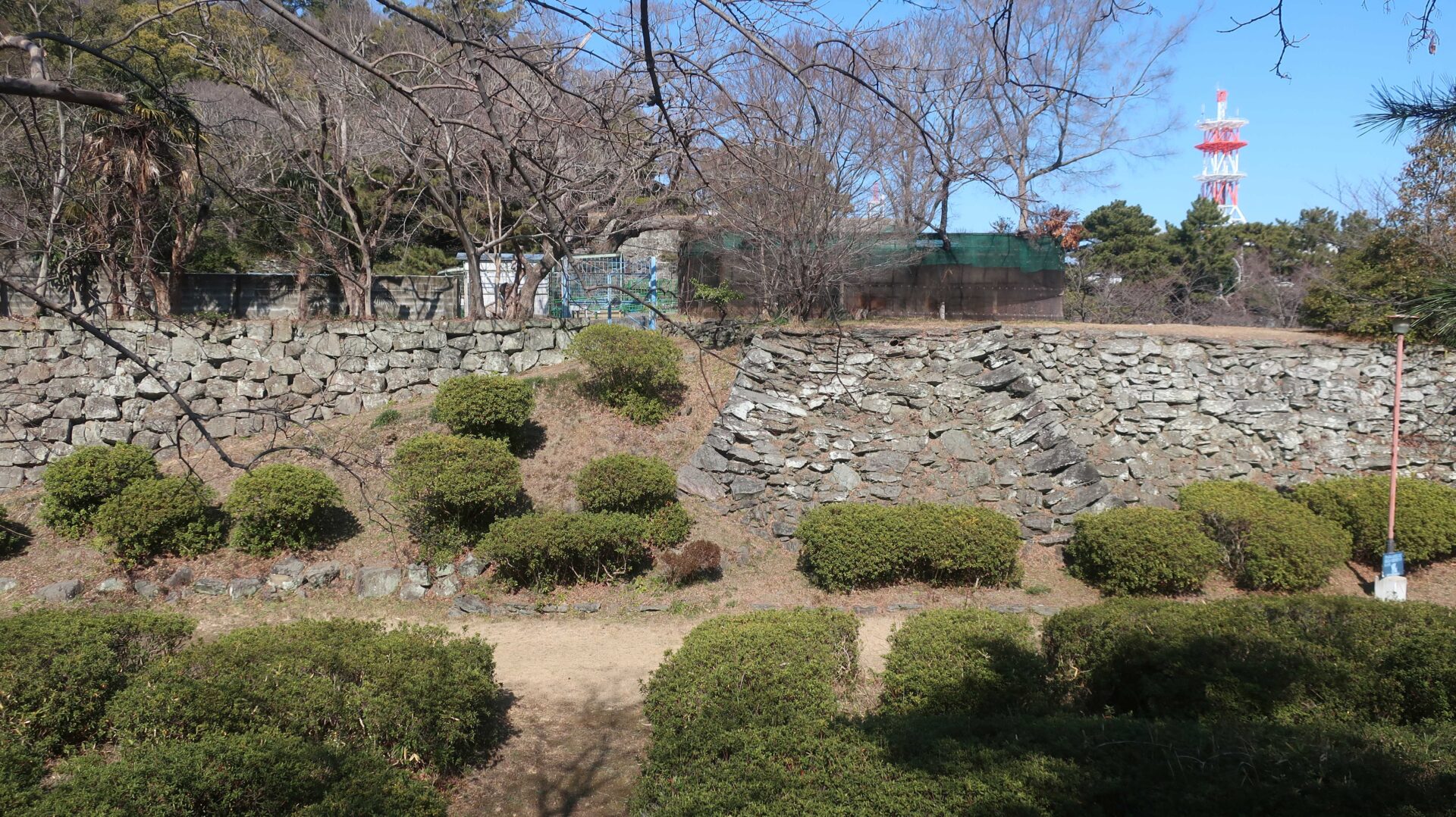 石垣は立派。権力の証。遠くに説明が書かれているが登れないし見えないよ