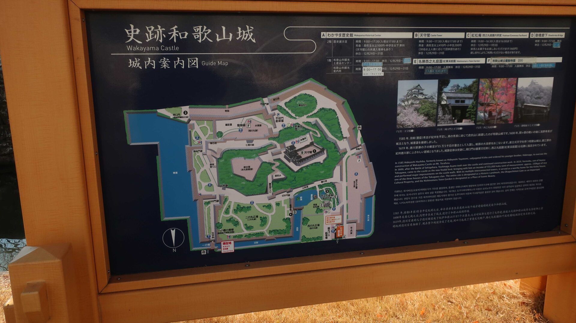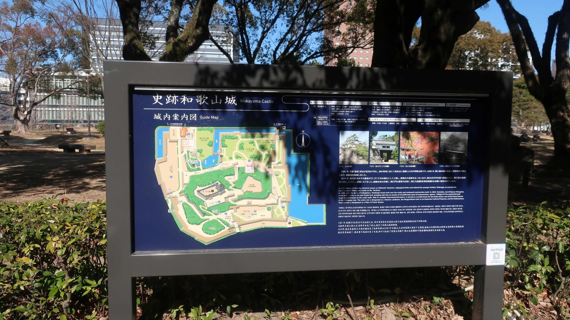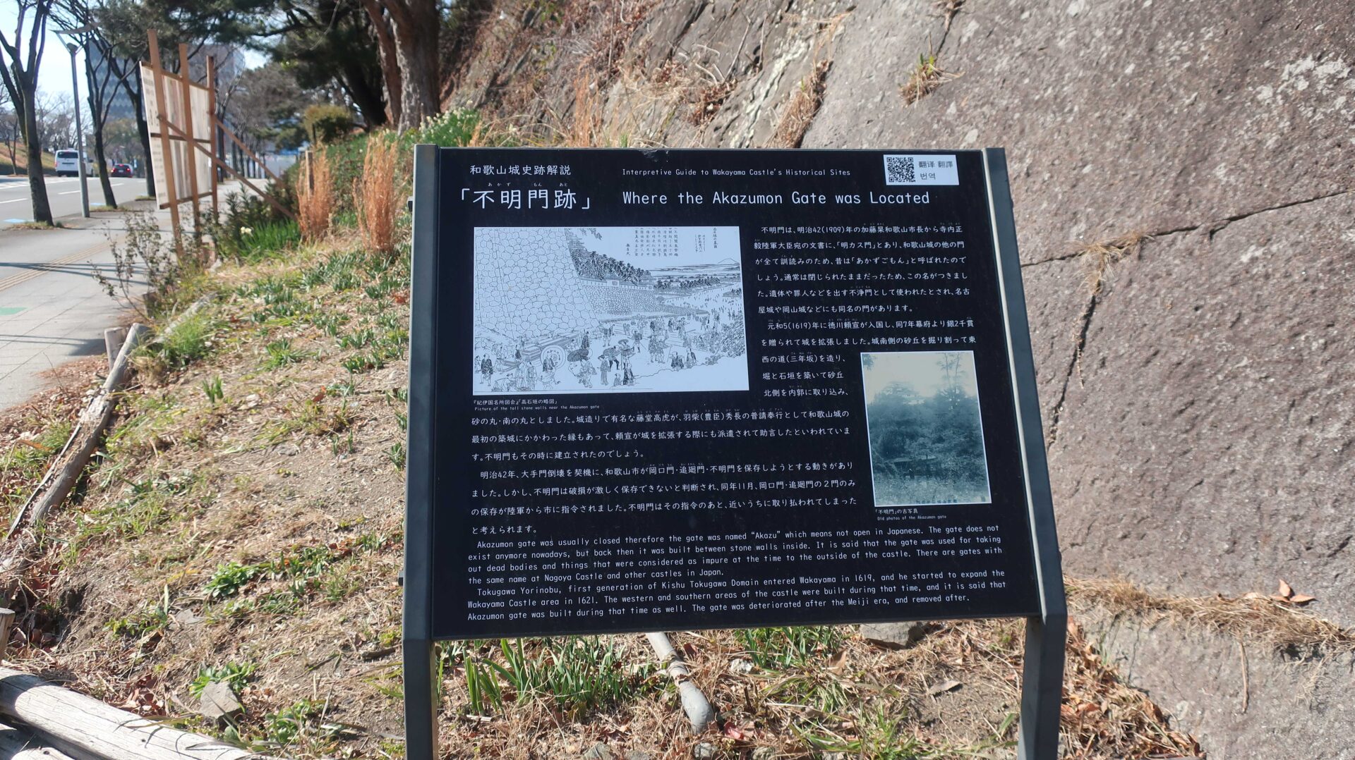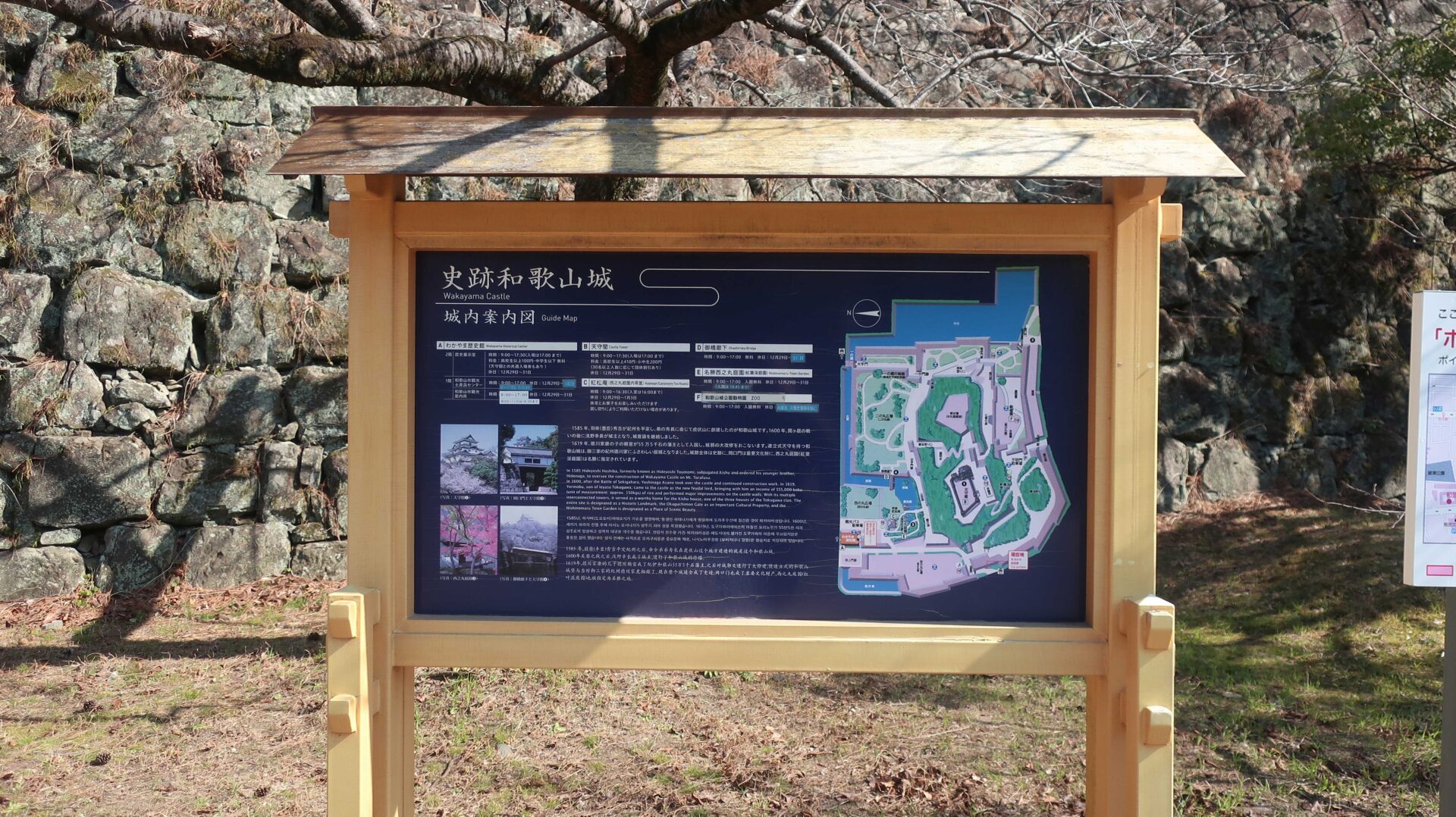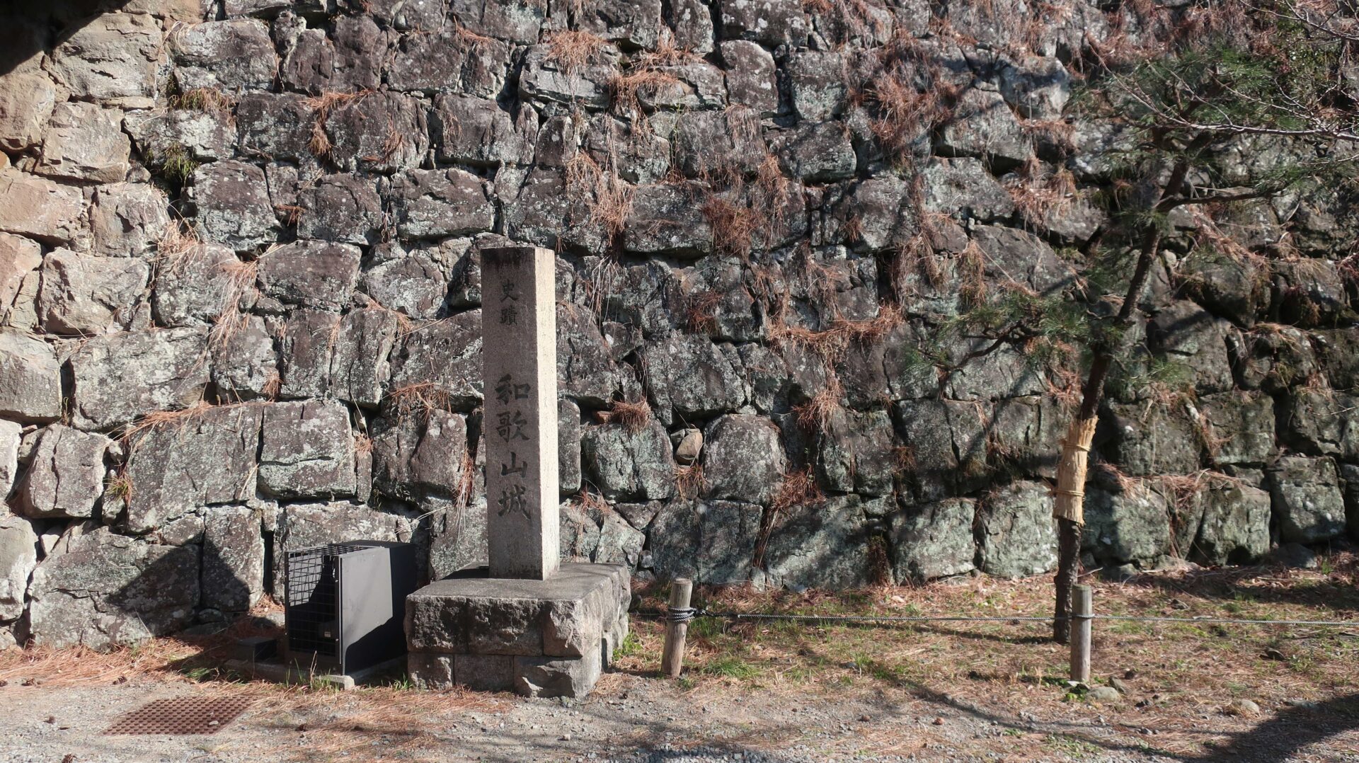 石垣は立派。権力の証。遠くに説明が書かれているが登れないし見えないよ