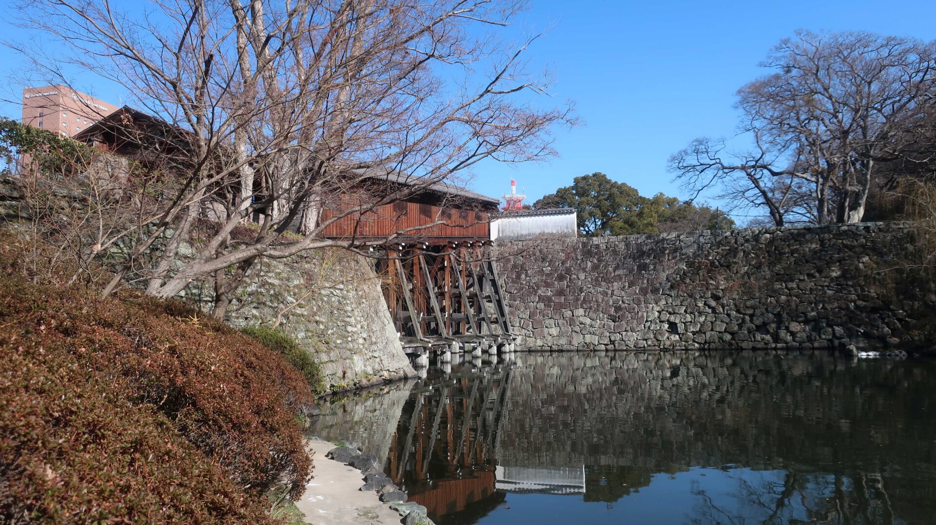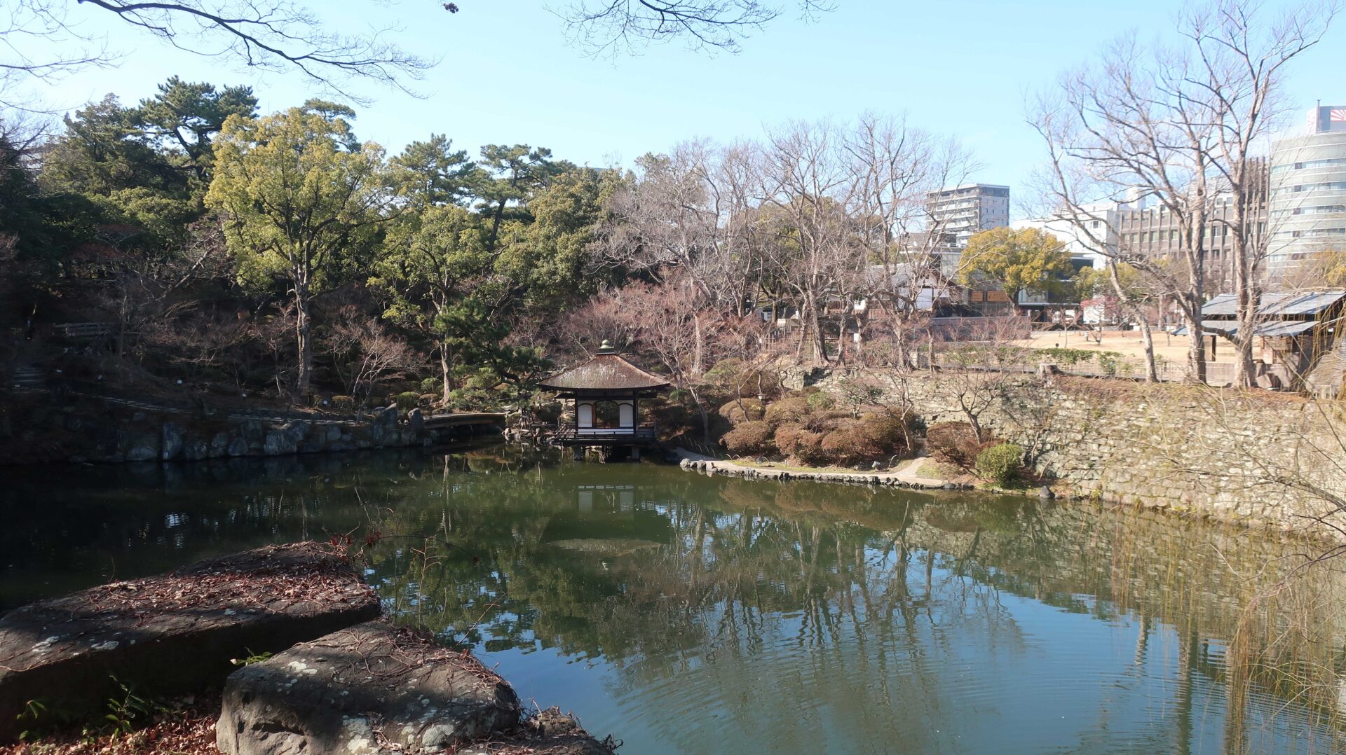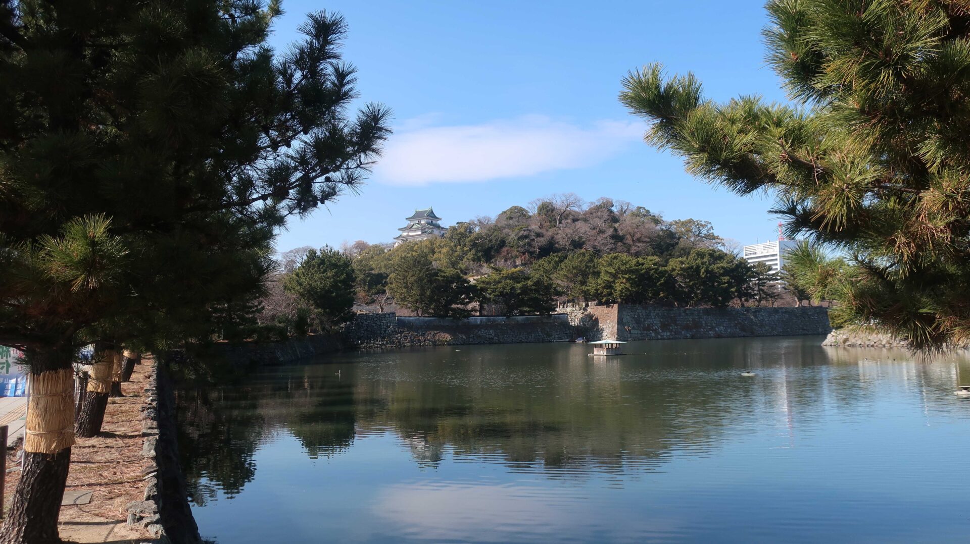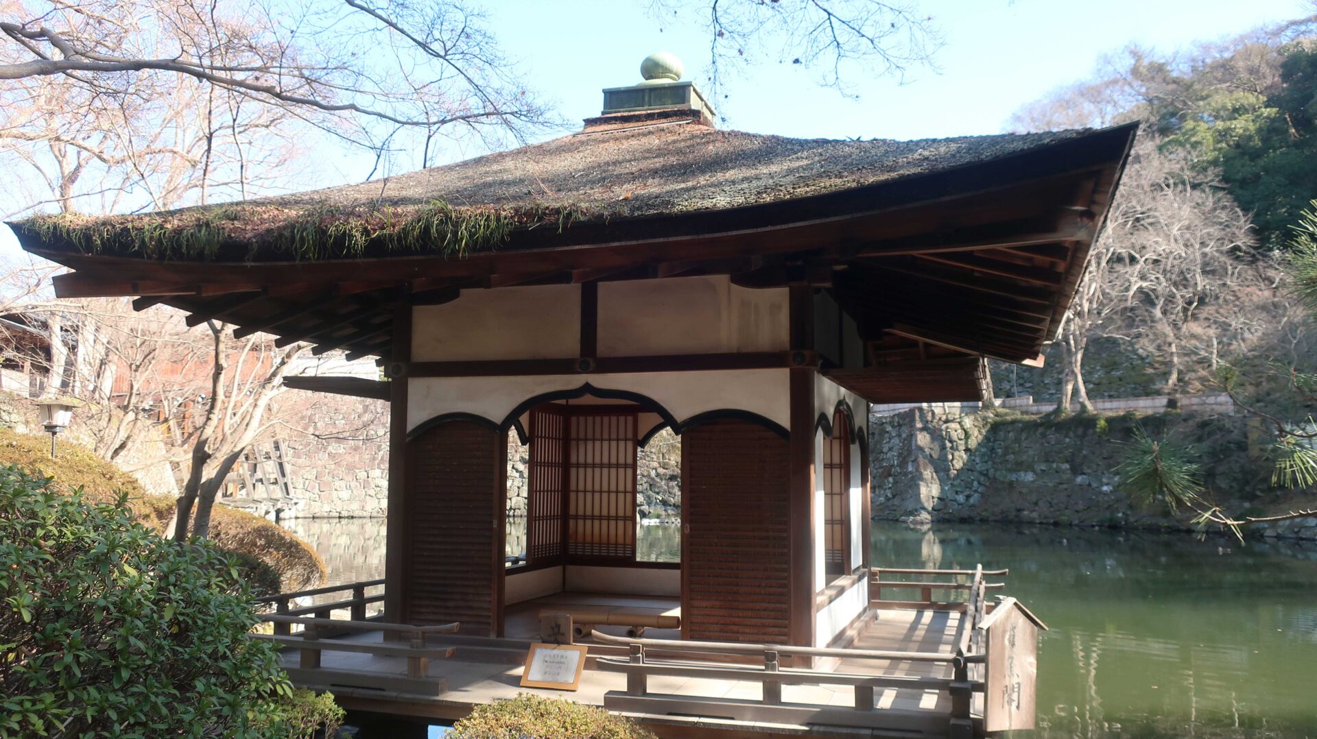 外周回ったときに見えた堀。先に進むと七福の庭へ