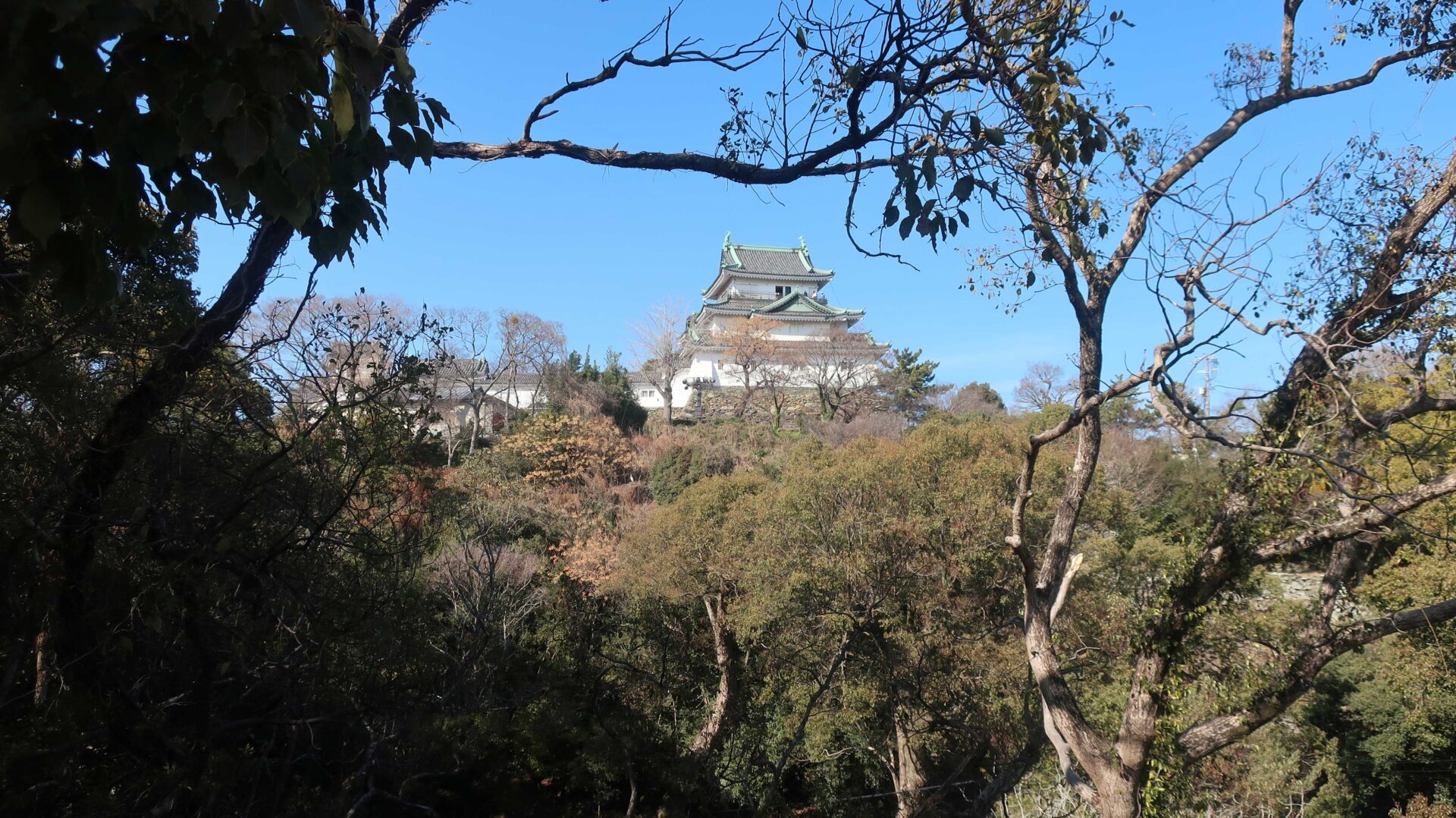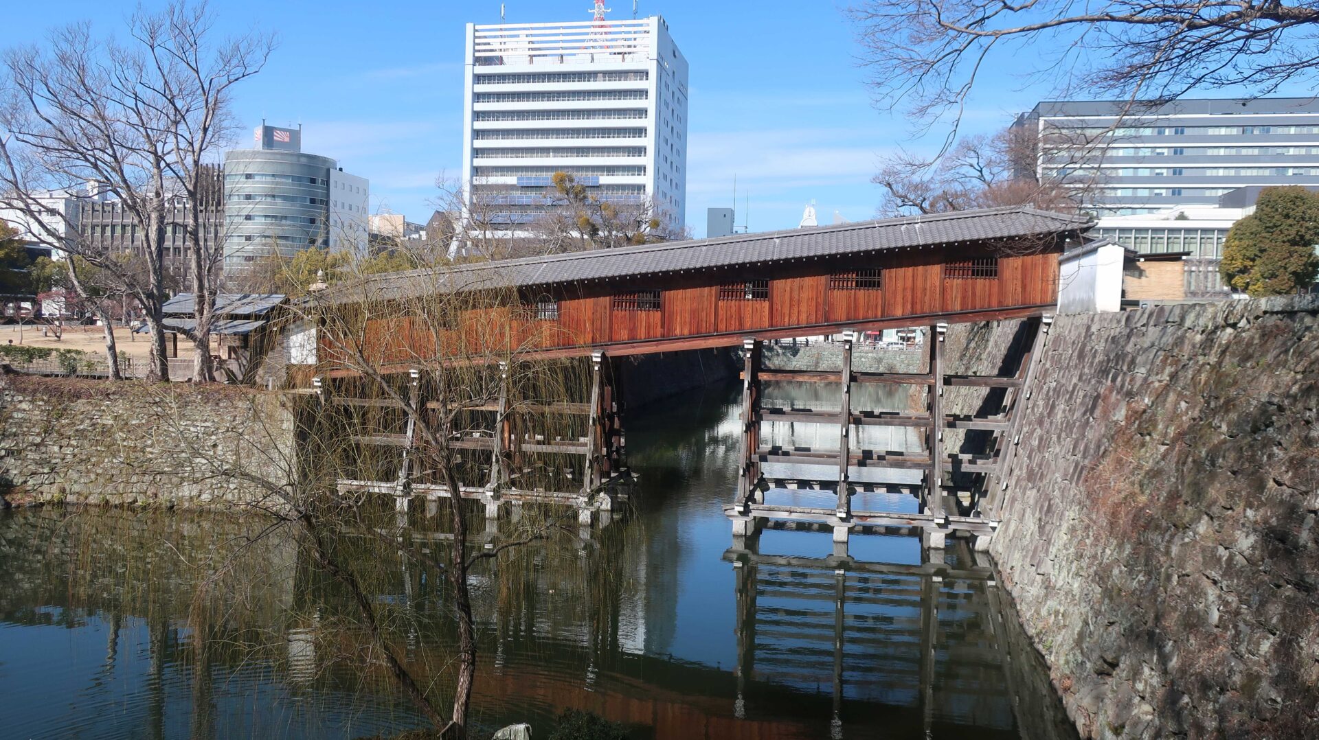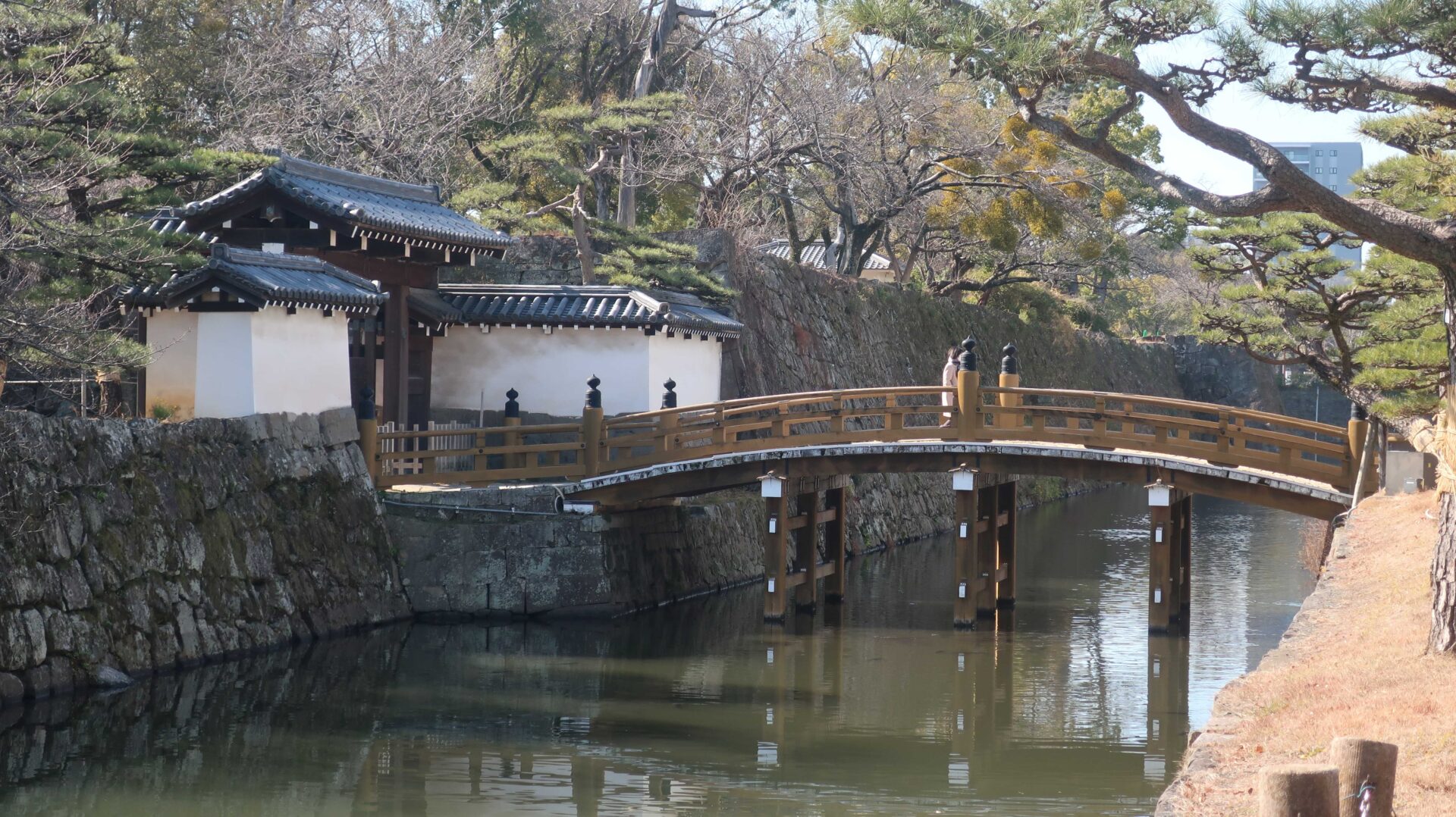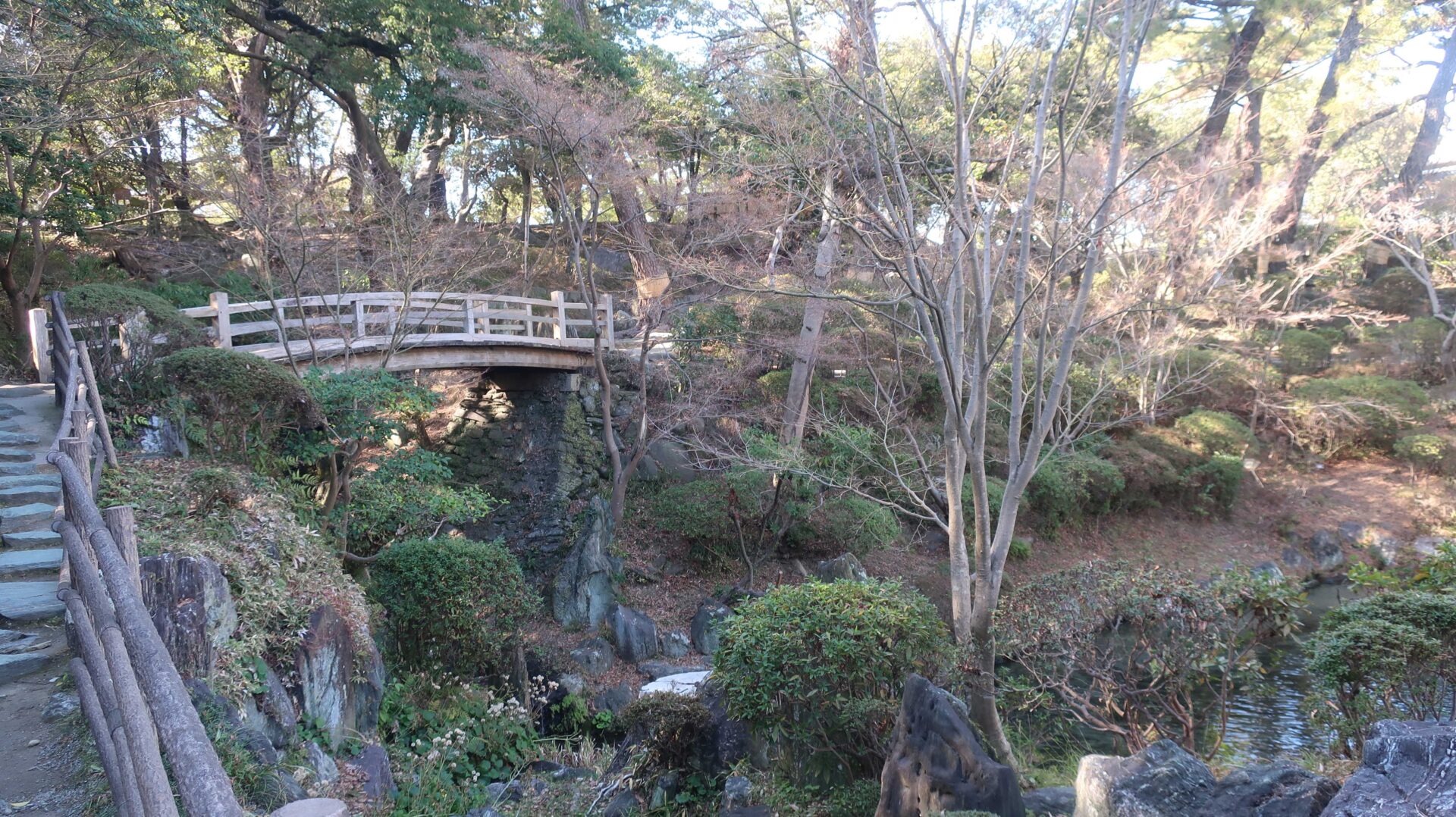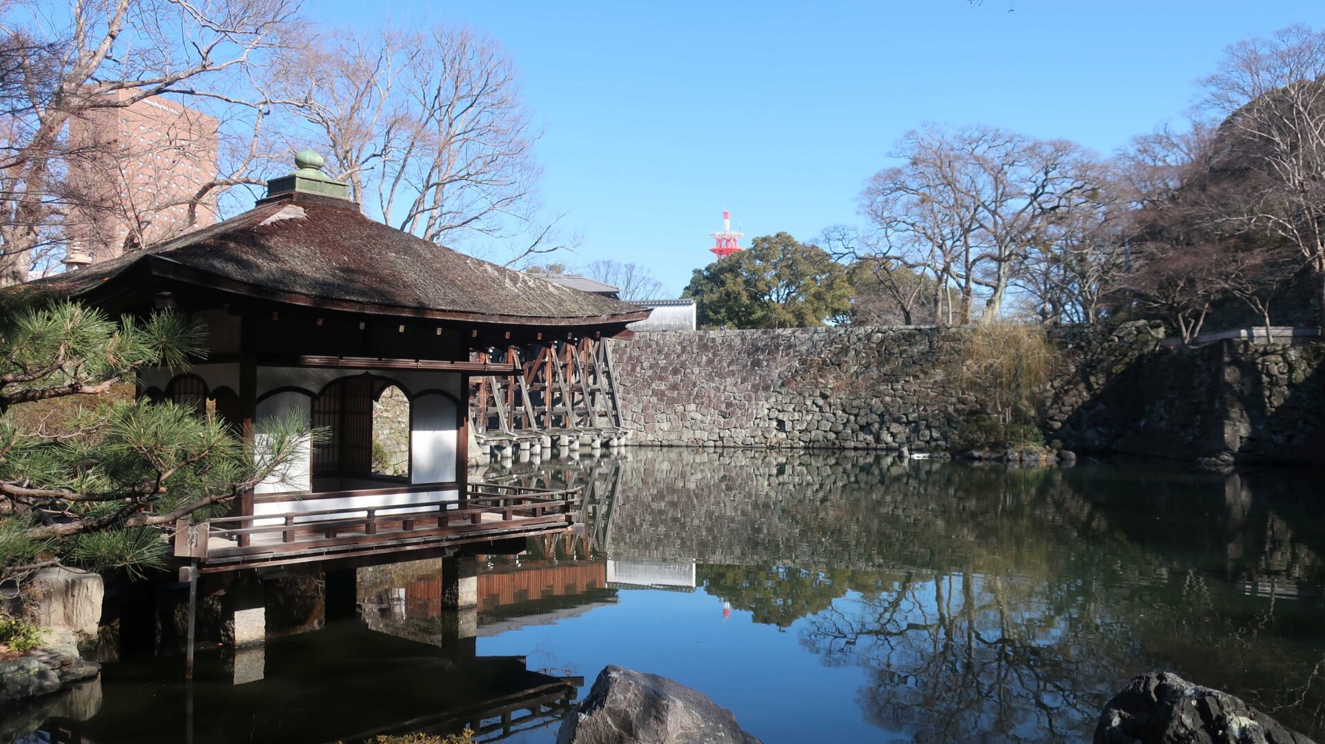 外周回ったときに見えた堀。先に進むと七福の庭へ