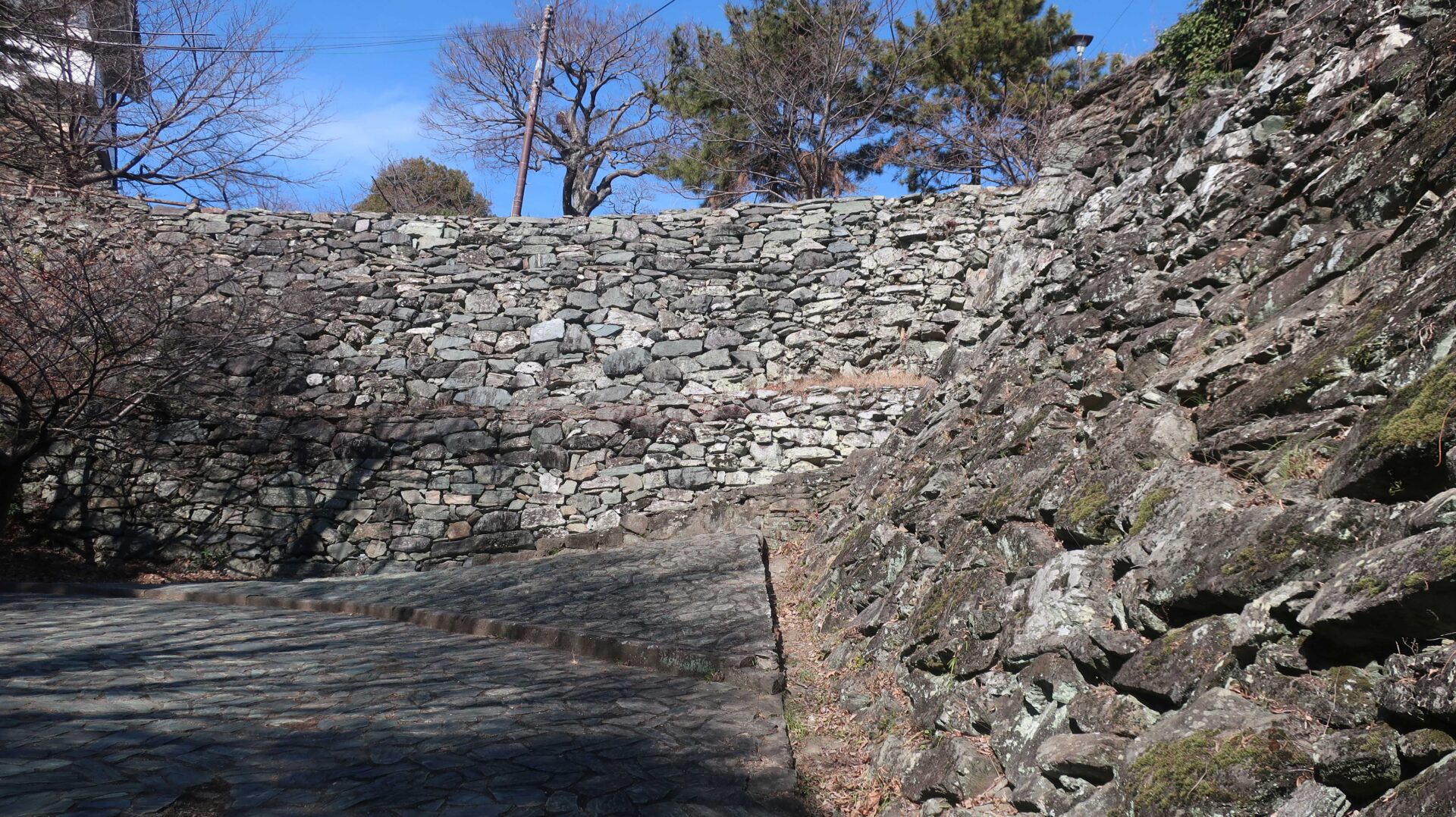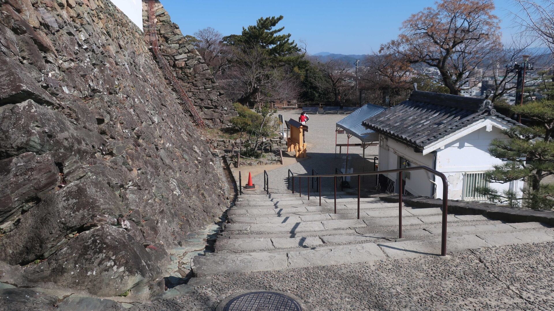 さらに急な坂になる。登るとこの先に本丸のビュースポットが