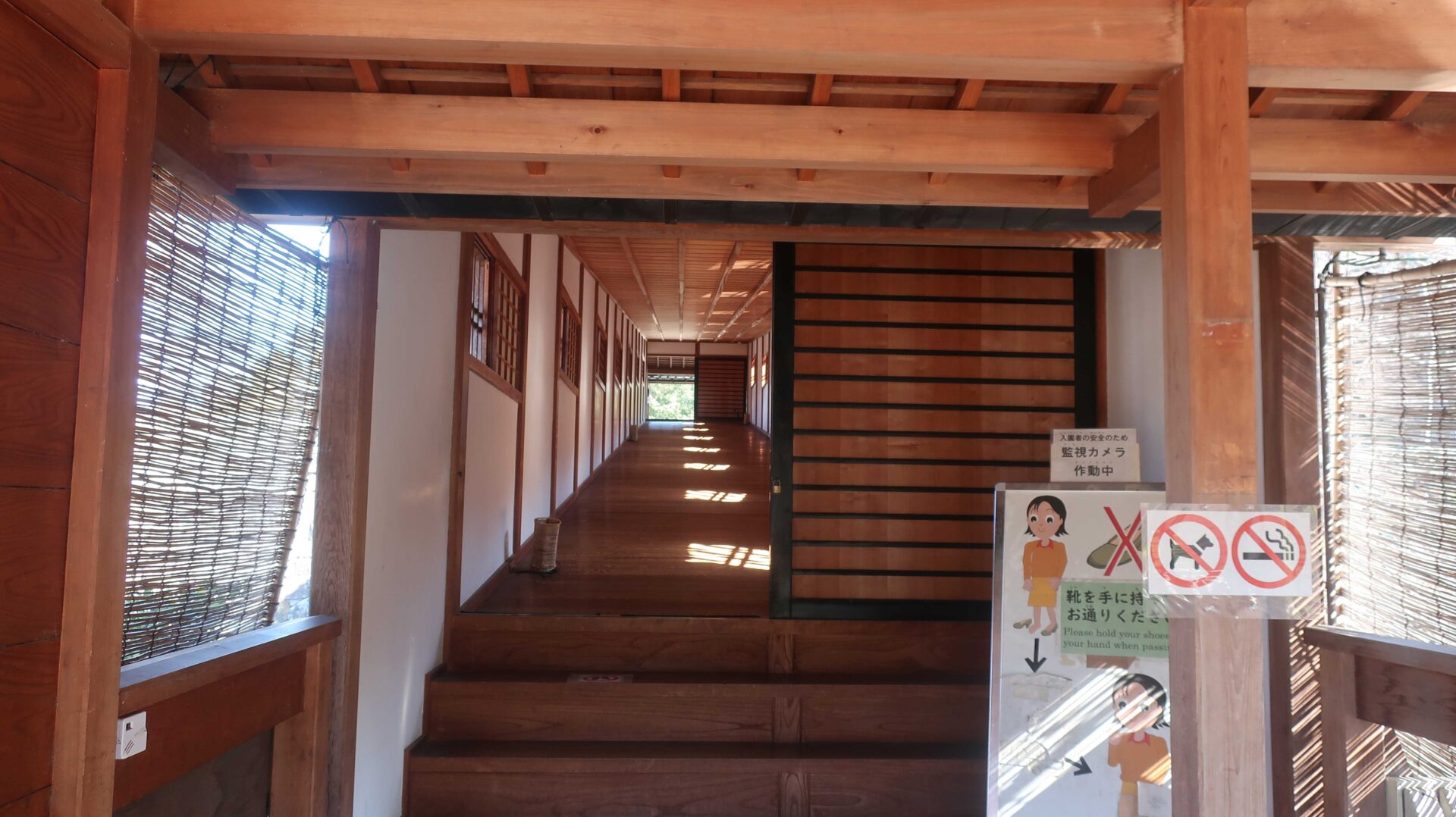 庭園を進むと、お、何やら長い廊下のようなものが見えてきた