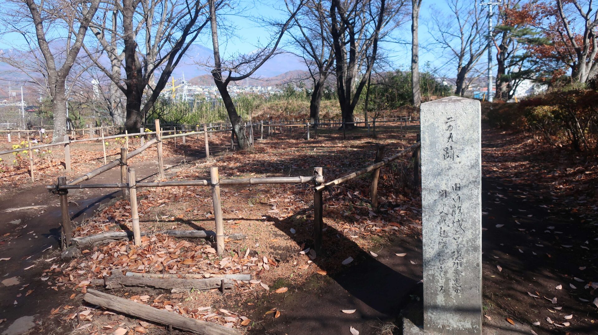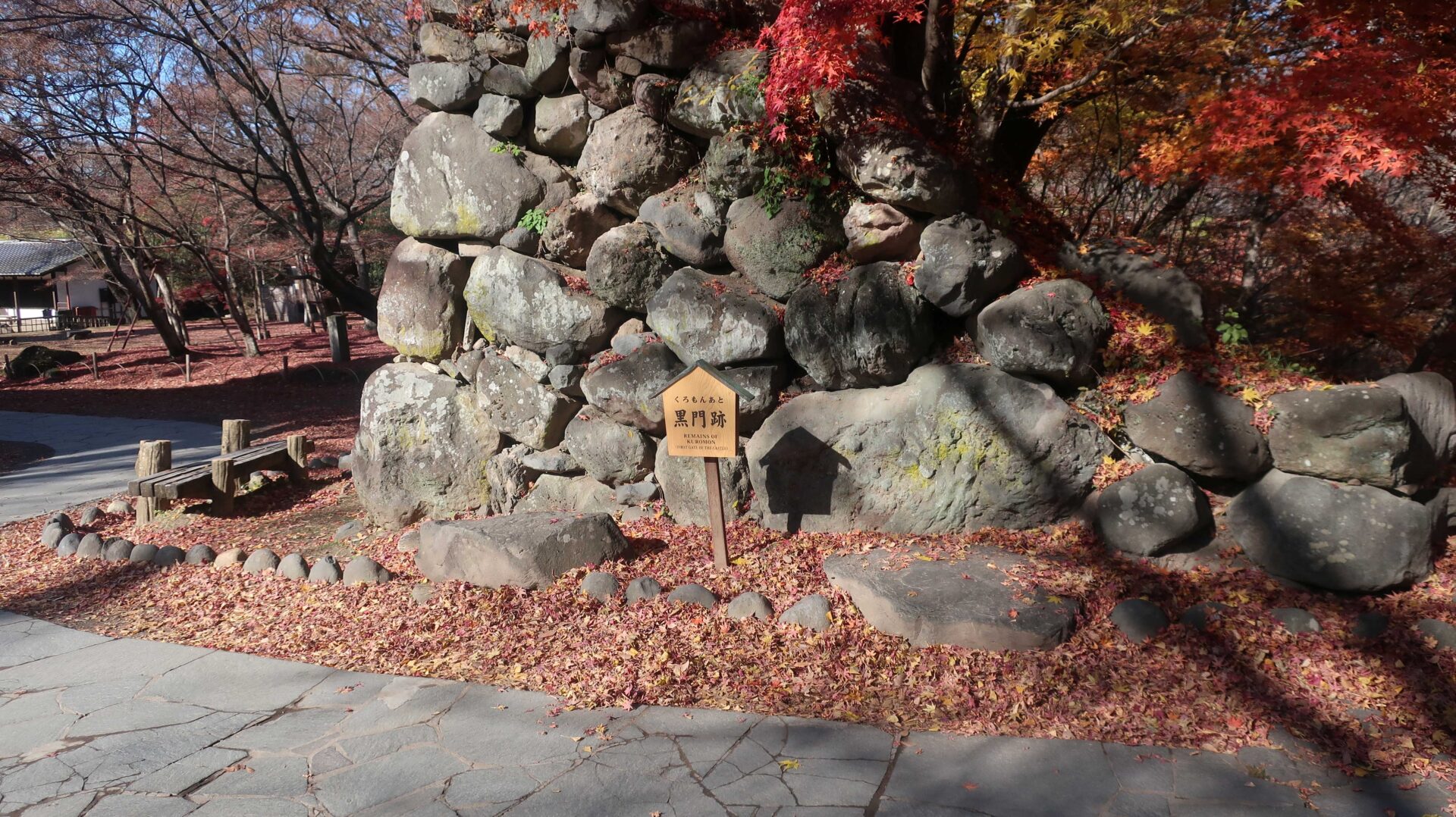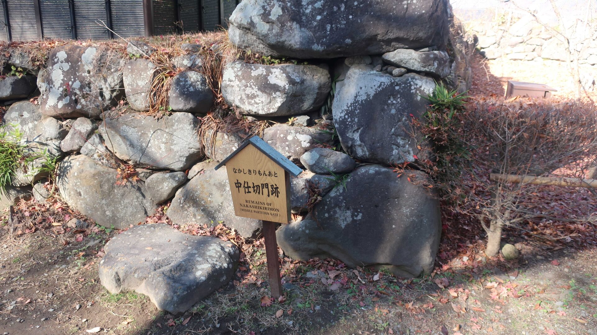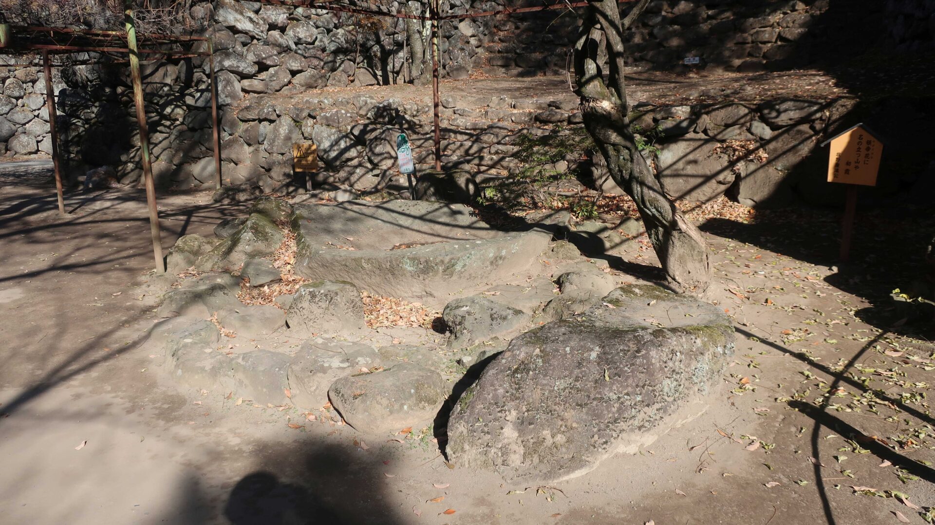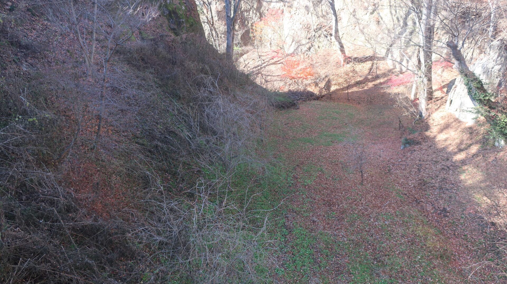 富士見台付近の谷。そして本丸方面へ。勘助のゆかりの地でもあるのか。鏡石とな