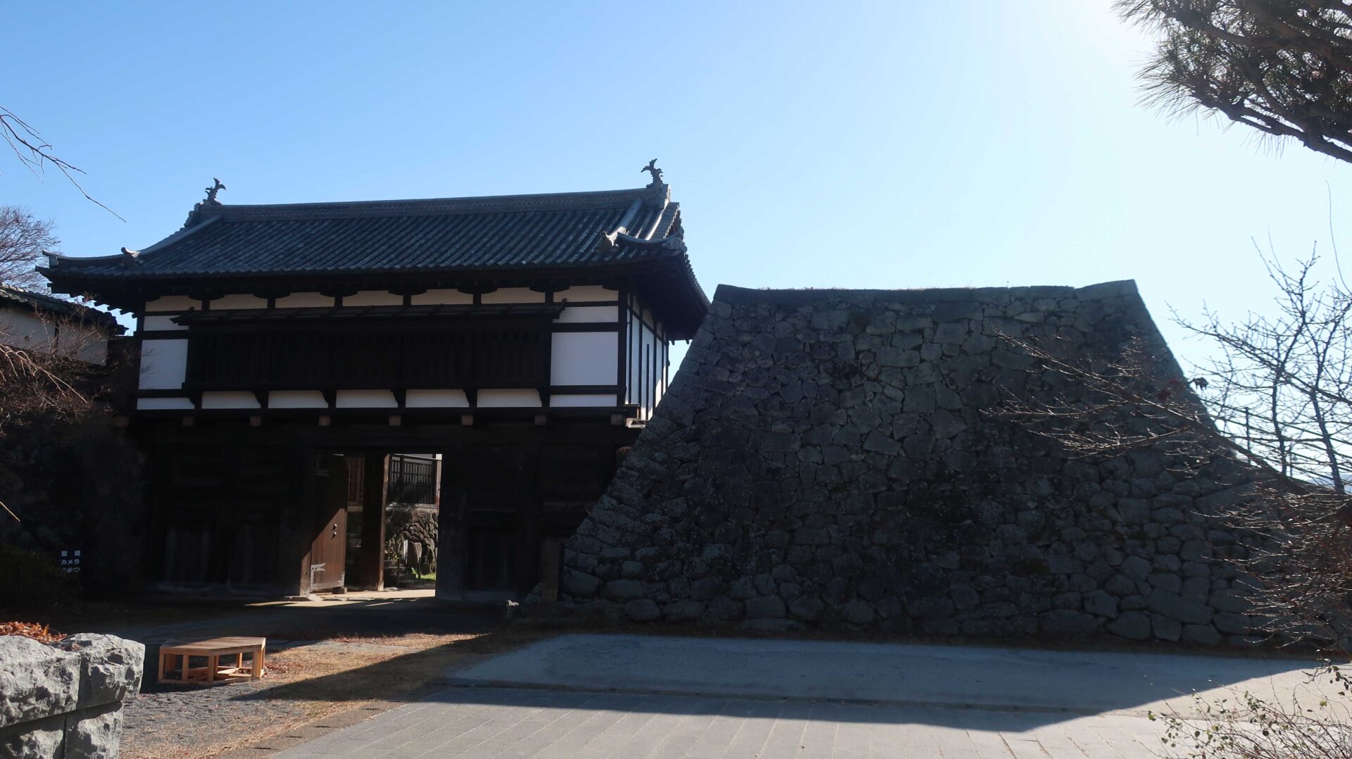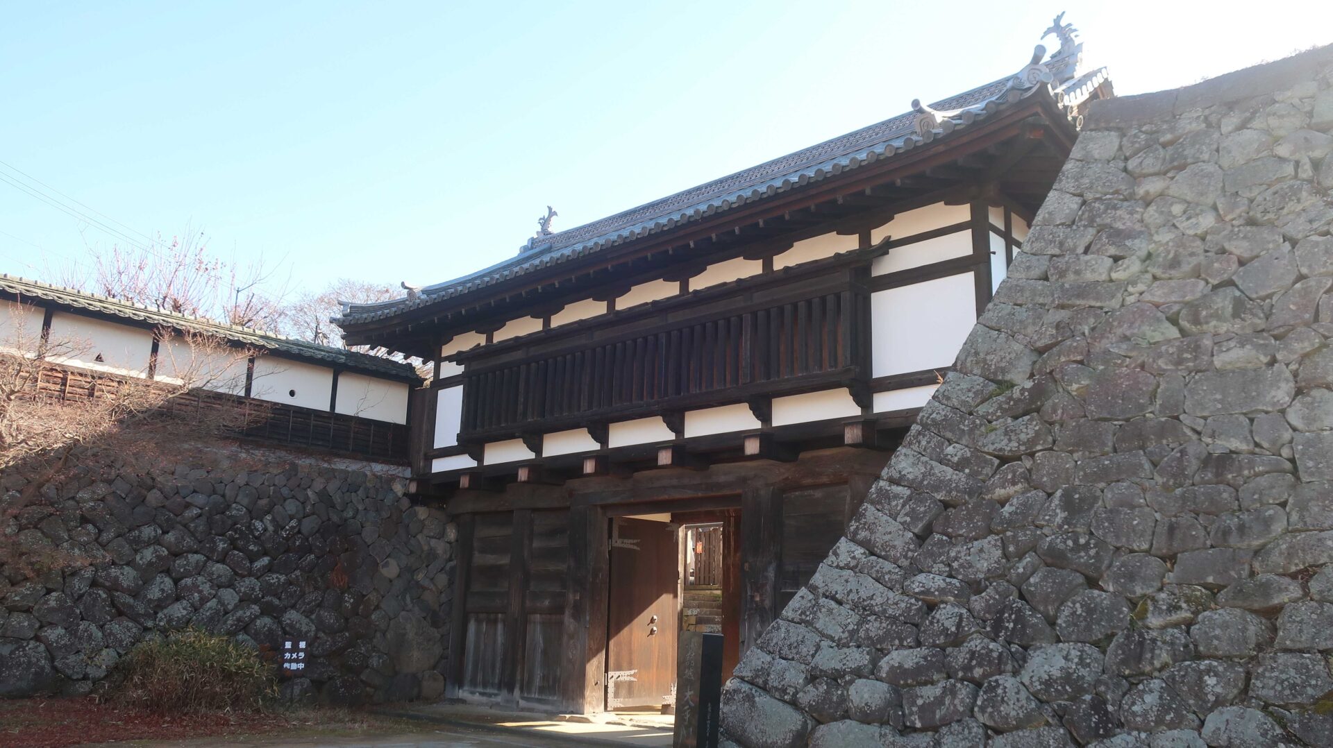 線路を挟んで逆側にある大手門。この辺りは広場になっている。さて城の方へ行ってみよう