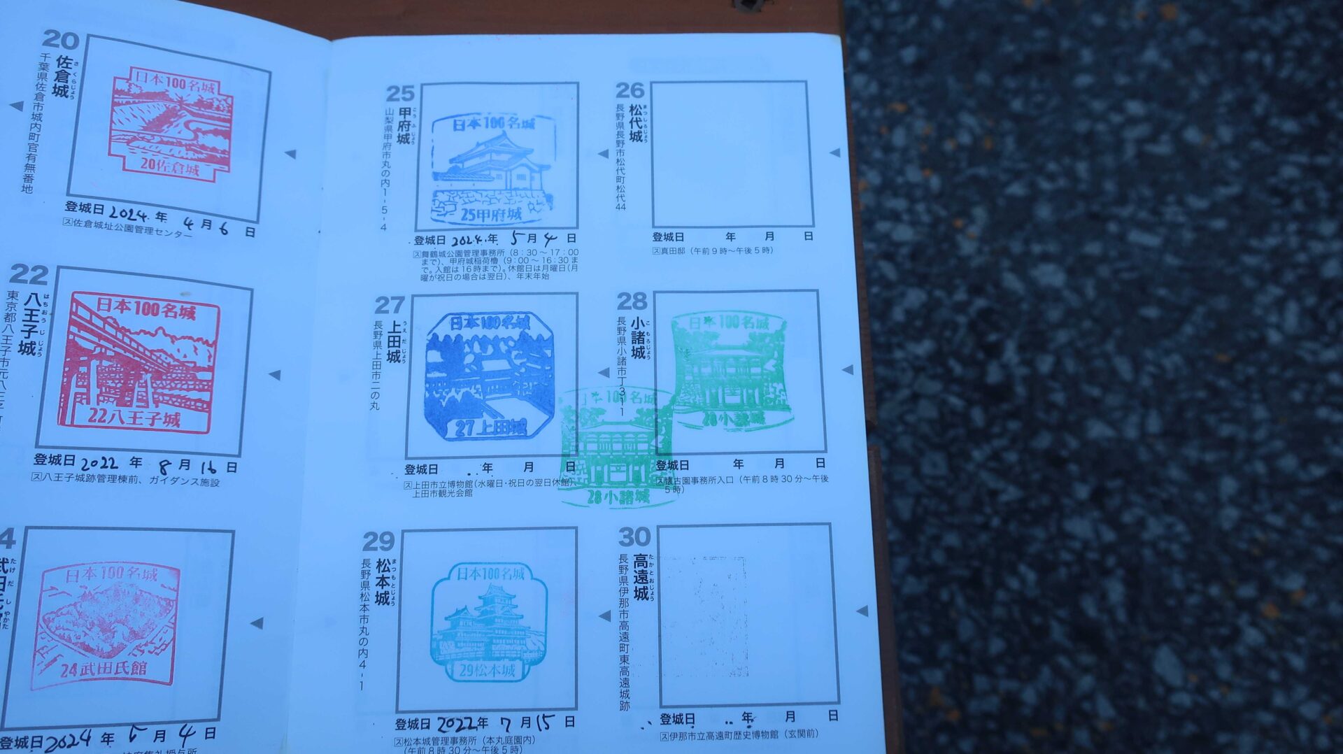 御朱印、スタンプ、御城印。さて本日の遠足終わり。龍岡城と合わせて合計20000歩也。