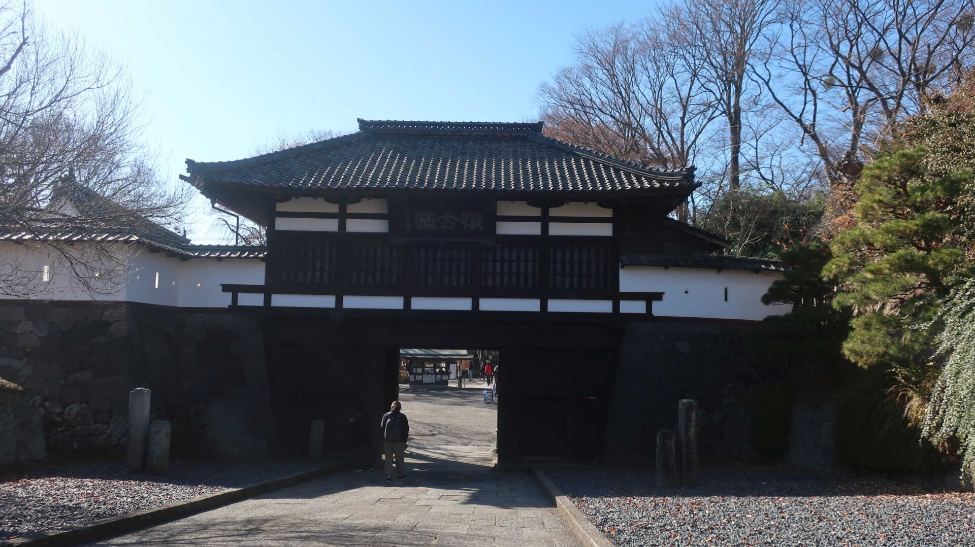 三之門。くぐって左に徴古館で御城印とスタンプゲット。神社の御朱印は中に入ると手書きで入れてもらえるので、ここでは買わない(印刷のもの)。二の丸門跡から奥へ進む