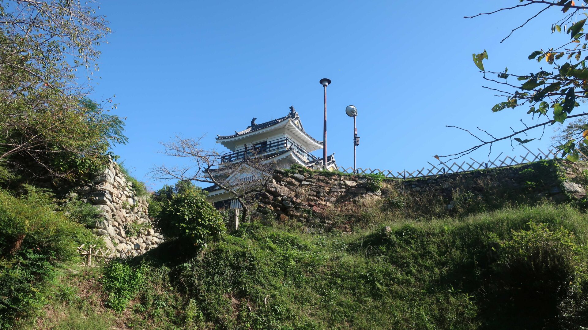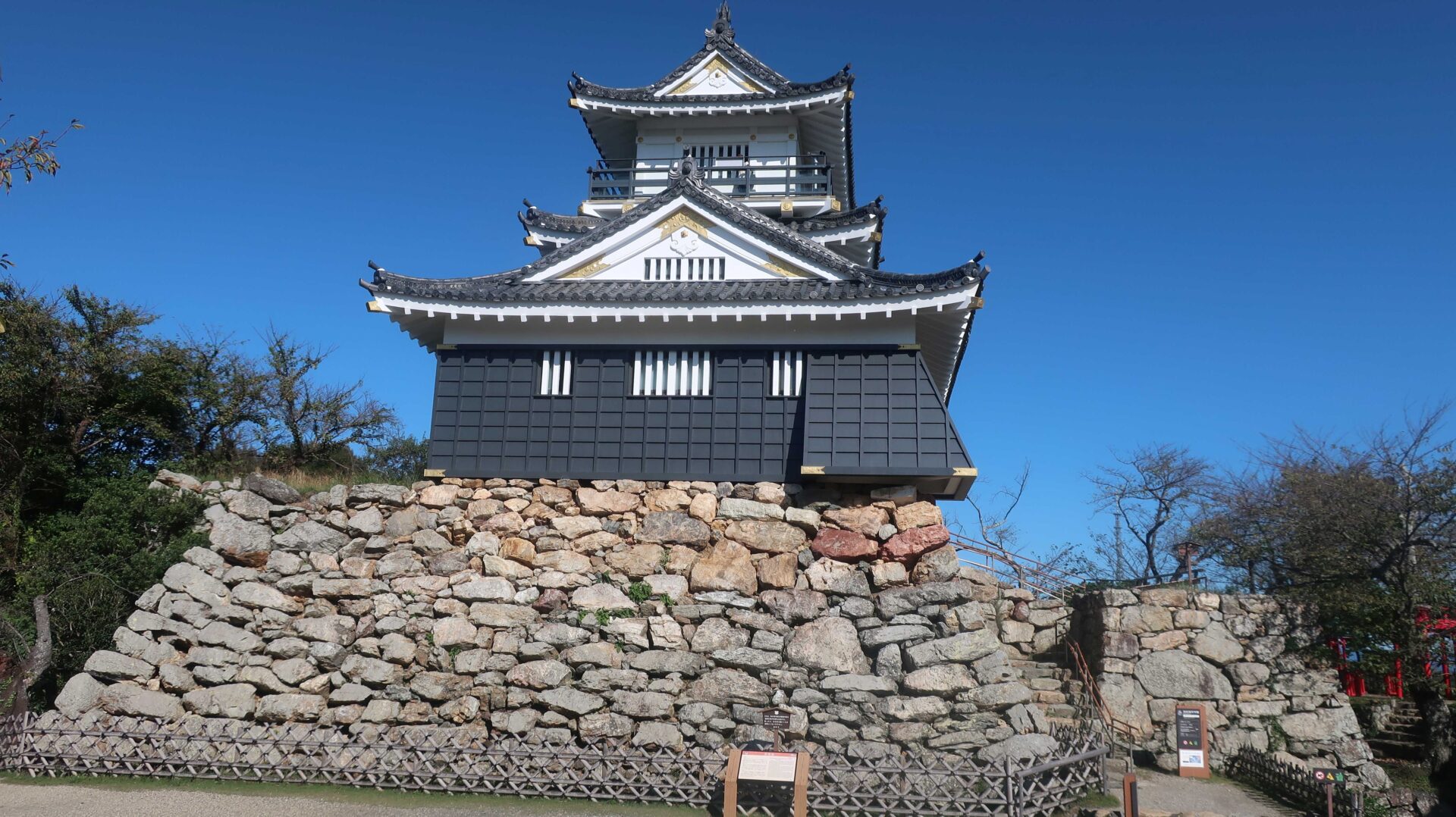 さて、御城印入手して再度外へ。よく見ると石垣の上に右寄りに城が建てられているが、本来は城自体はもう少し大きかったとのことである。まあそもそも現在の城は当時のものではないのだが。