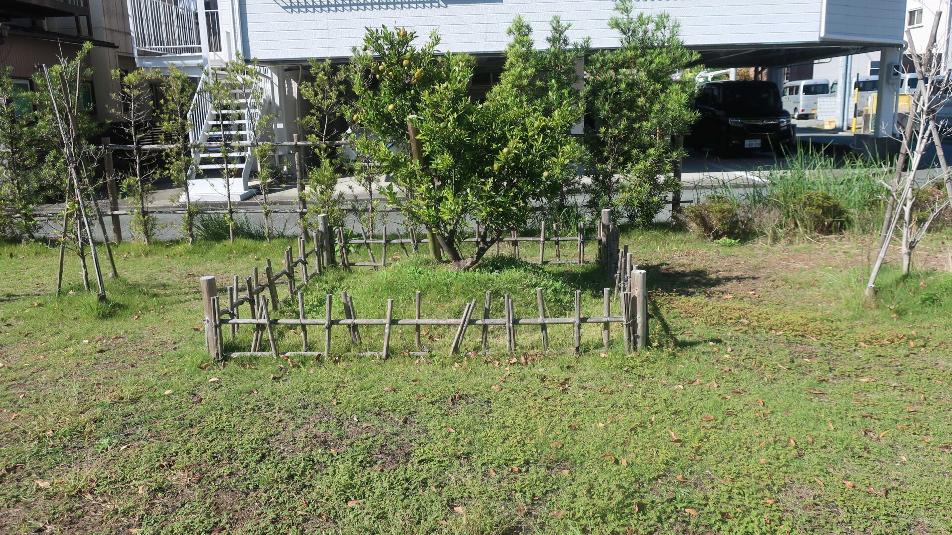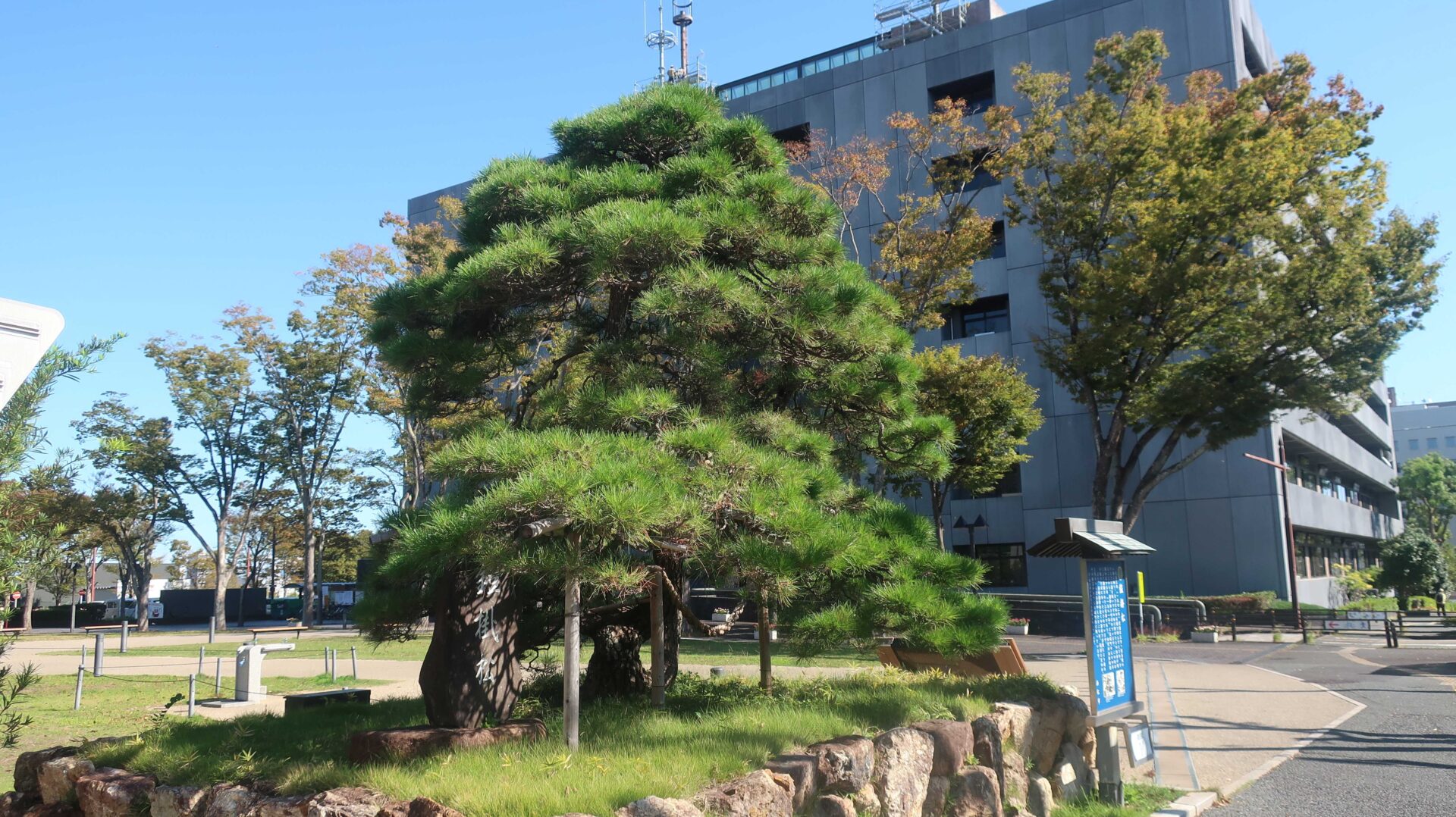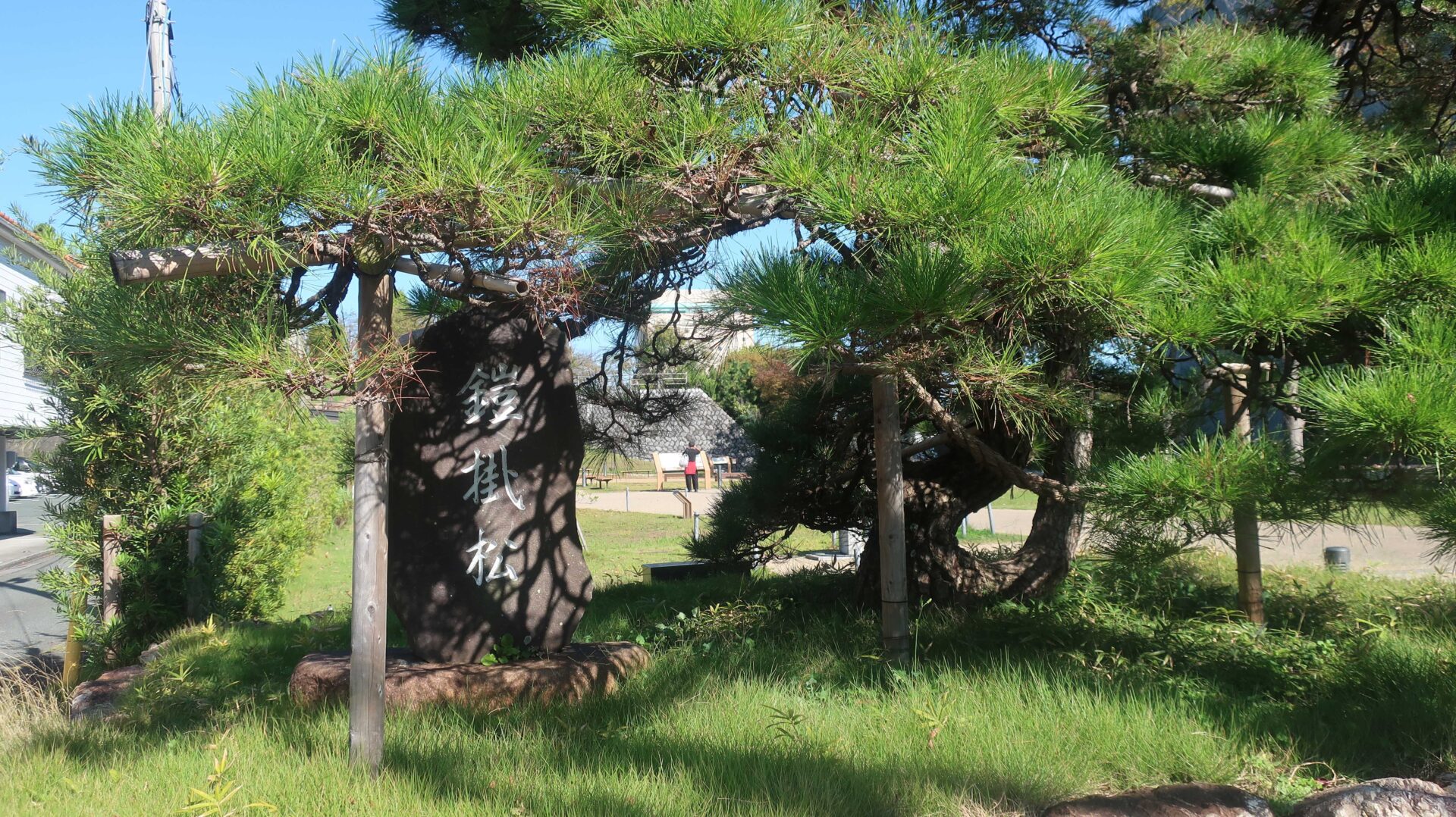 鎧掛松。松の向こう側を歩いて城に向かったので見逃していた。戻ってきてよかった。