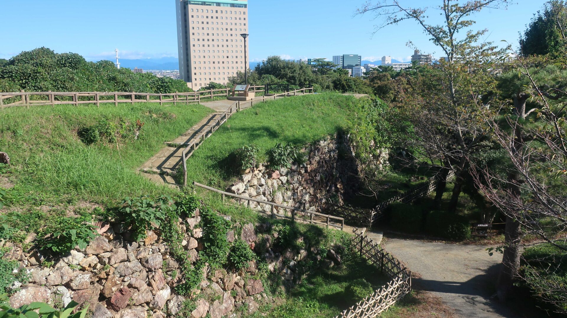 まず図書館のところにあるという出丸跡。でも跡形もなさそう。さっさと城へ向かう。小さいながらも立派な城が見えてきた。